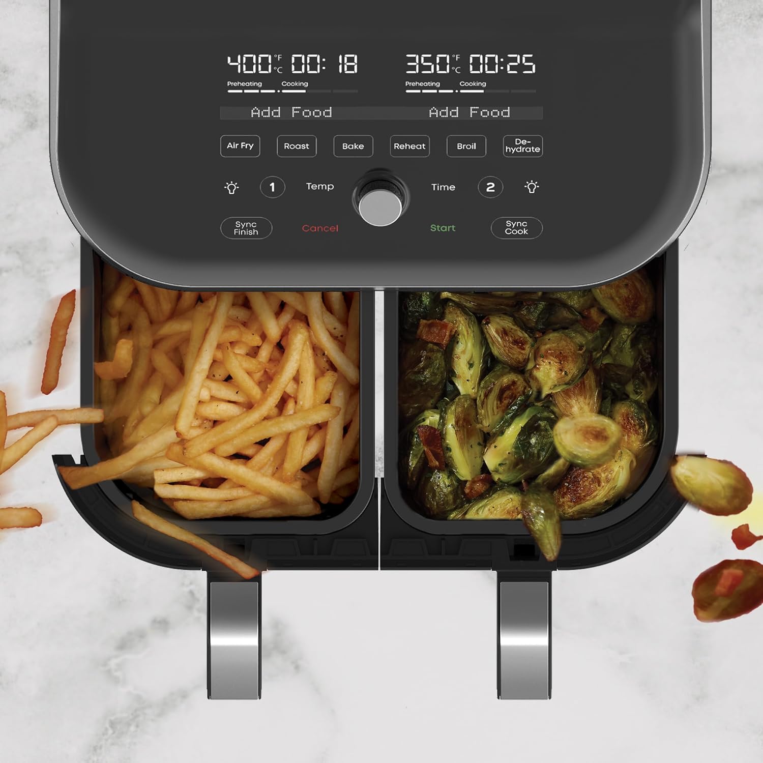 Chefman 6-Quart Dual Basket Air Fryer - Digital Touchscreen, Smart Sync Finish, High-Frying, Auto-Off, 2 Independent 3-Quart Nonstick Pans, Dishwasher-Safe Baskets