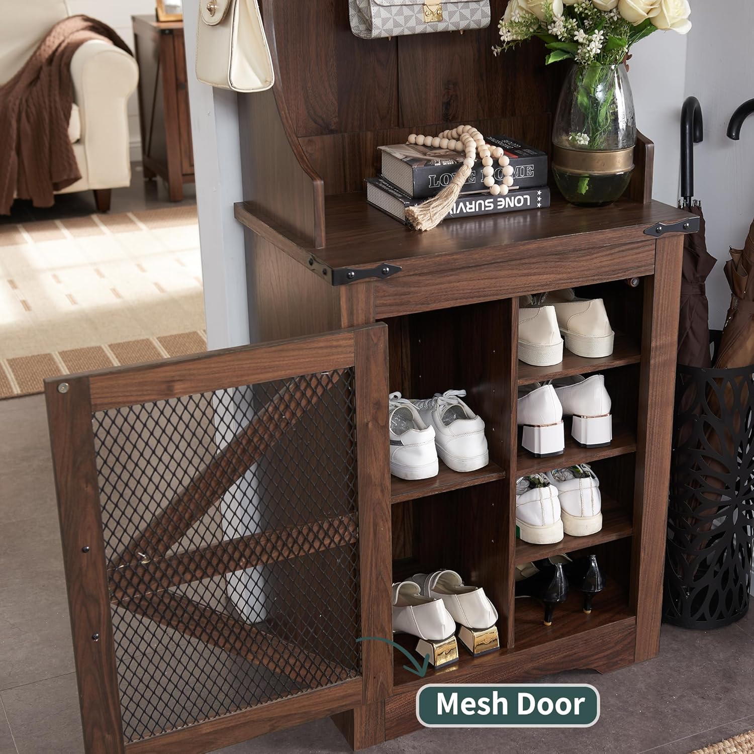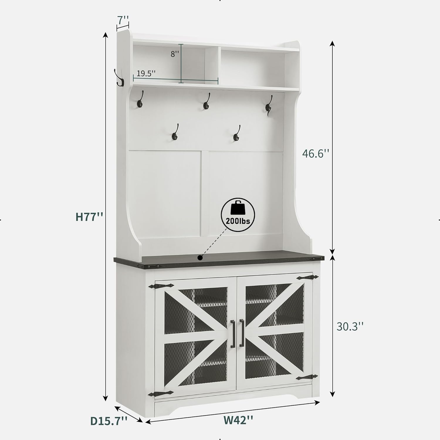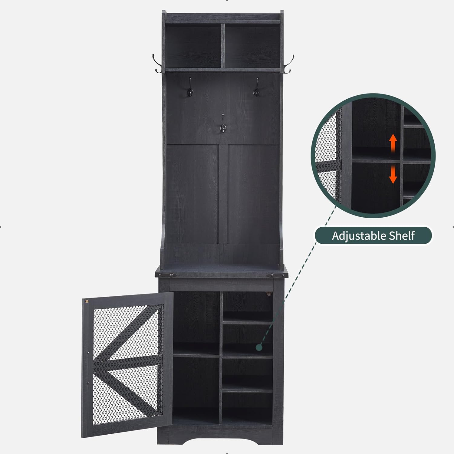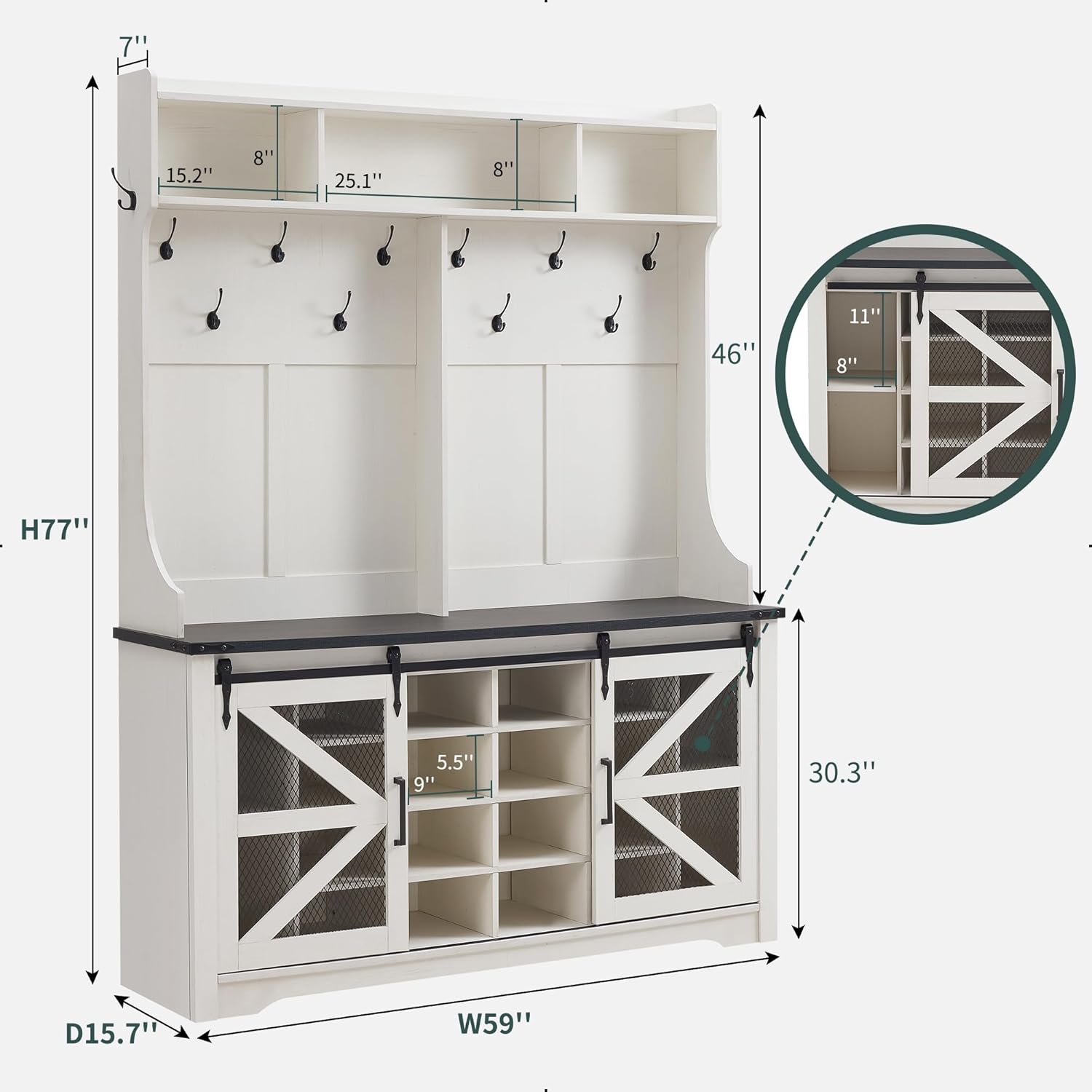 JXQTLINGMU 59-inch Farmhouse Foyer Tree with Shoe Storage, Entryway Bench Foyer Coat Rack Cabinet