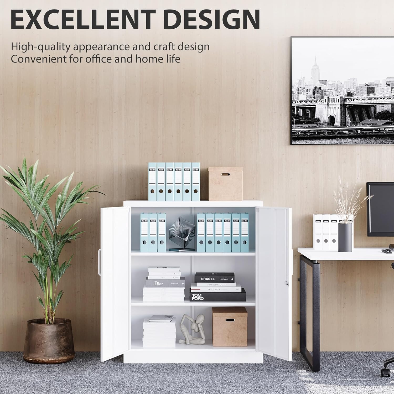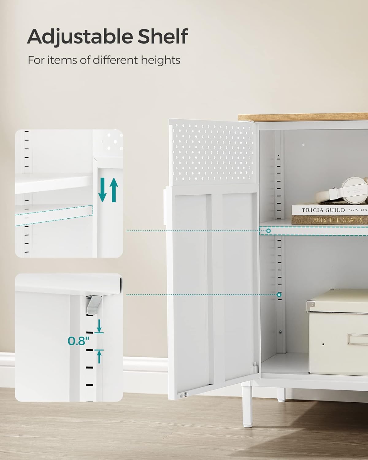SONGMICS Storage Cabinet, Metal Cabinet, Sideboard with 2 Doors, 15.7 x 31.5 x 29.9 inches