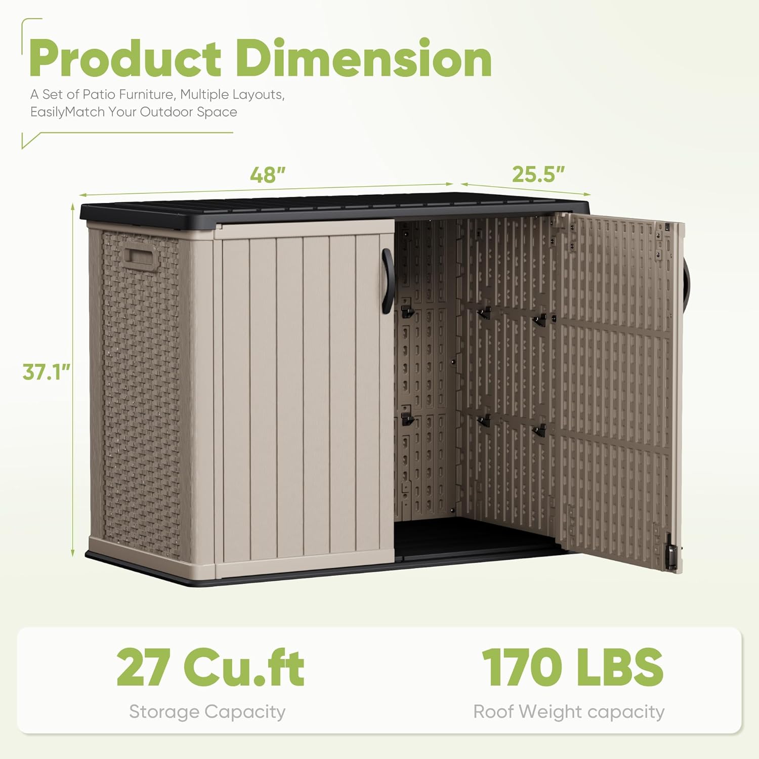 Devoko Outdoor Storage Cabinet 26 Cu Ft with Lockable Doors, Horizontal Storage Shed Waterproof Patio Tools Storage Box