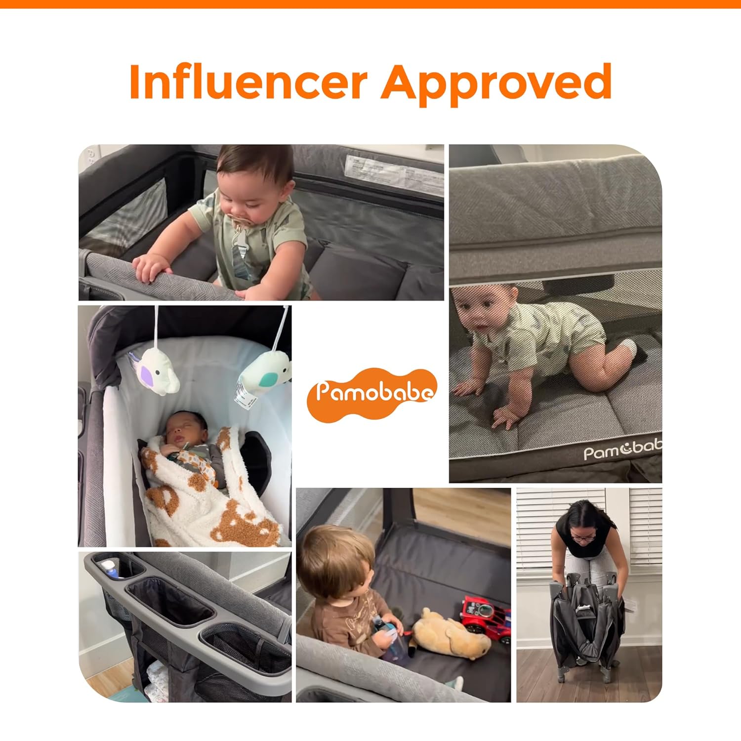 Pamo Babe Baby Playpen - Heavy-duty steel frame provides a safe sleeping space and portable crib