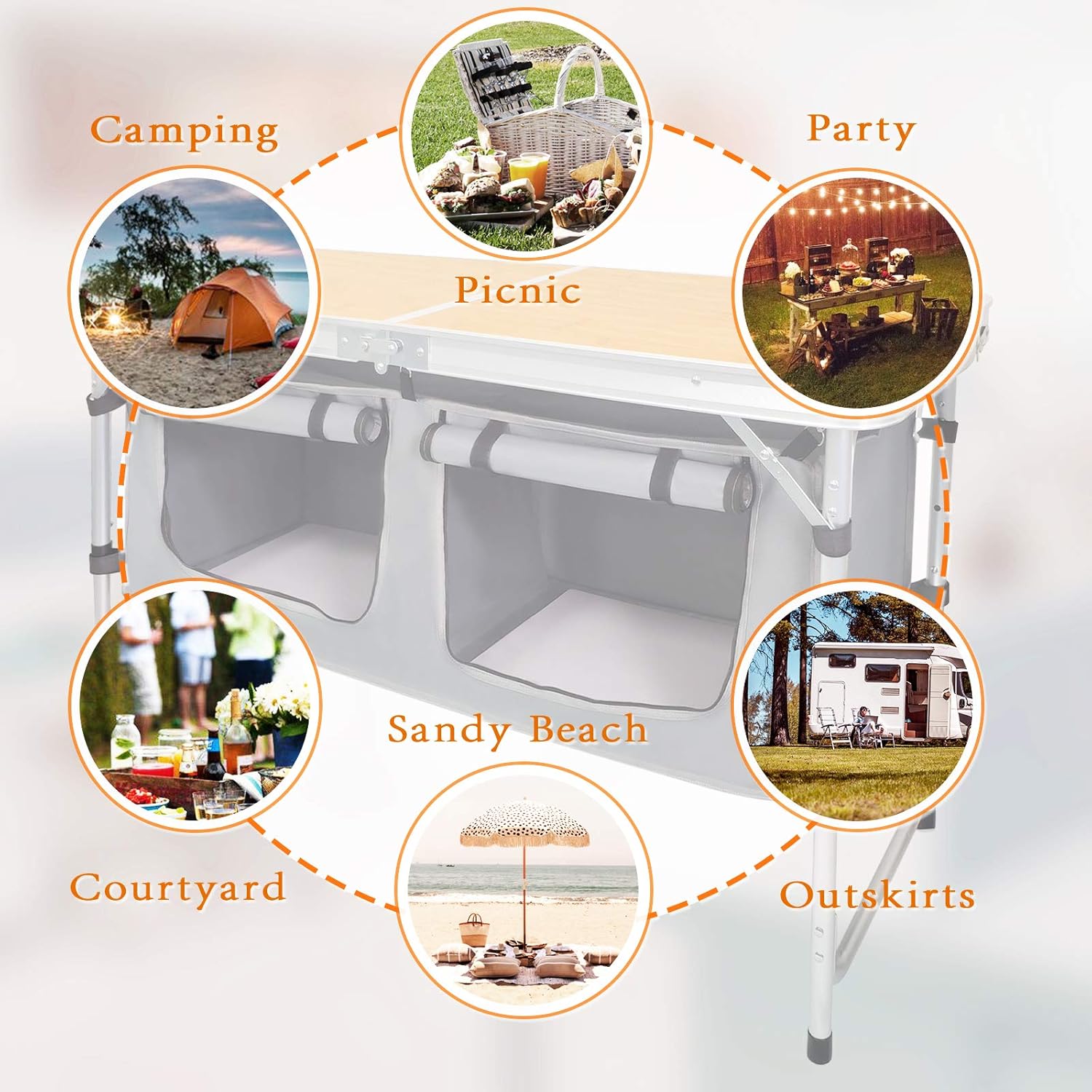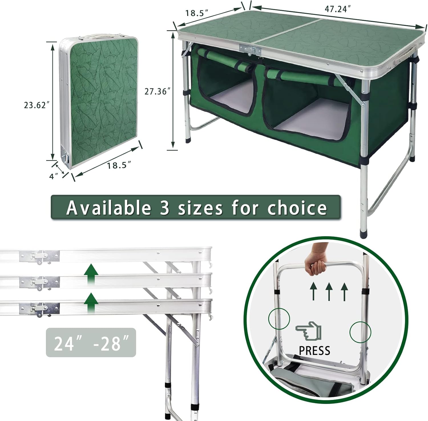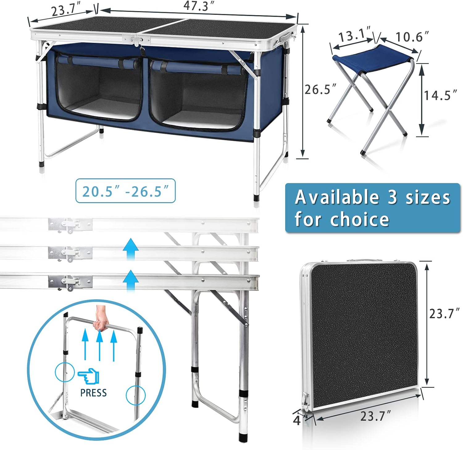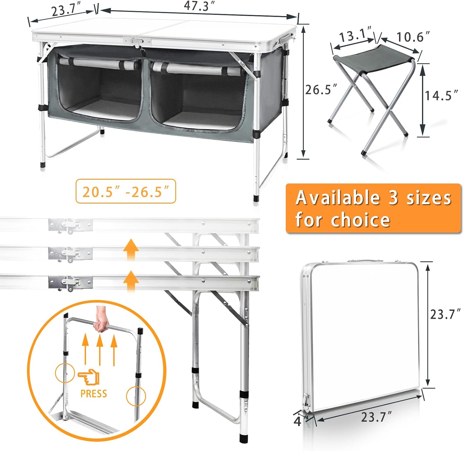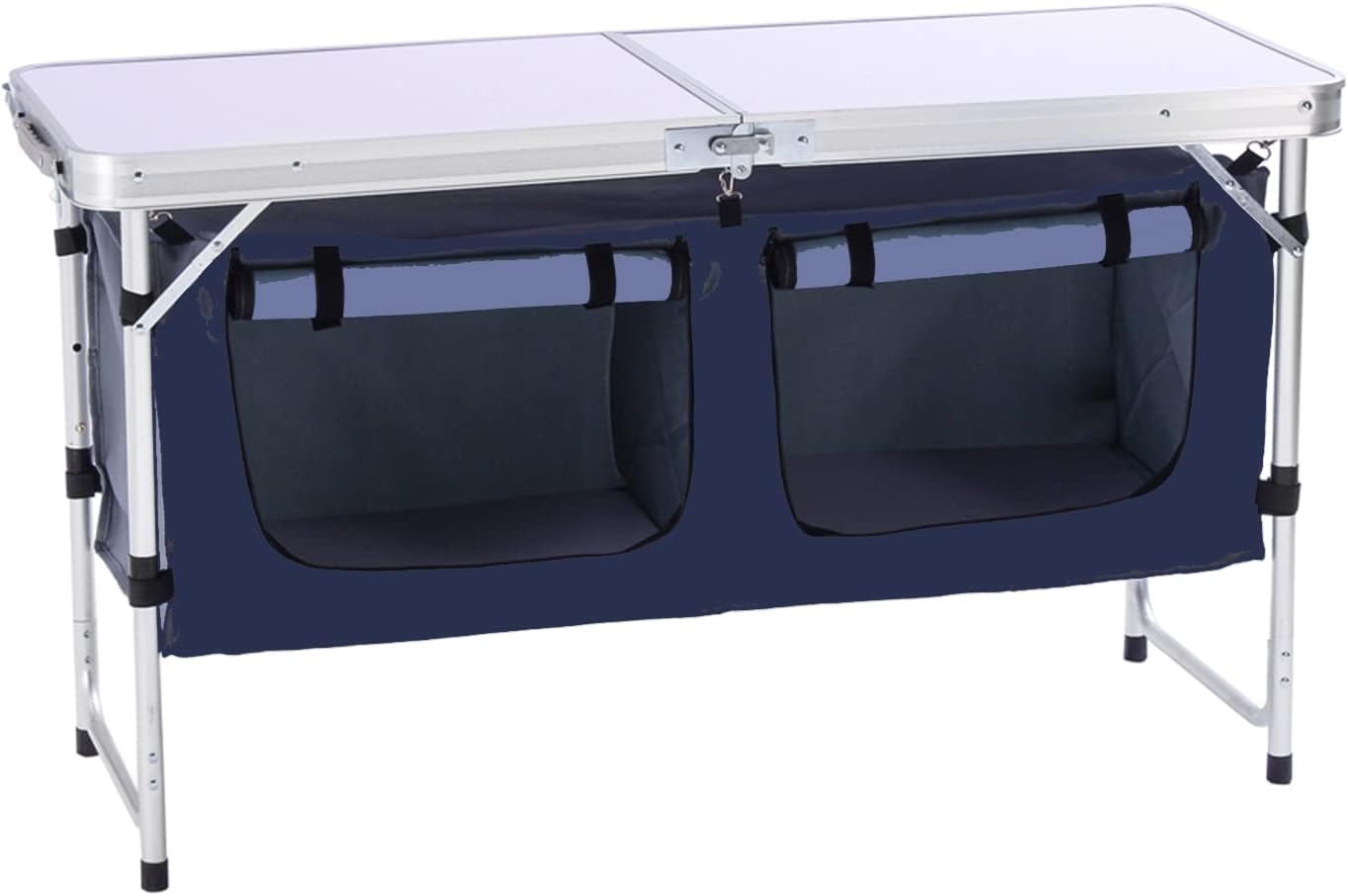 Outdoor Folding Table Aluminum Lightweight Height Adjustable with Storage Organizer for BBQ, Party, Camping