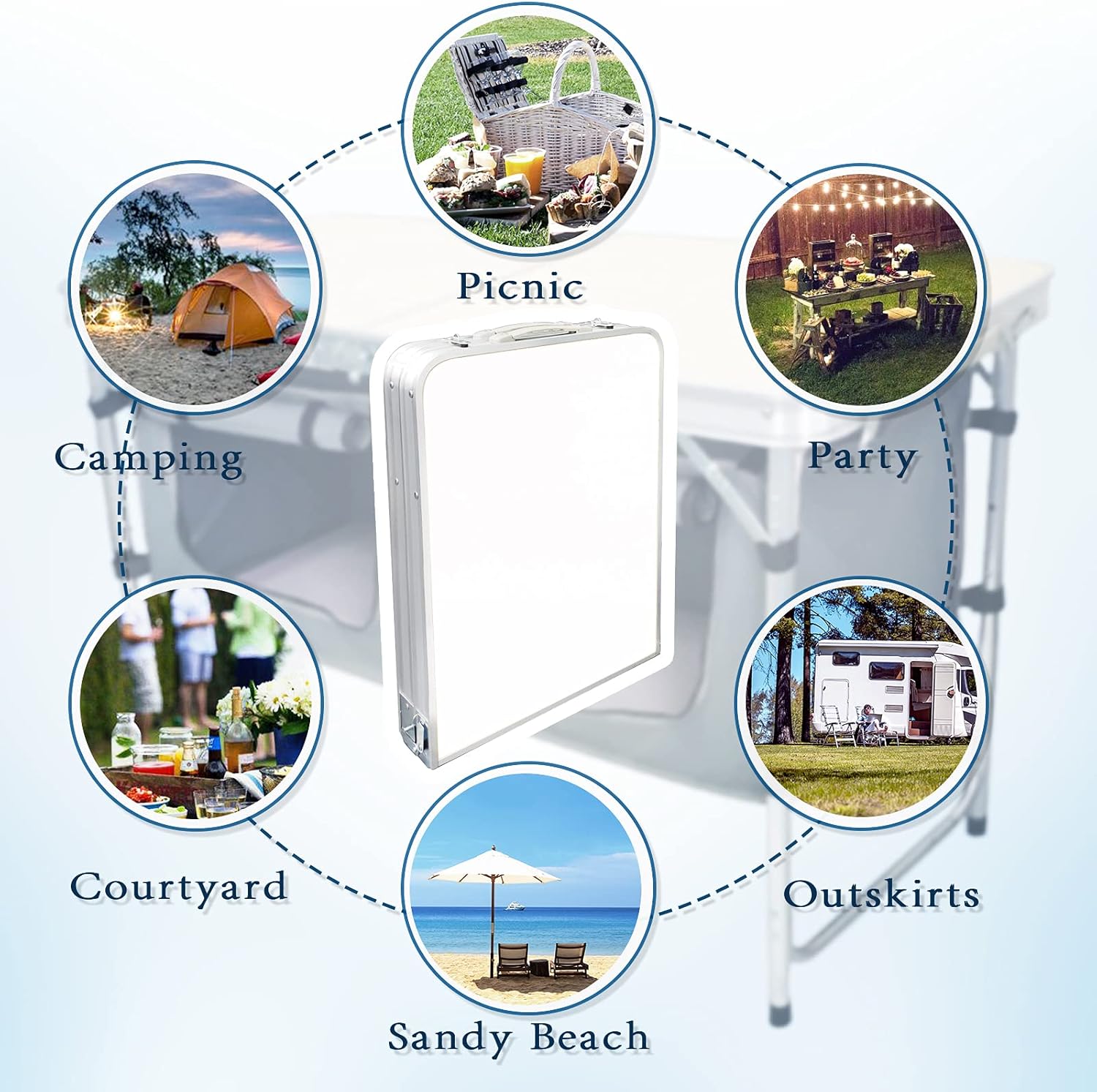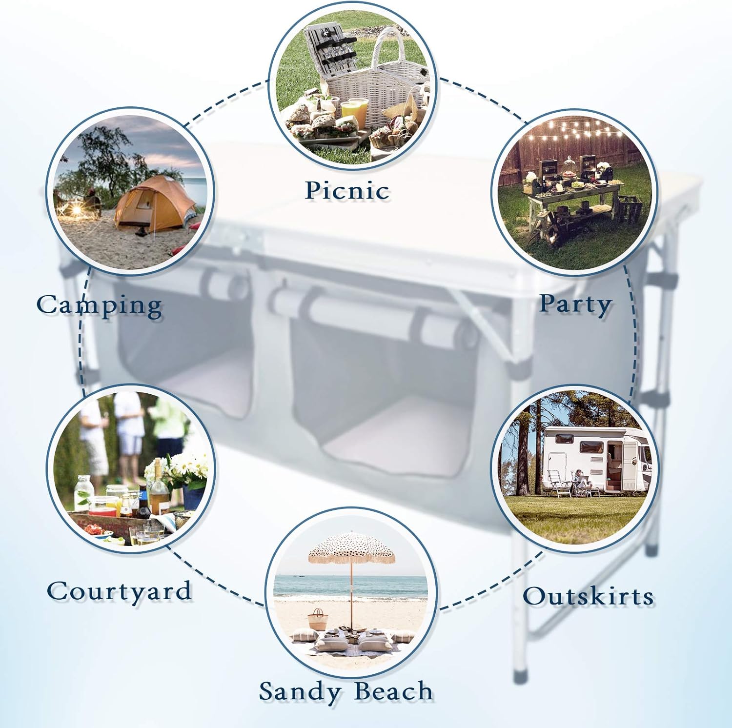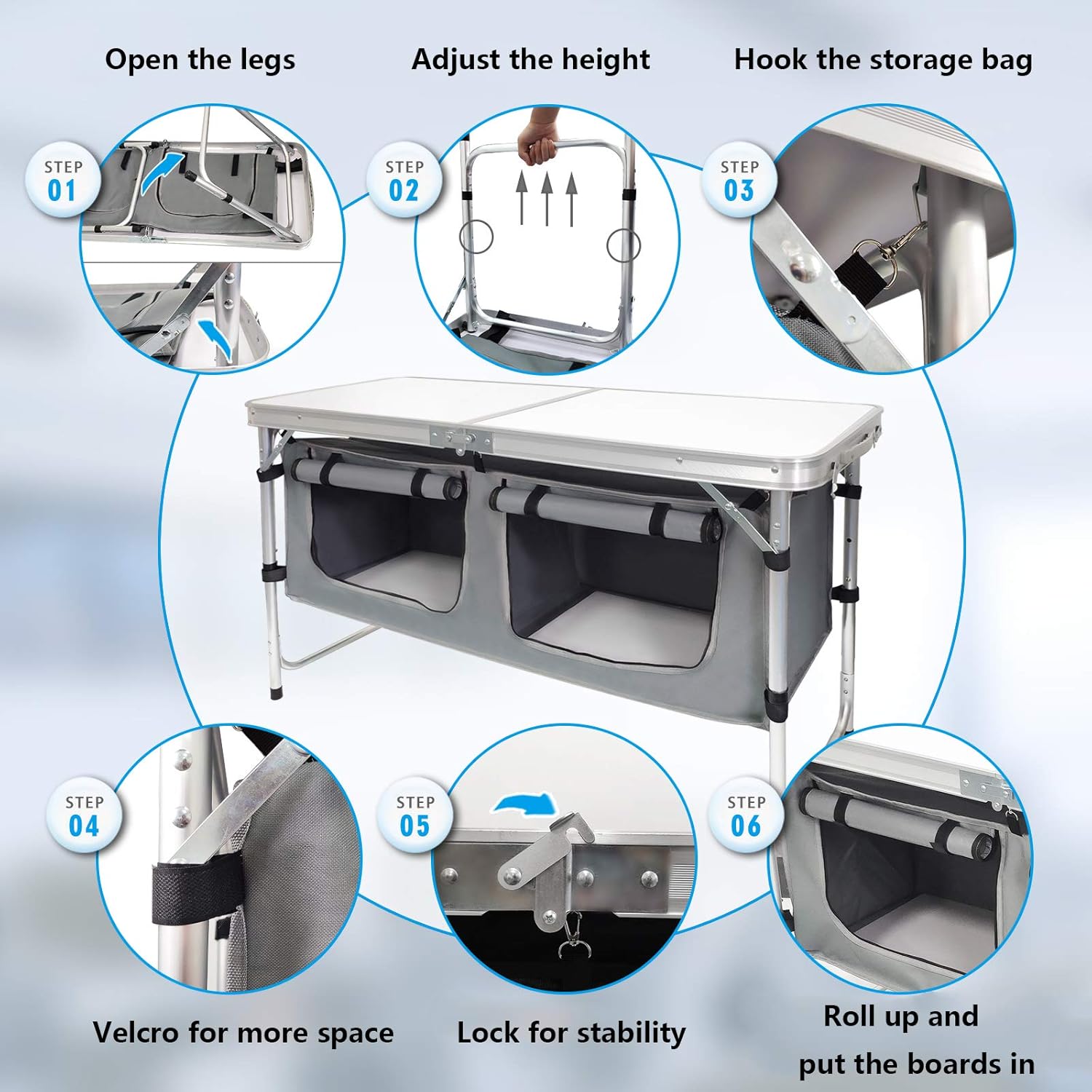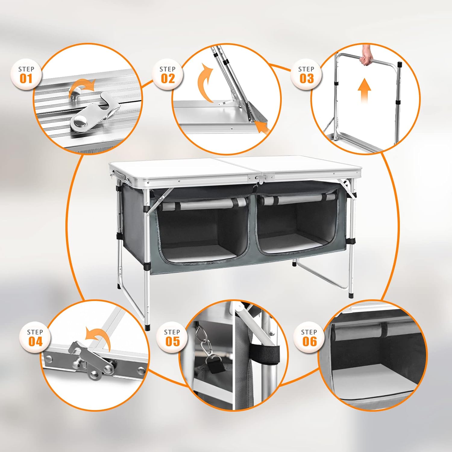 Outdoor Folding Table Aluminum Lightweight Height Adjustable with Storage Organizer for BBQ, Party, Camping