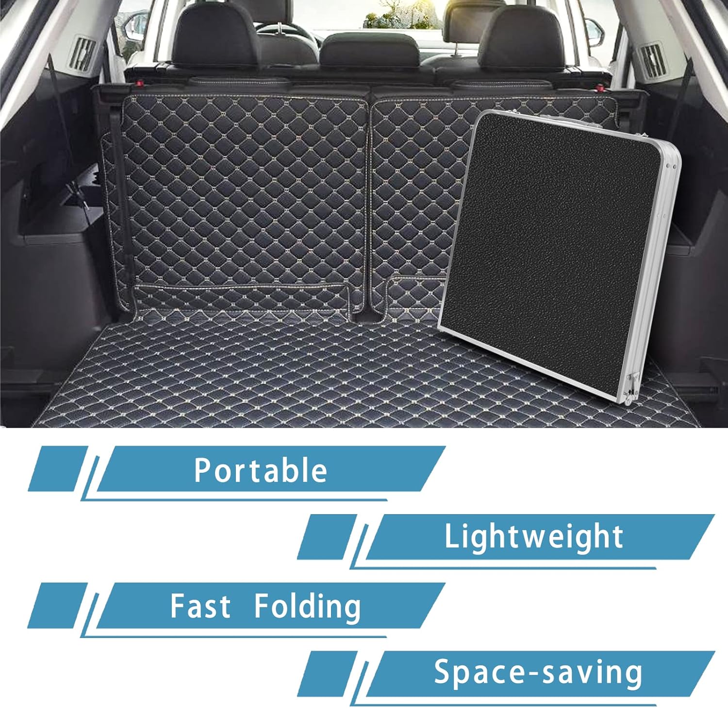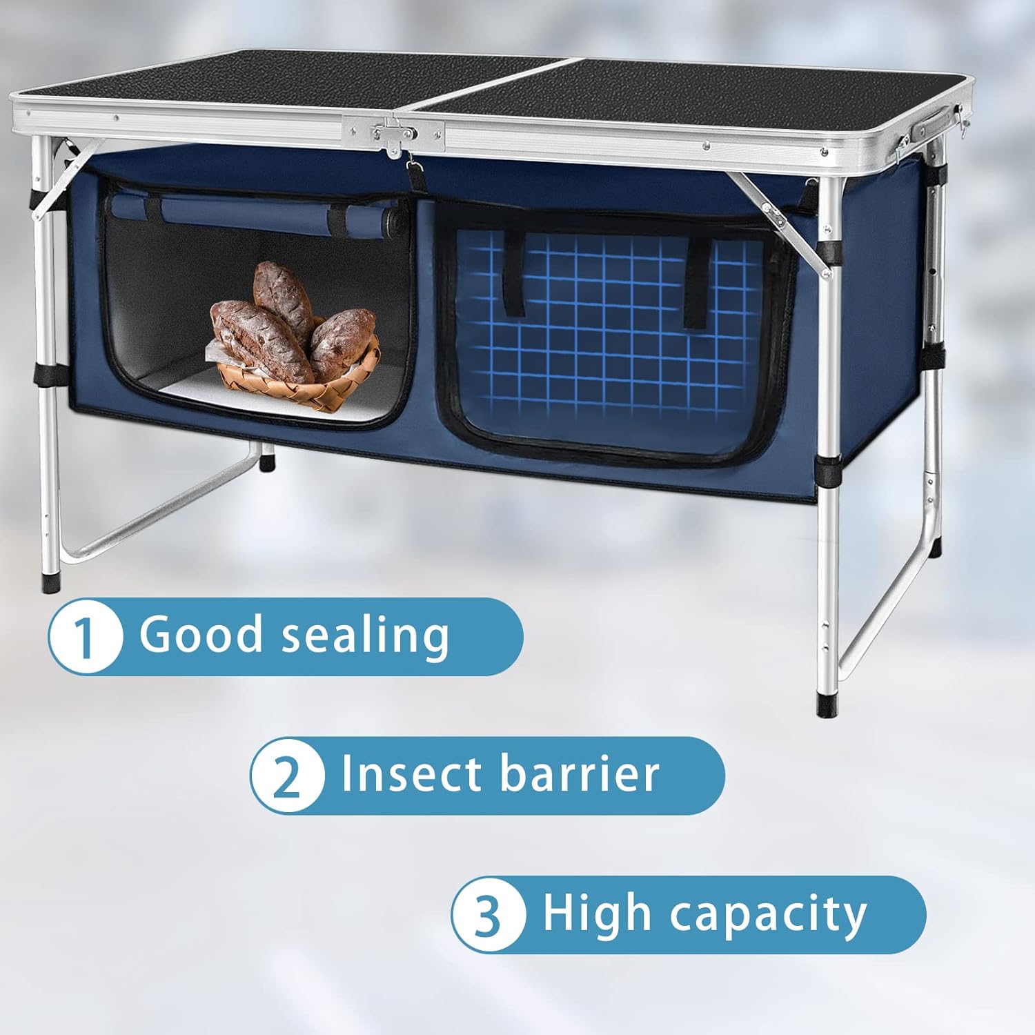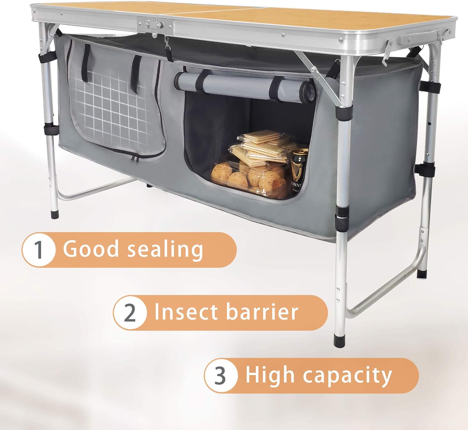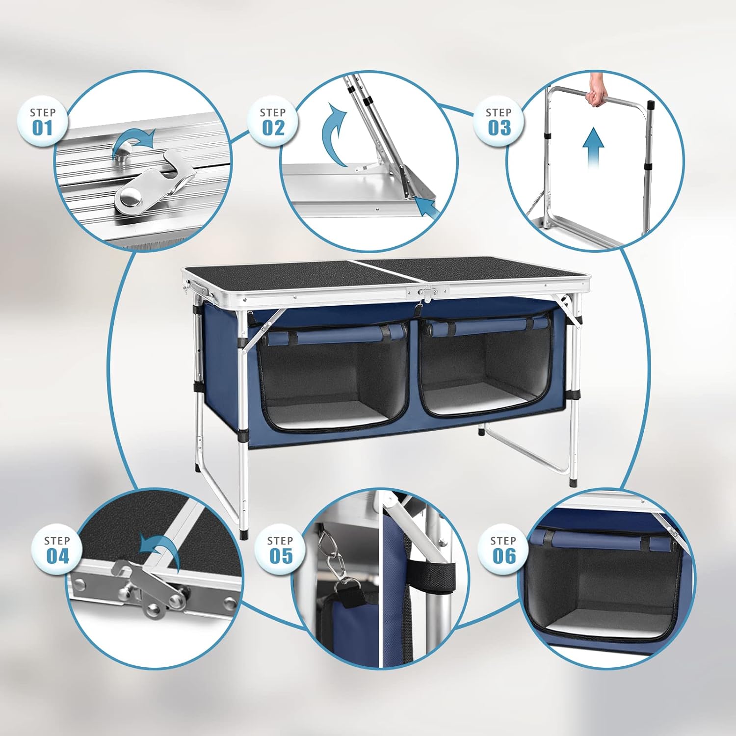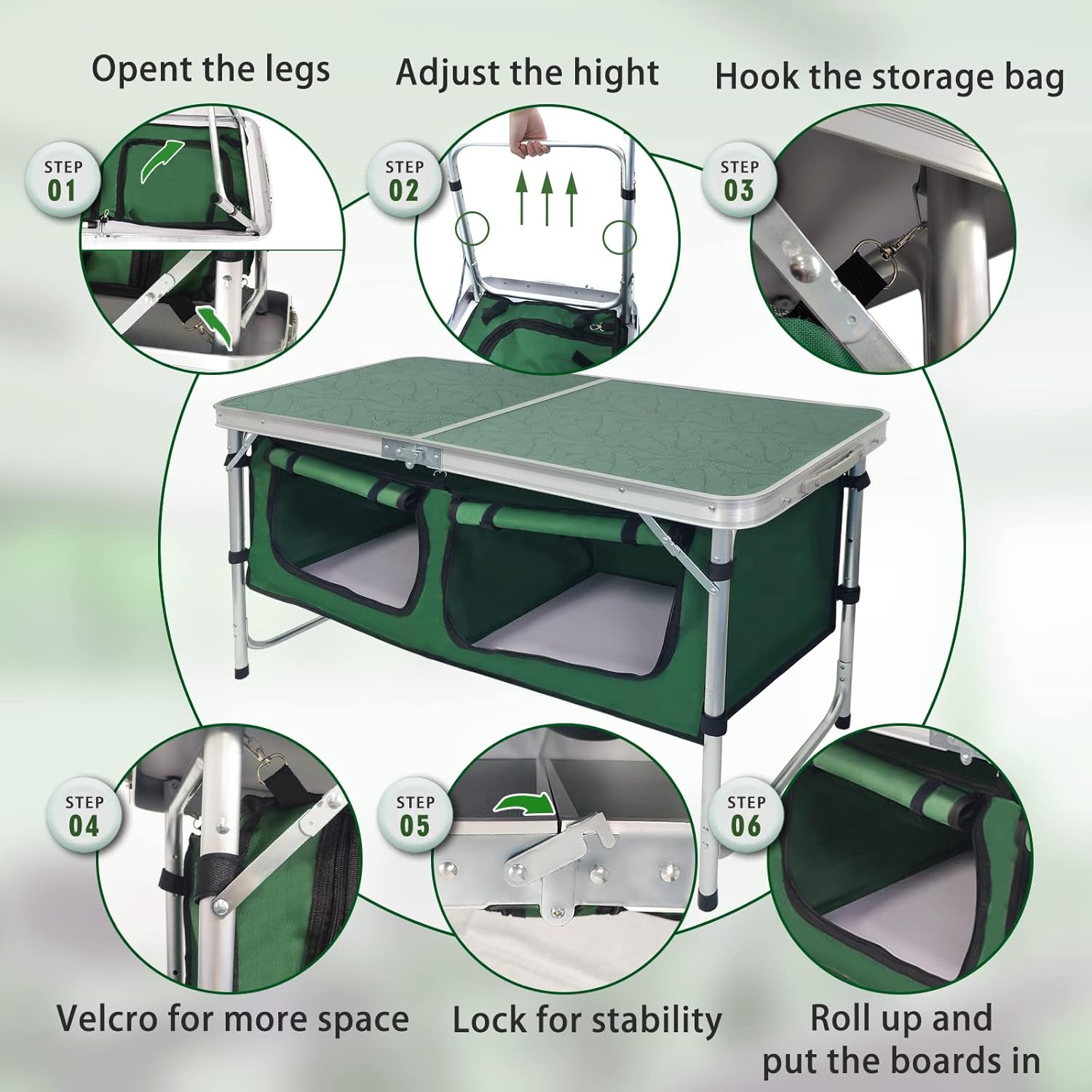 Outdoor Folding Table Aluminum Lightweight Height Adjustable with Storage Organizer for BBQ, Party, Camping
