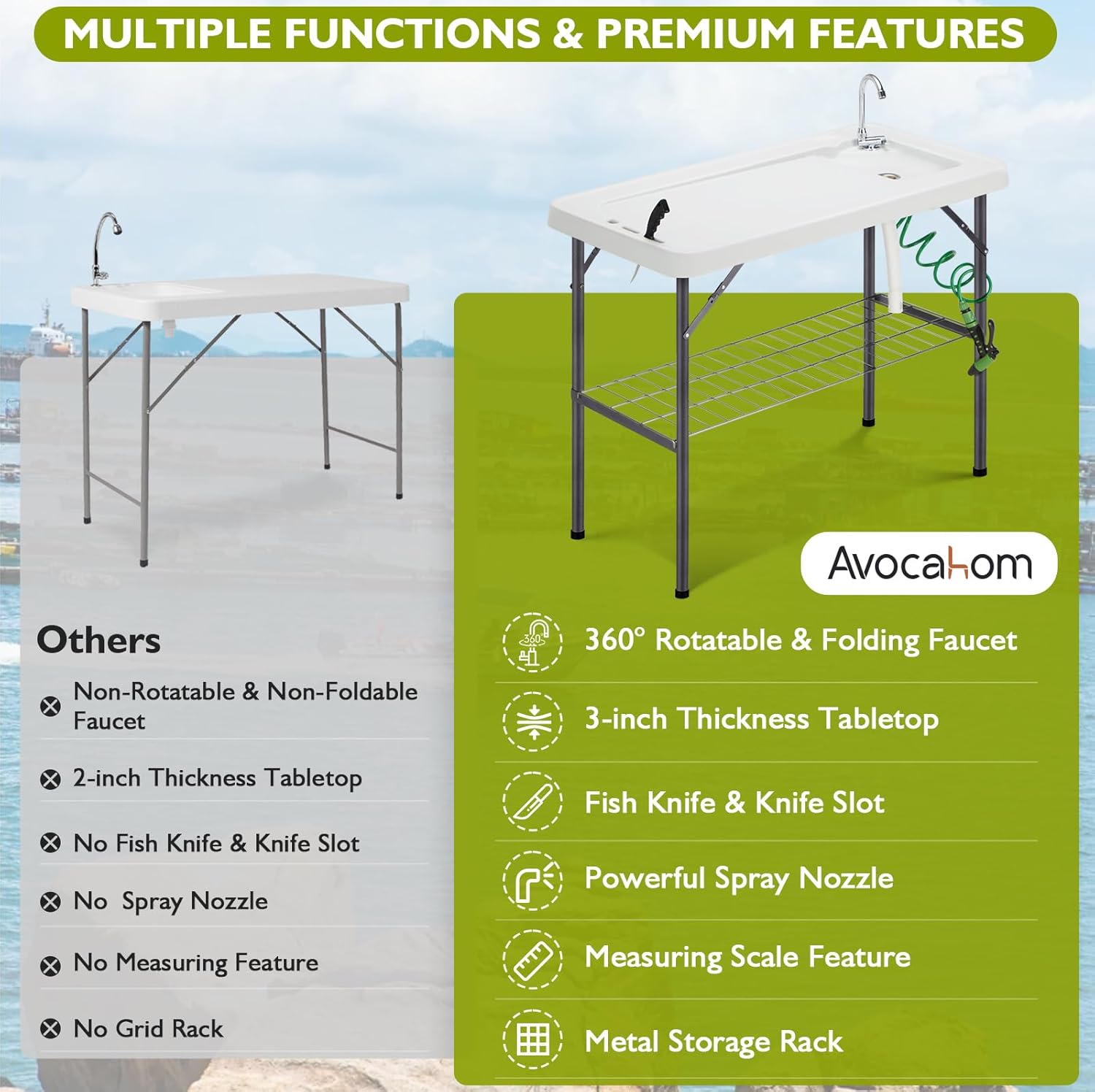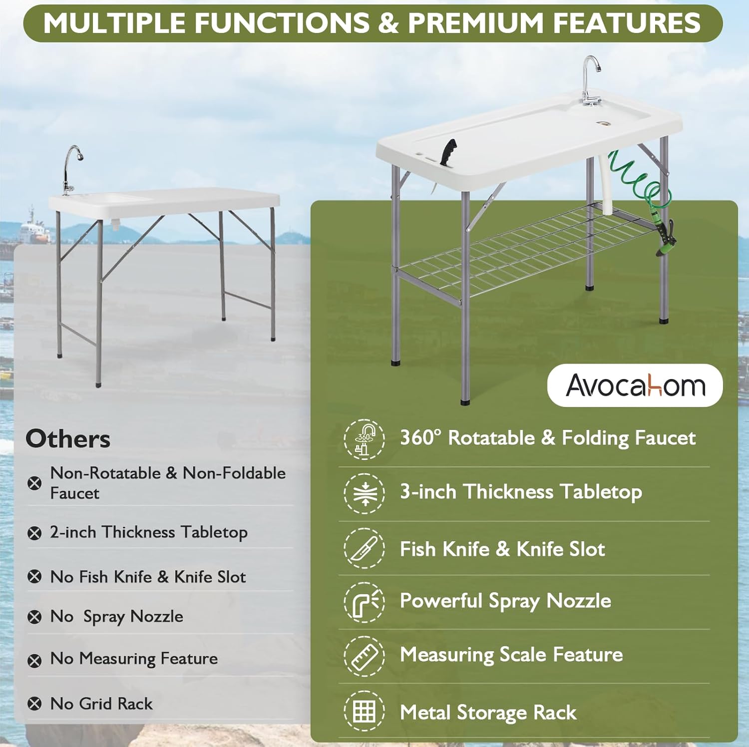 Folding Fish Cleaning Table Portable Camping Sink Table with Faucet Drain Hose and Sprayer Outdoor Fish Fillet Cleaning Station