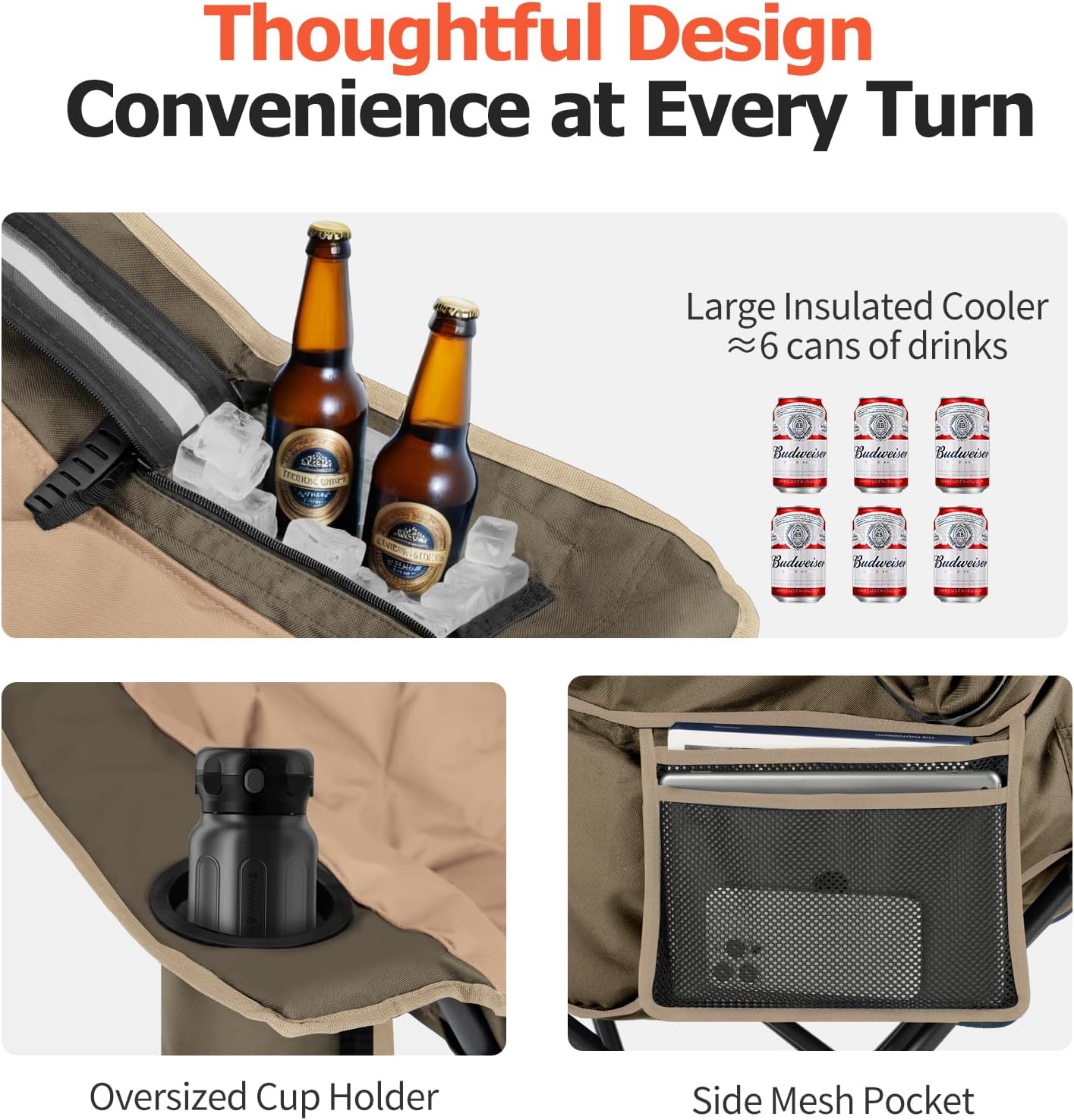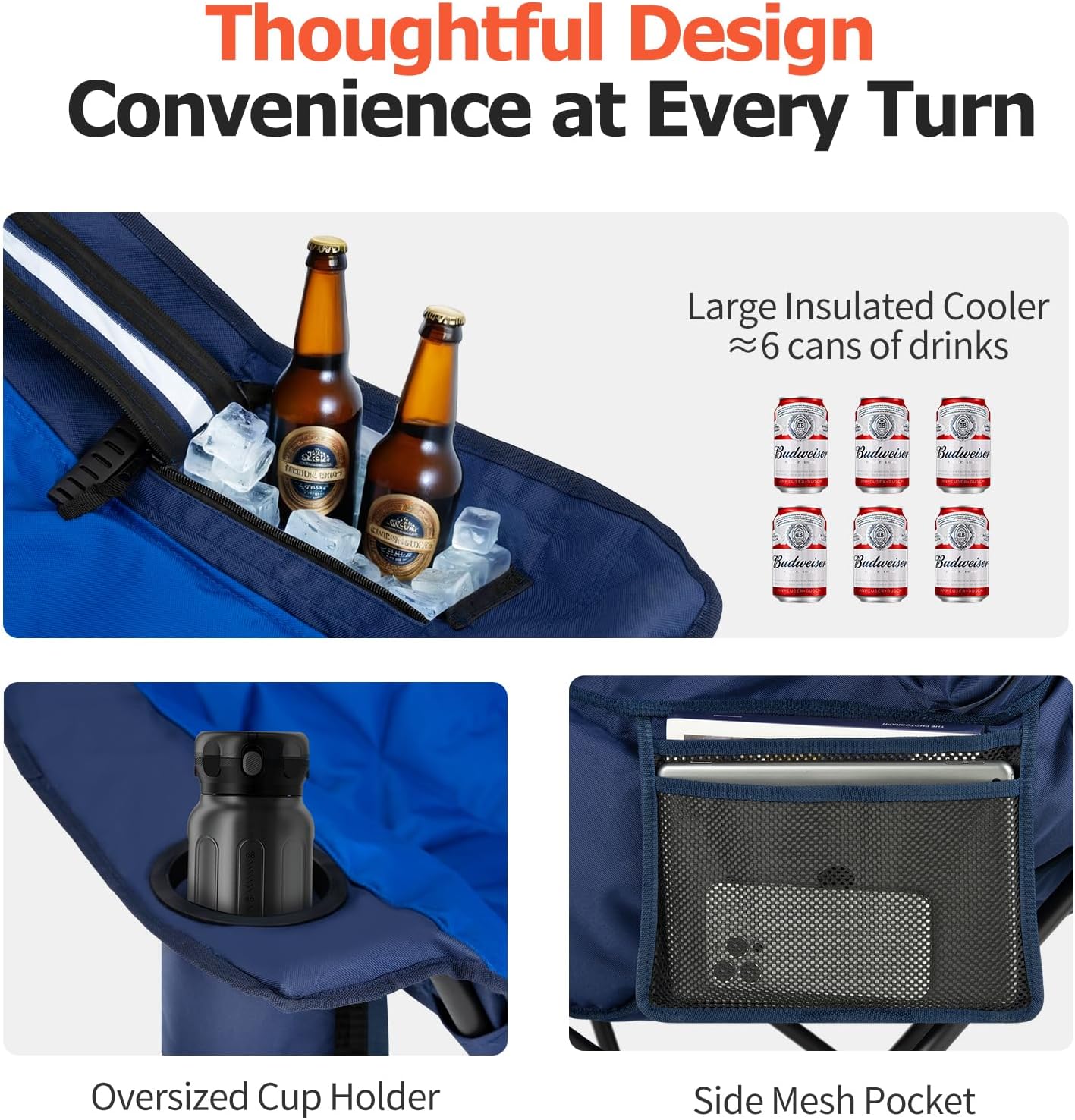 Double Camping Chair with Cooler 3-Person Folding Extra Large Camping Chair with 1000-Pound Load Capacity