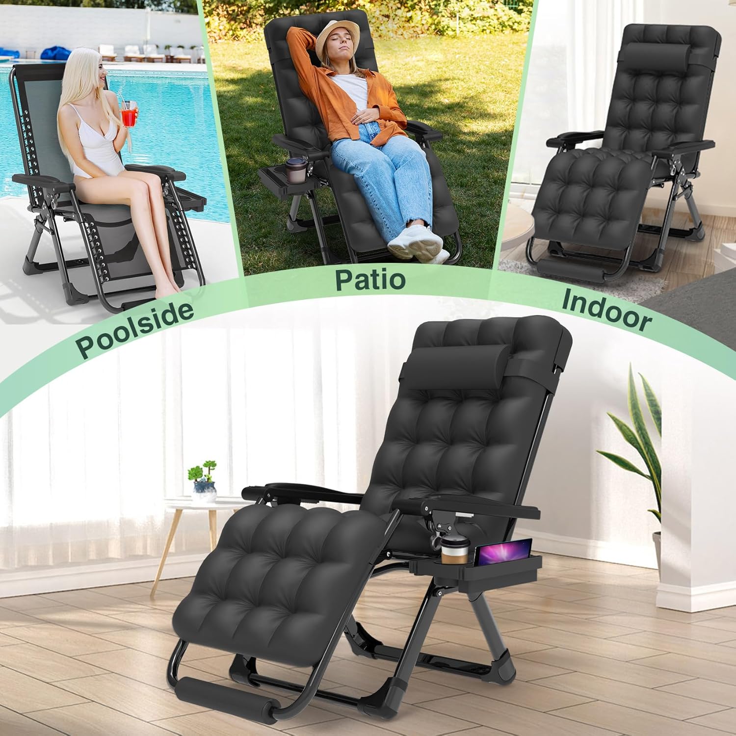 Indoor and outdoor patio chair folding lounge chair zero gravity chair with removable cushion camping lounge chair