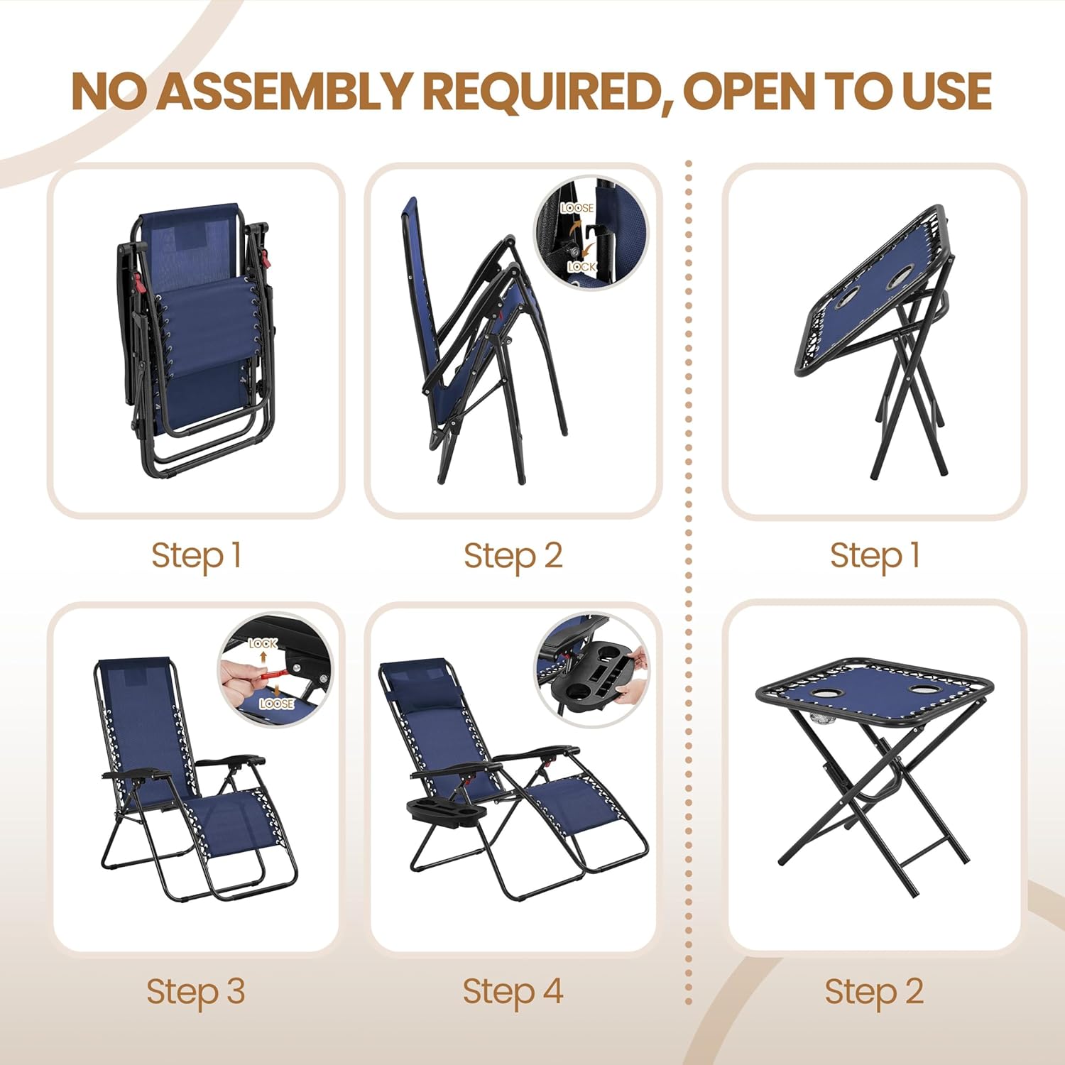 3PCS Zero Gravity Recliner Portable Outdoor Reclining Chair Set w/Side Table Folding Chaise Lounge Chairs
