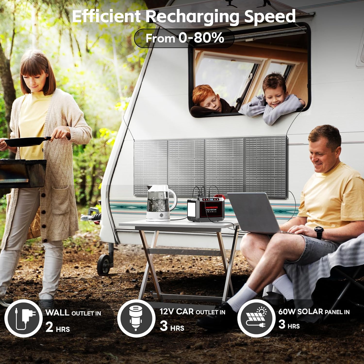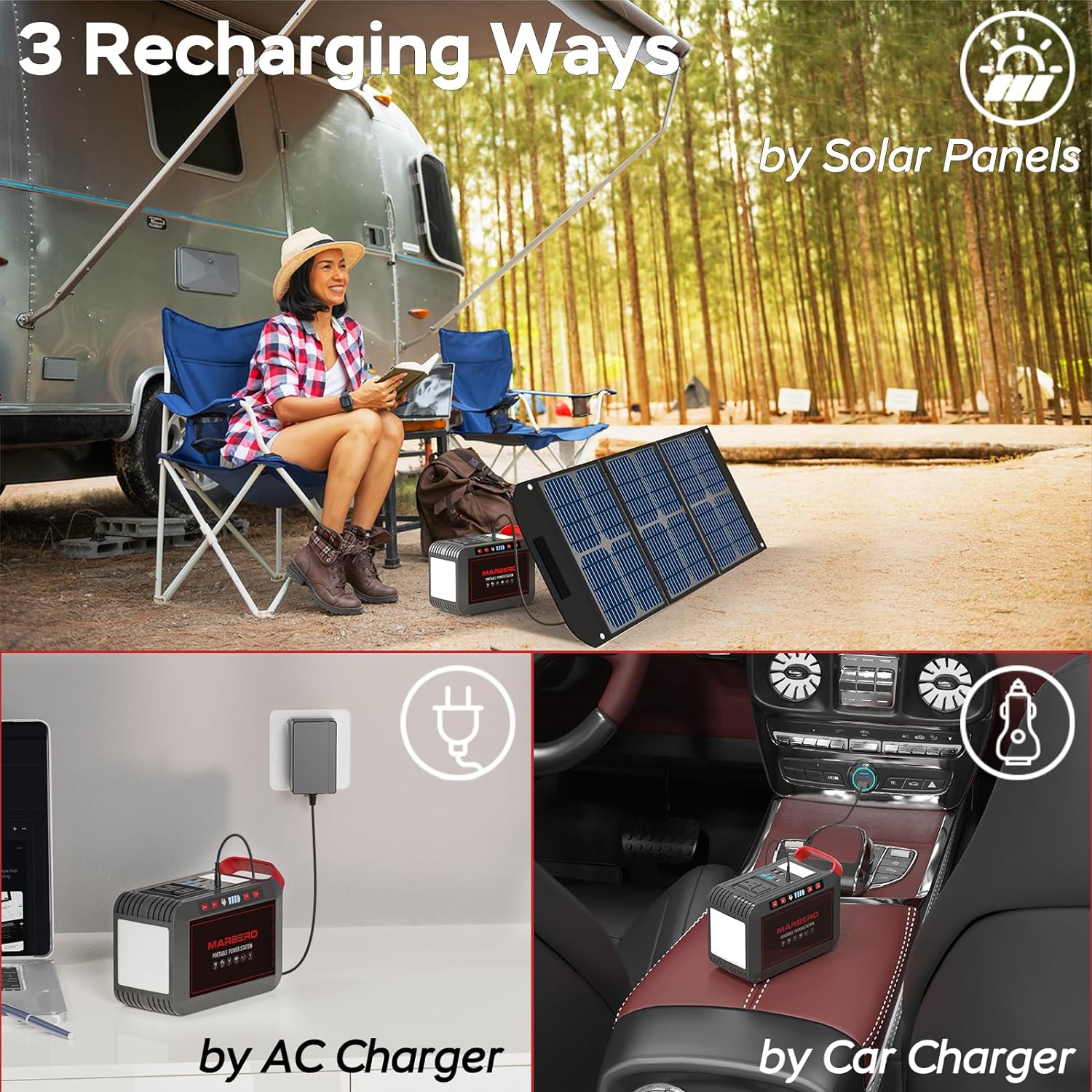 Portable Power Station 88Wh Camping Lithium Battery Solar Generator Fast Charging with AC Outlet 120W Peak Power Bank