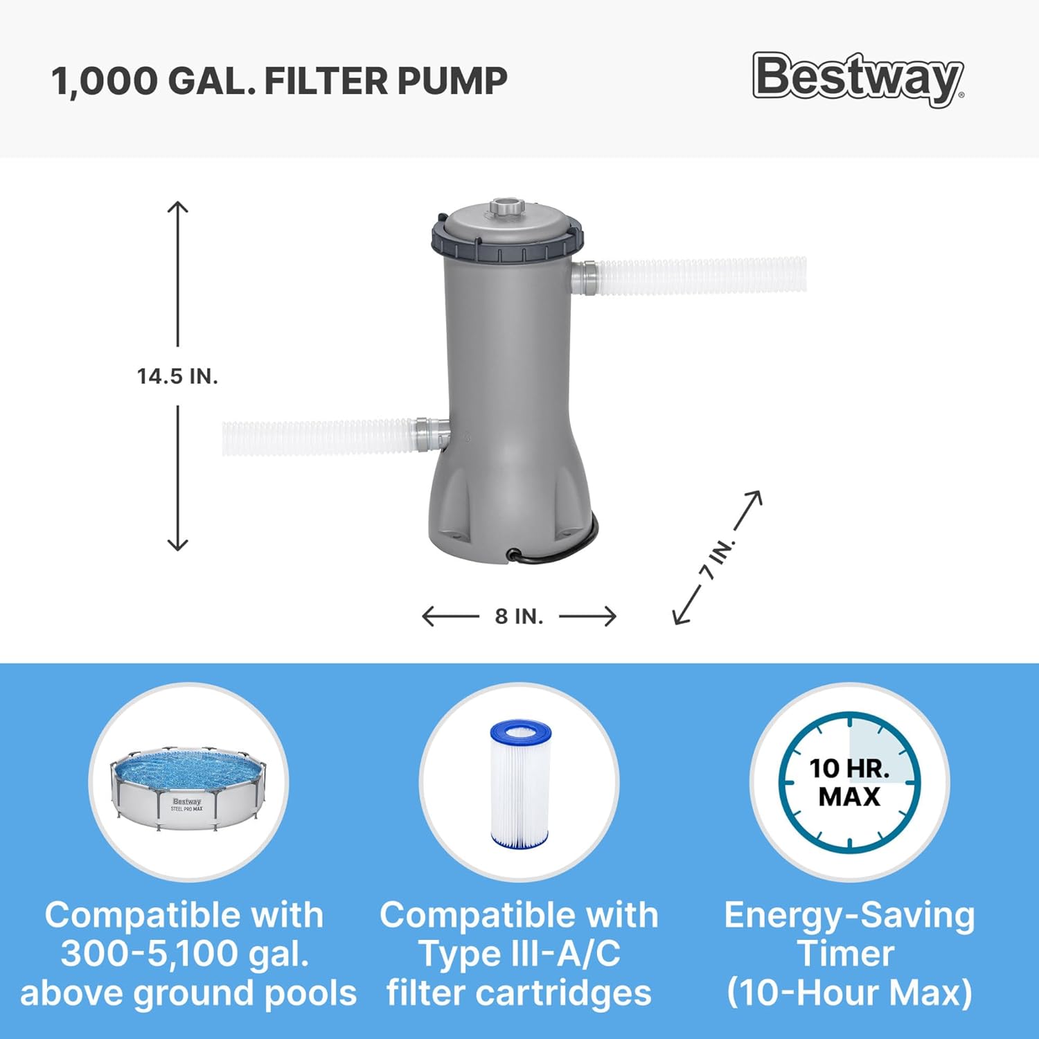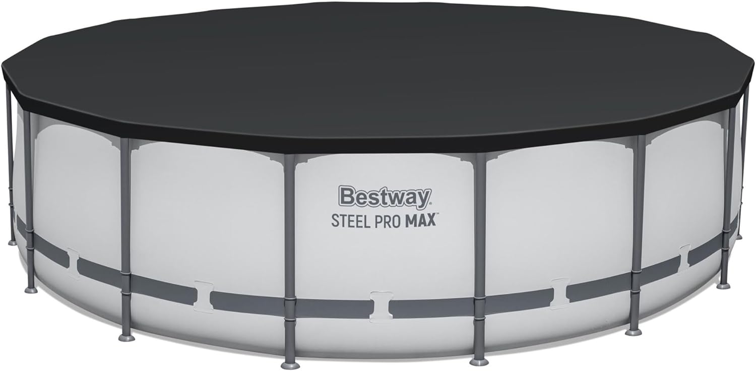 Steel Pro MAX 14 Foot x 48 Inch Round Metal Frame Above Ground Outdoor Swimming Pool Set with 1,000 Filter Pump, Ladder, and Cover, Gray