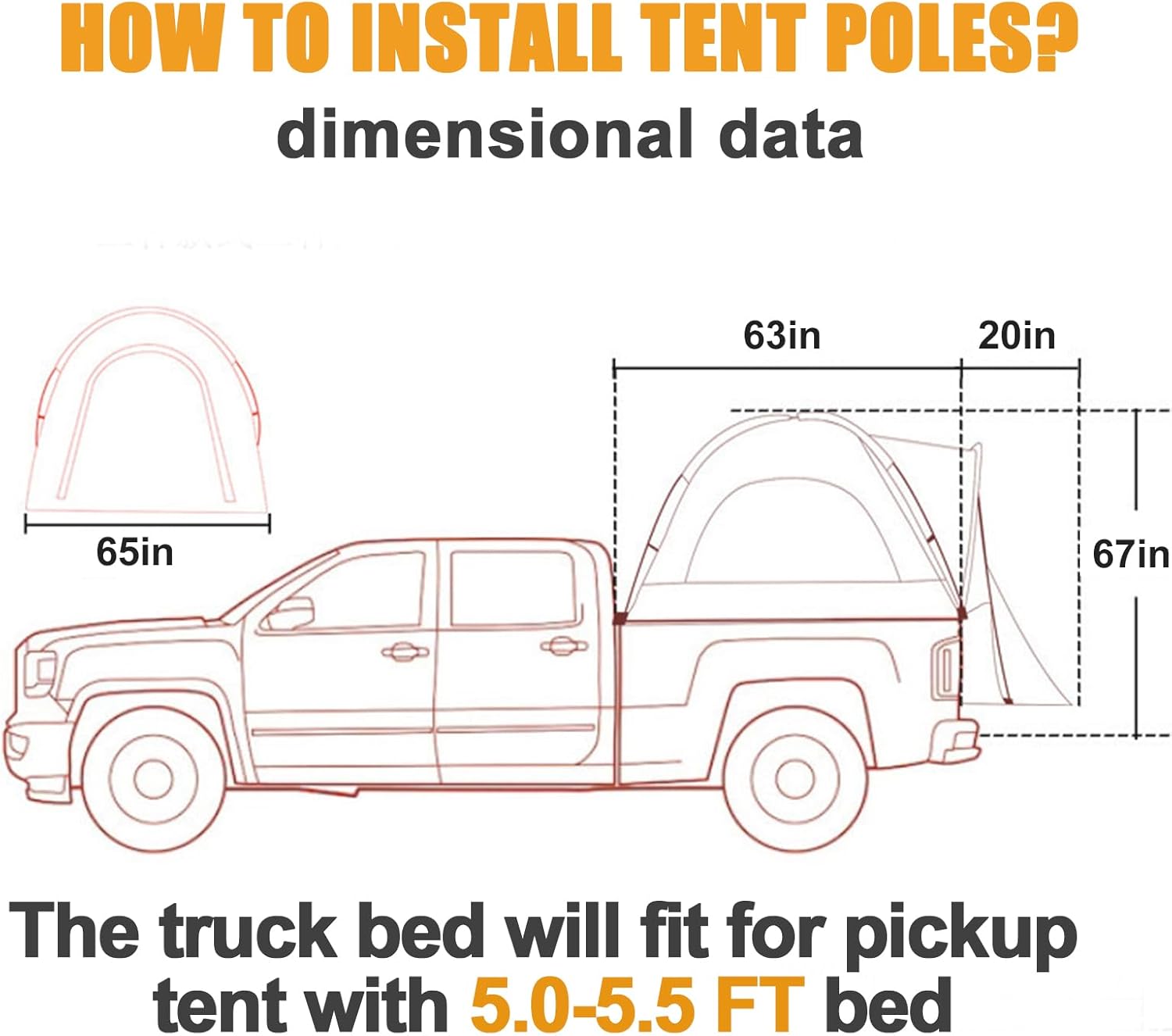 Truck Bed Tent 5.5ft-8ft, Suitable for 2+1 People/Family Inflatable Pickup Truck Tent