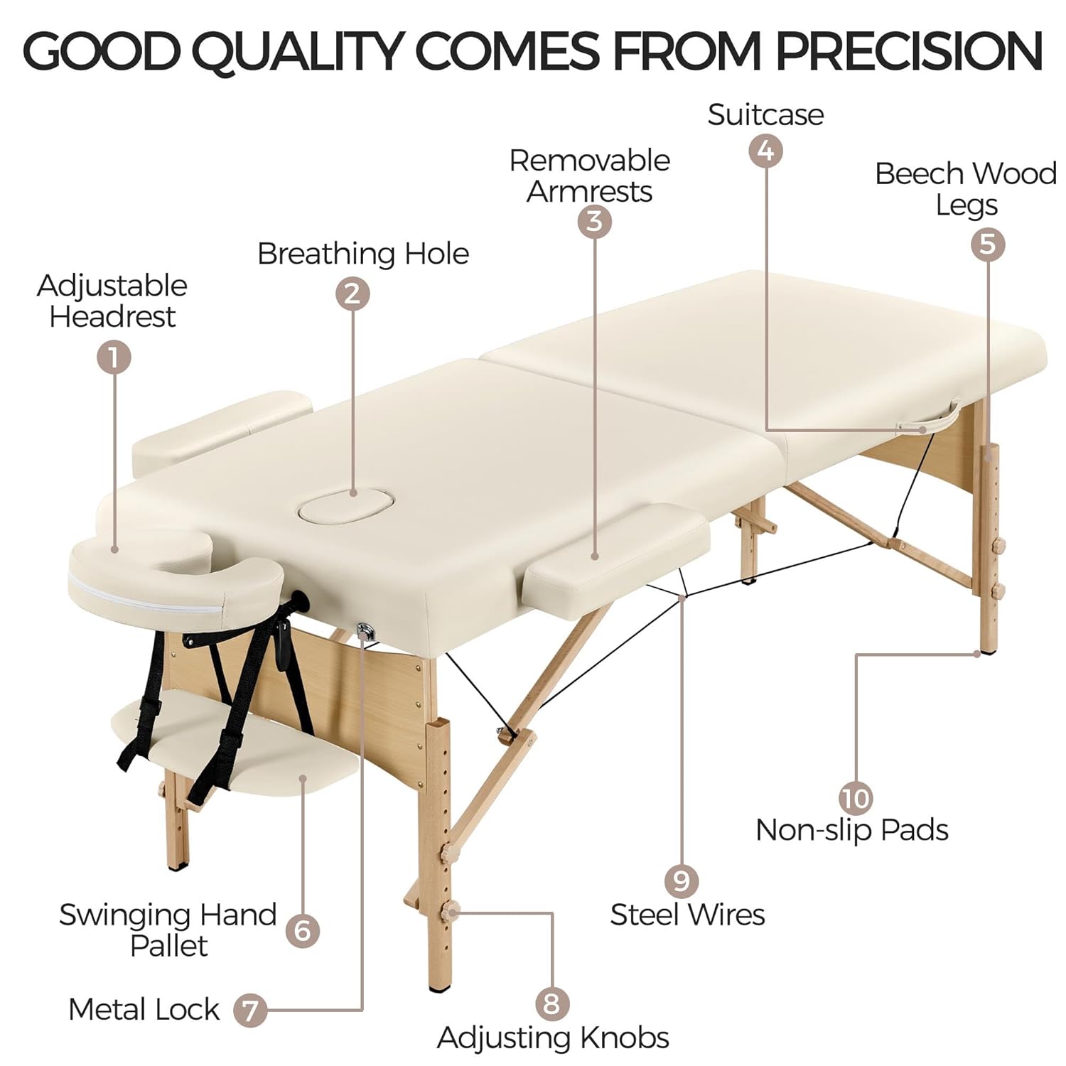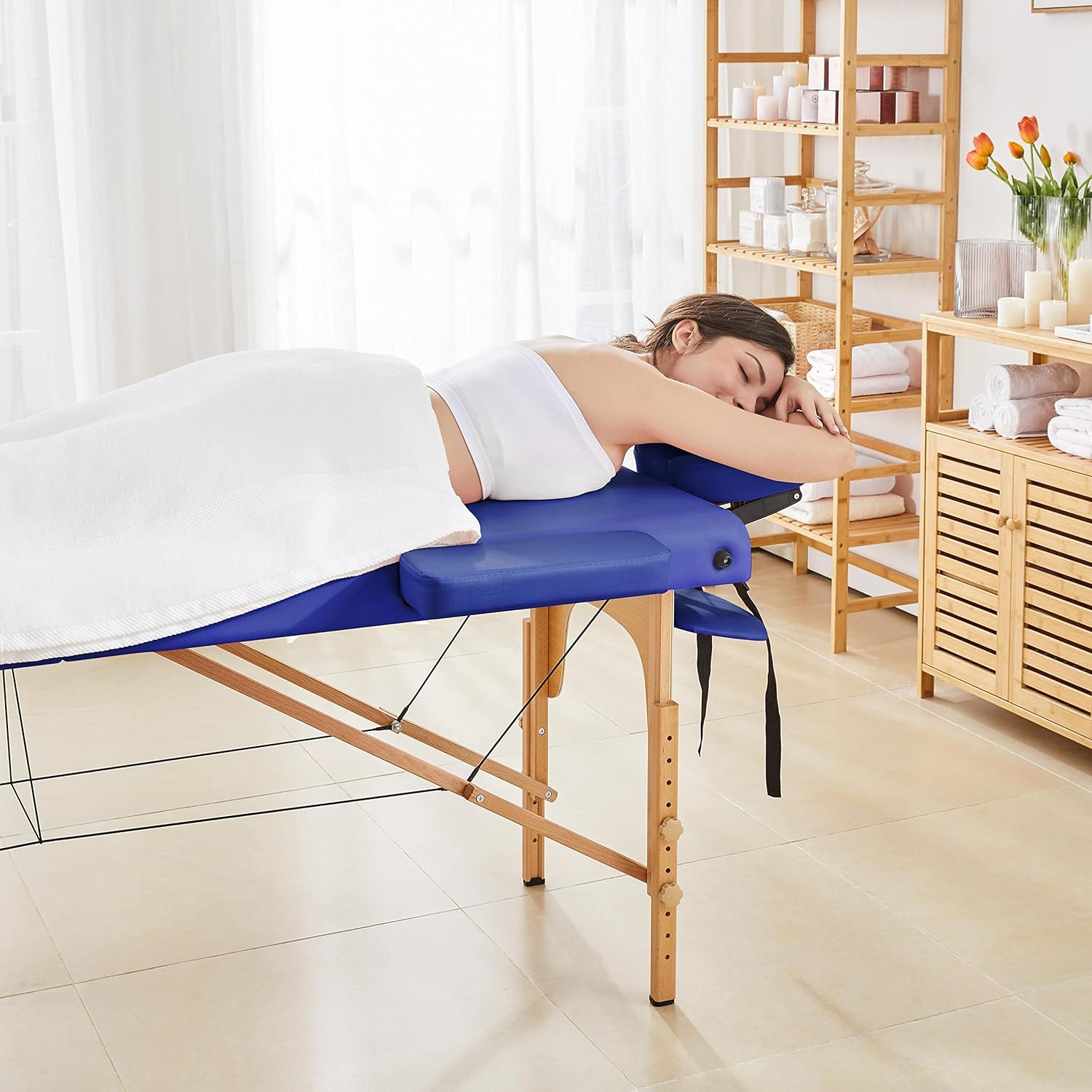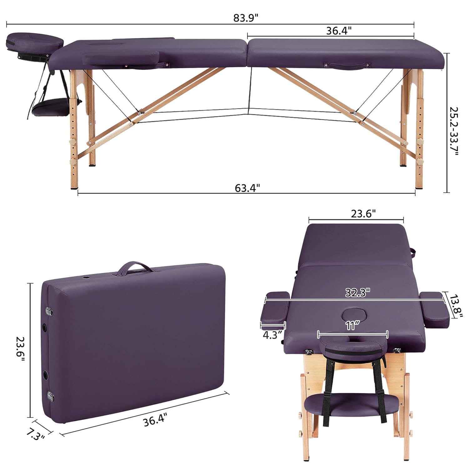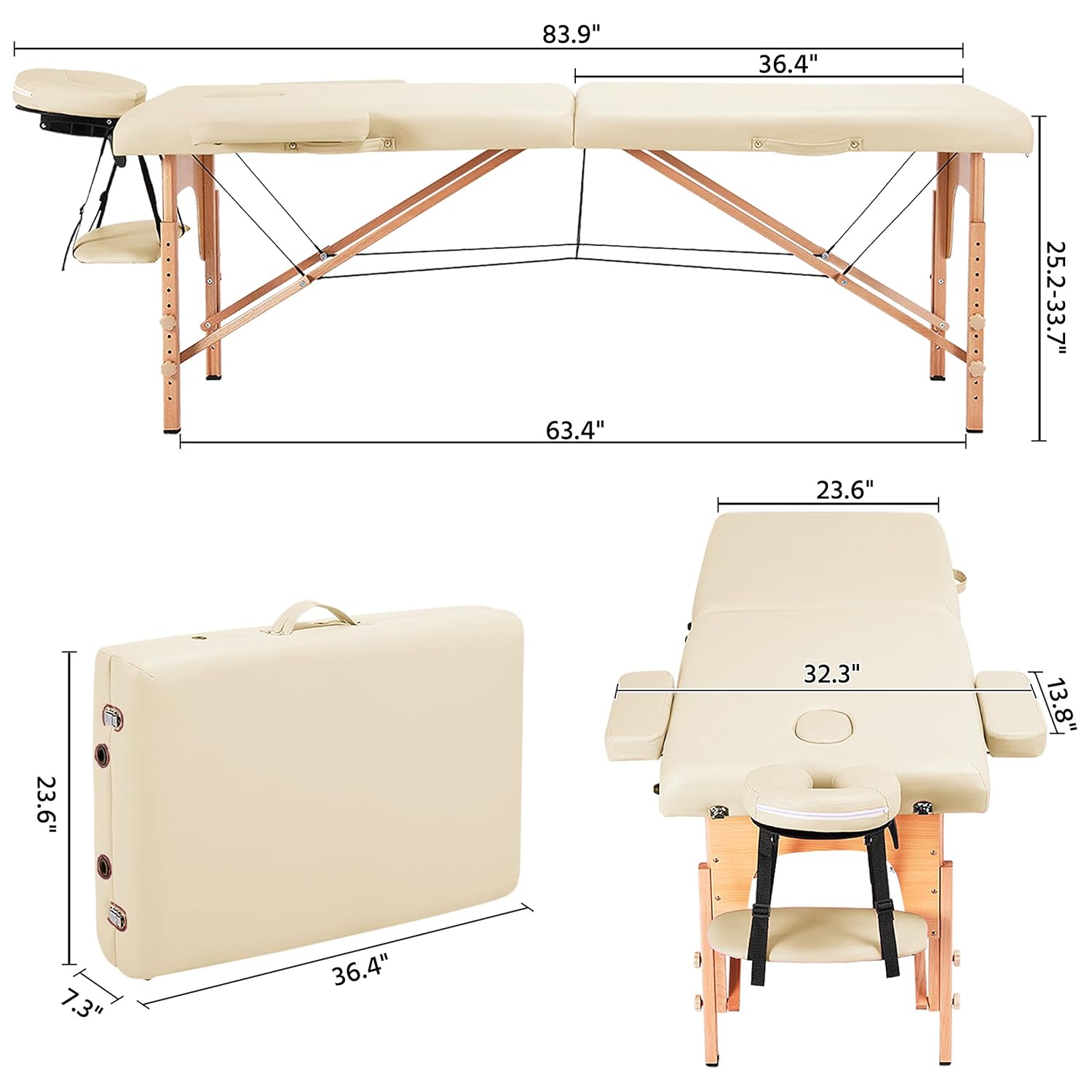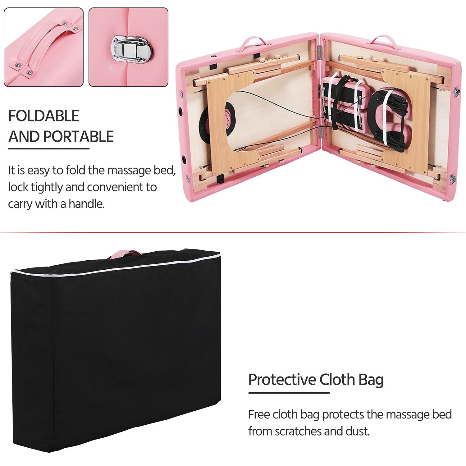Yaheetech Massage Table Portable Lash Beds Spa Bed Massage Couch Foldable Spa Tables Adjustable 2 Fold with Non-Woven Bag 24 inch, Black