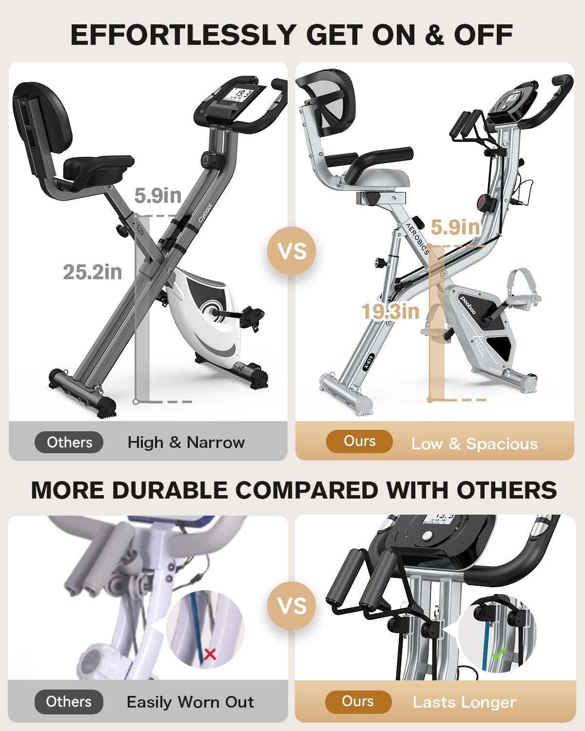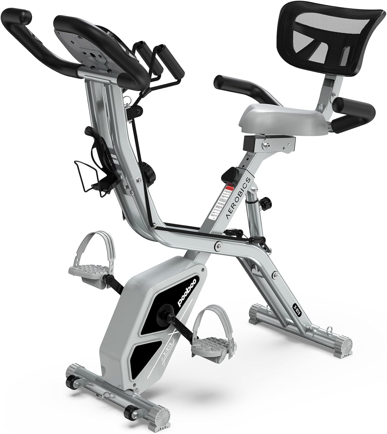 pooboo Folding Exercise Bike, Foldable Fitness Stationary Bike Machine, Upright Indoor Cycling Bike, Magnetic X-Bike with 8-Level Adjustable Resistance, Bottle Holder & Back Support Cushion for Home Gym Workout