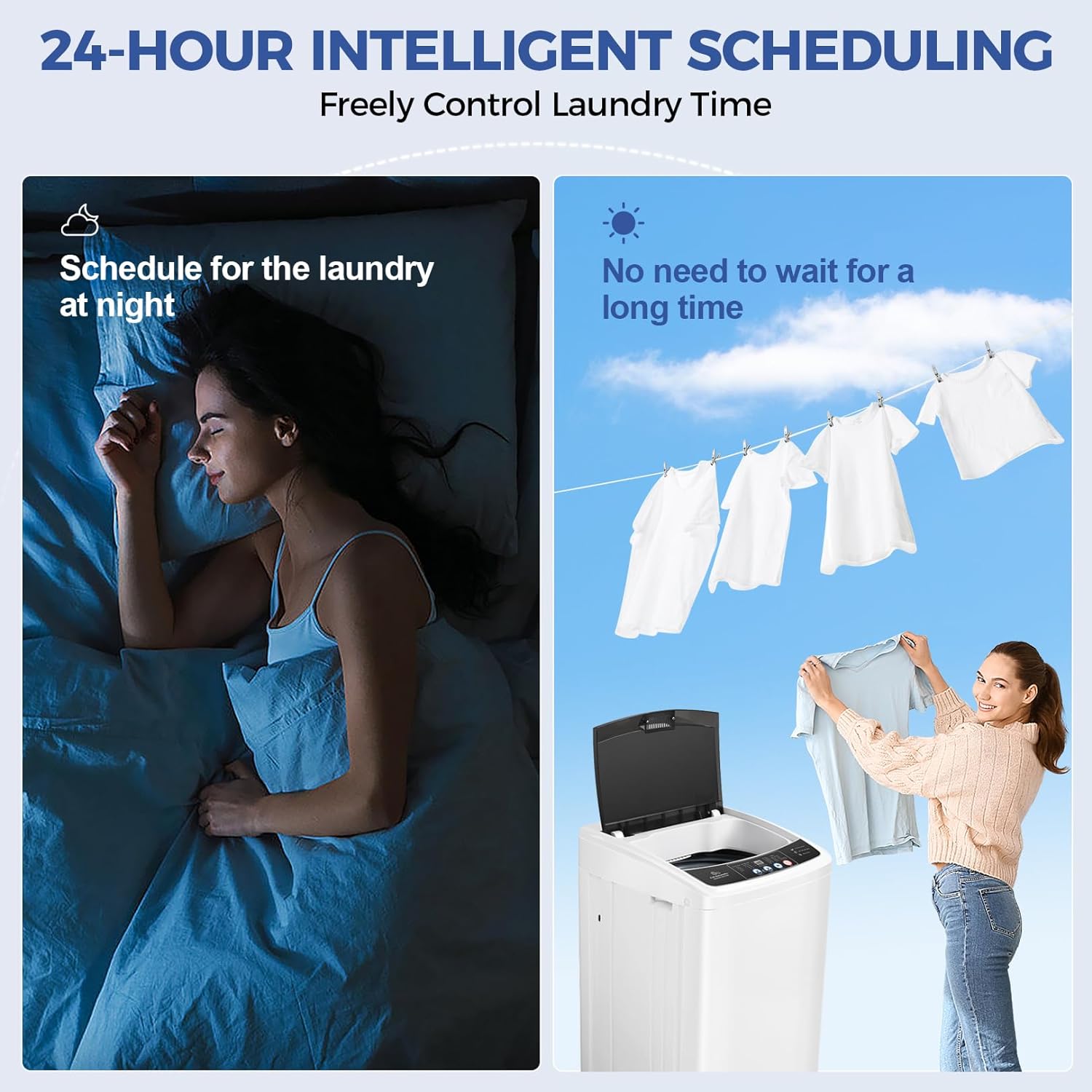 20Lbs Portable Washing Machine Nictemaw Portable Washer, 2.8 Cu.ft Washer and Dryer Combo with Drain Pump, 10 Programs 8 Water Level Compact Laundry Washer for Home, Apartment, RV, Dorms