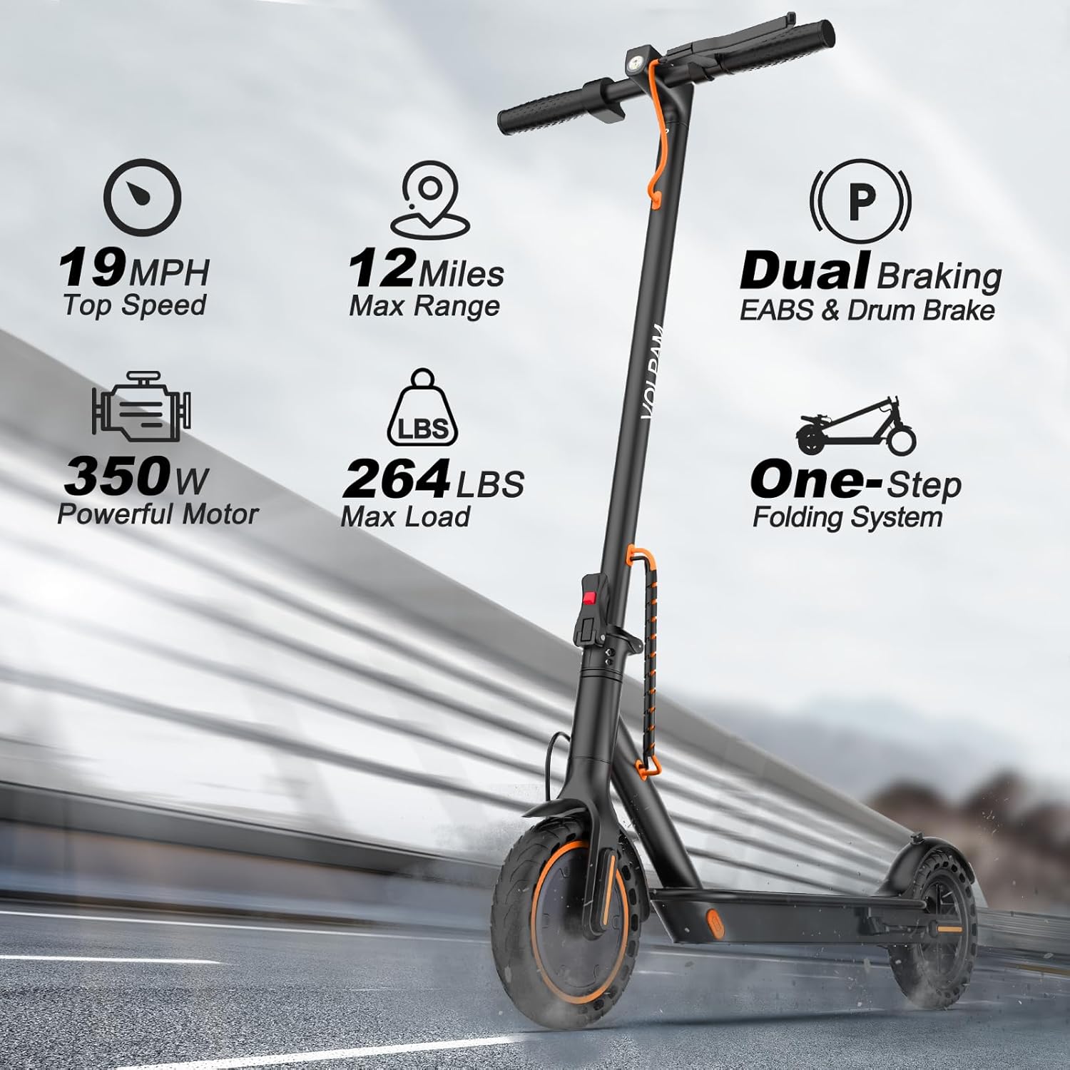 Volpam electric scooter Powerful electric motor Solid tires 28/21/12 mile range