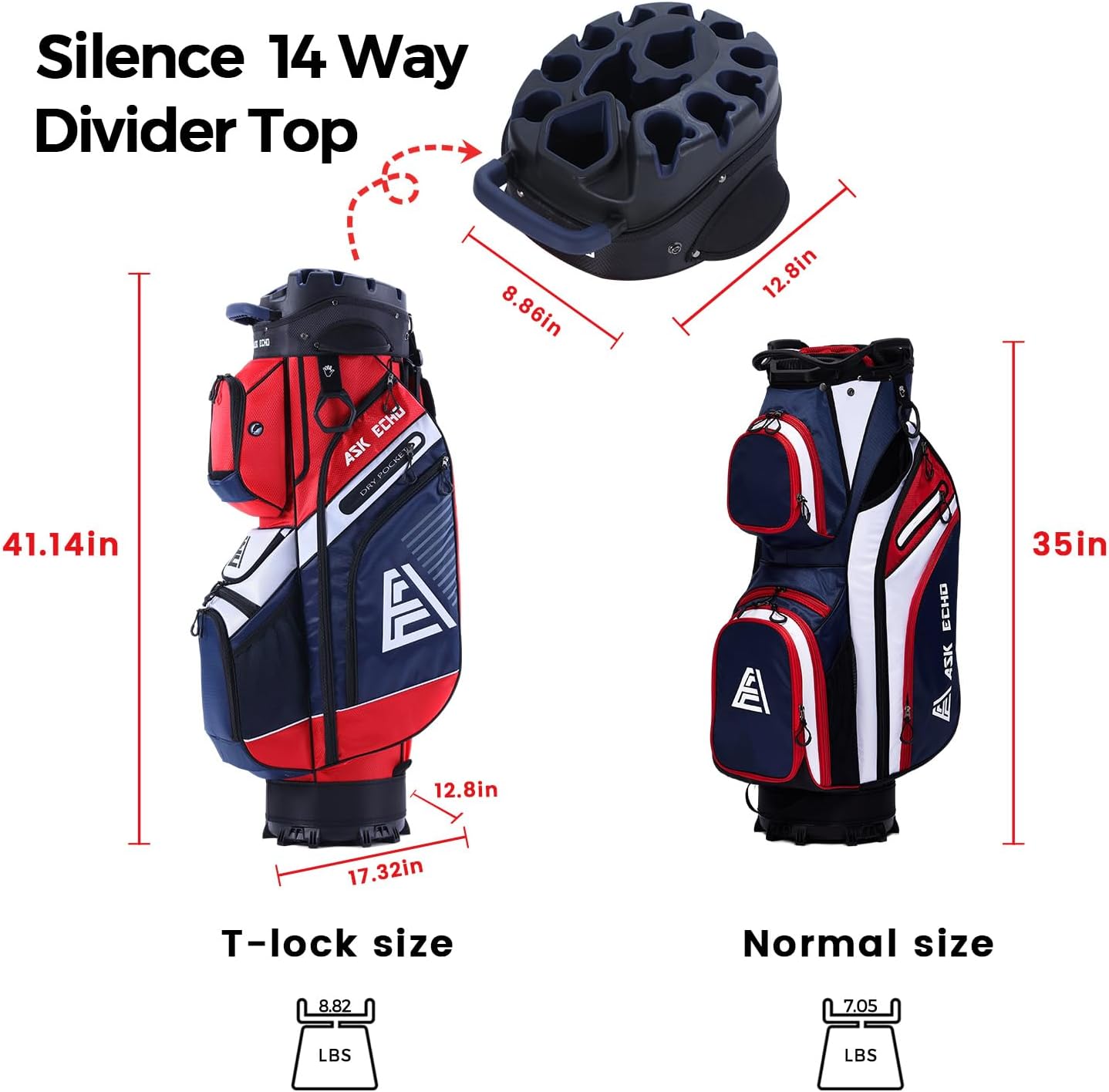 T-Lock Golf Cart Bag with 14 Way Organizer Divider Top, Premium Cart Bag