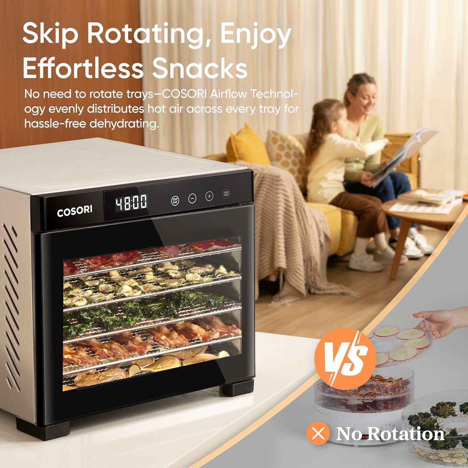 COSORI Food Dehydrator, Bigger Than 7 Trays With Large 6.5" Drying Space, 600W Power Saves More Time Than 480W, 165°F Dehydrated Dryer