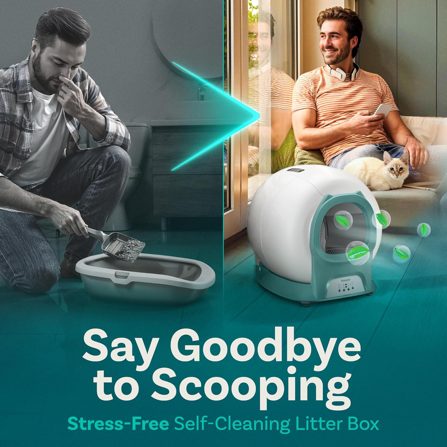 Self Cleaning Litter Box with Auto Safety Sensors for Multiple Cats - Automatic Cat Litter Box Self-Cleaning - Covered Odor Removal with APP Control - Compatible On All WiFi