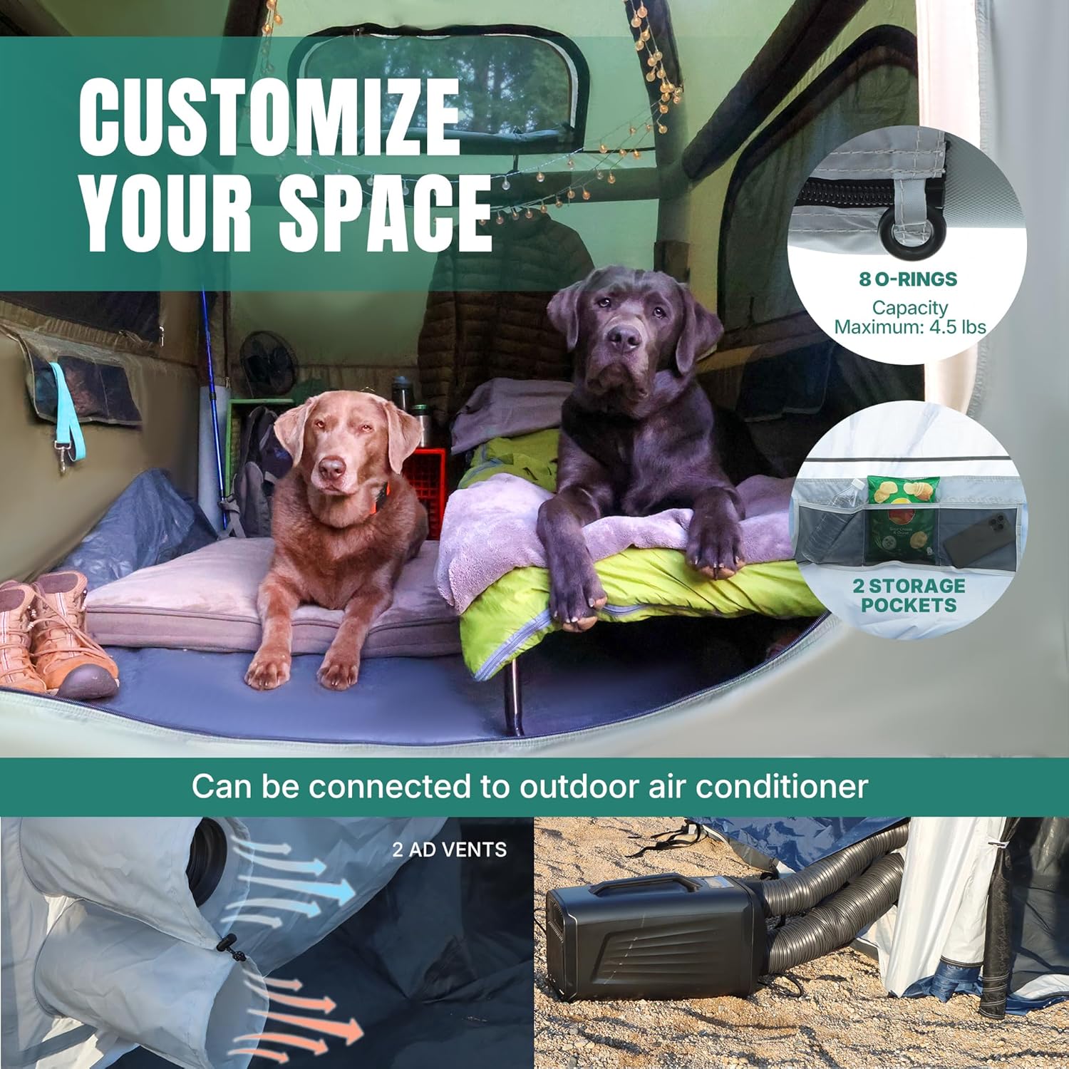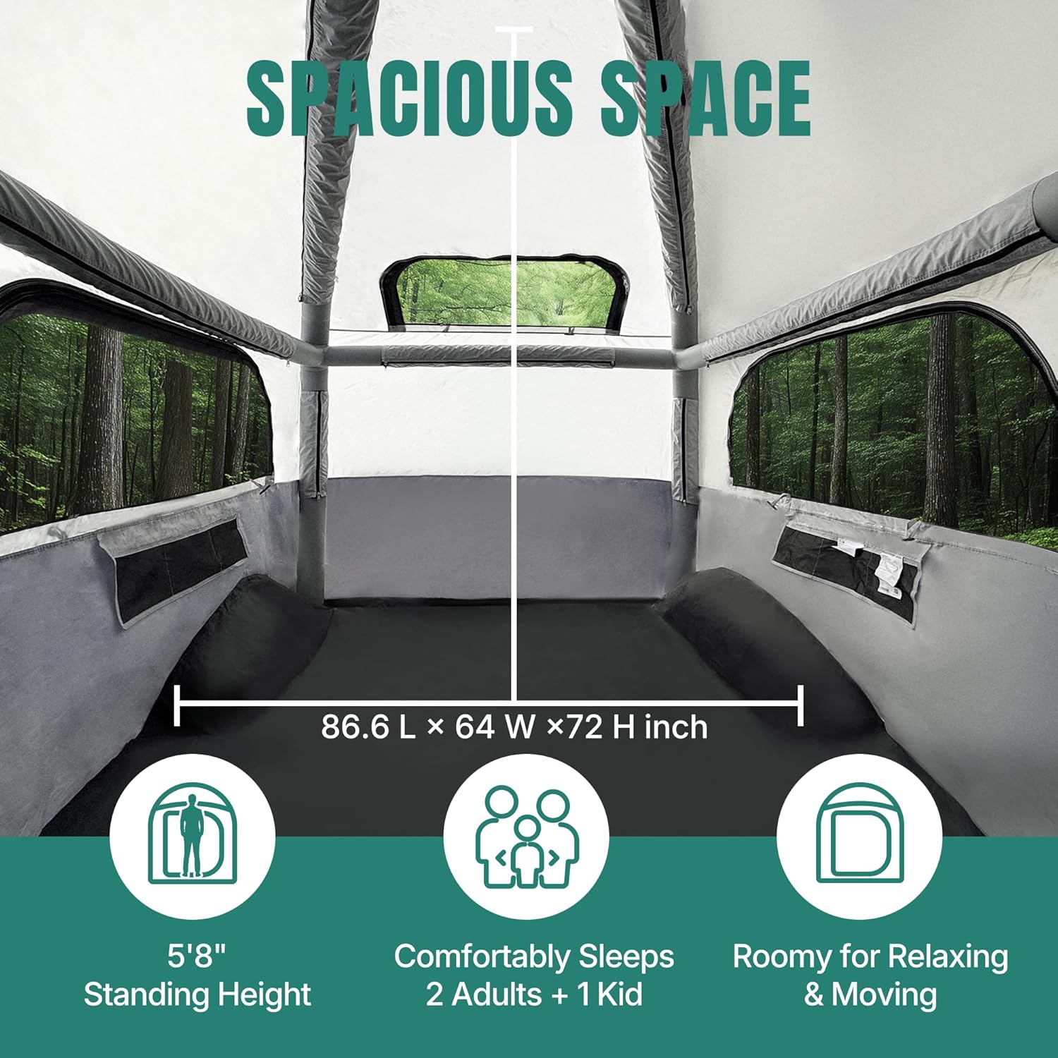 SUV Tent, 5-9 Person Rectangle Car Tent for Family, Waterproof & Windproof for Car Camping, Large Camping Tents with Storage Bag, SUV, Van, Jeep, Pickup 8FT L x 10.6FT W x 7.2FT H