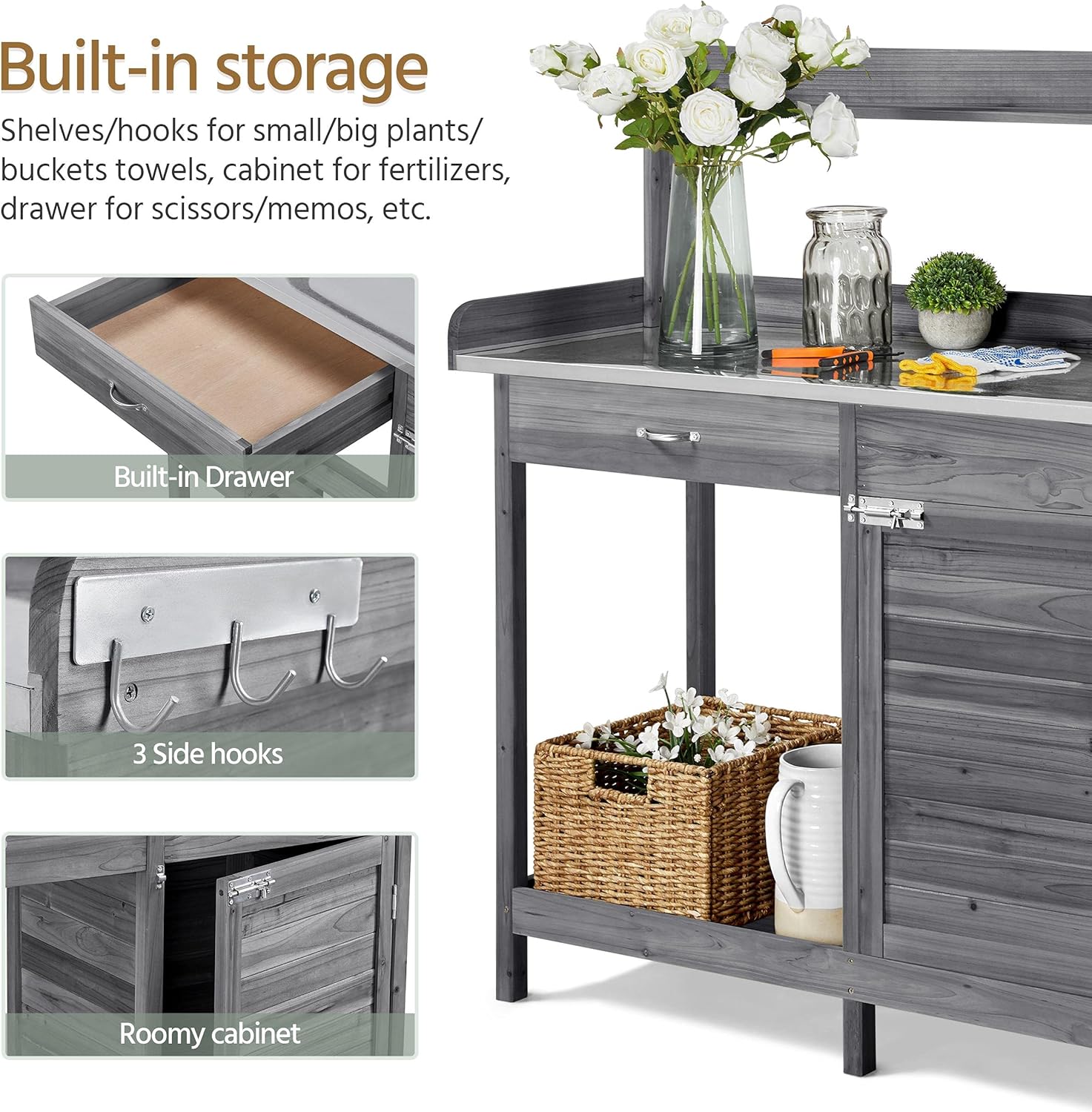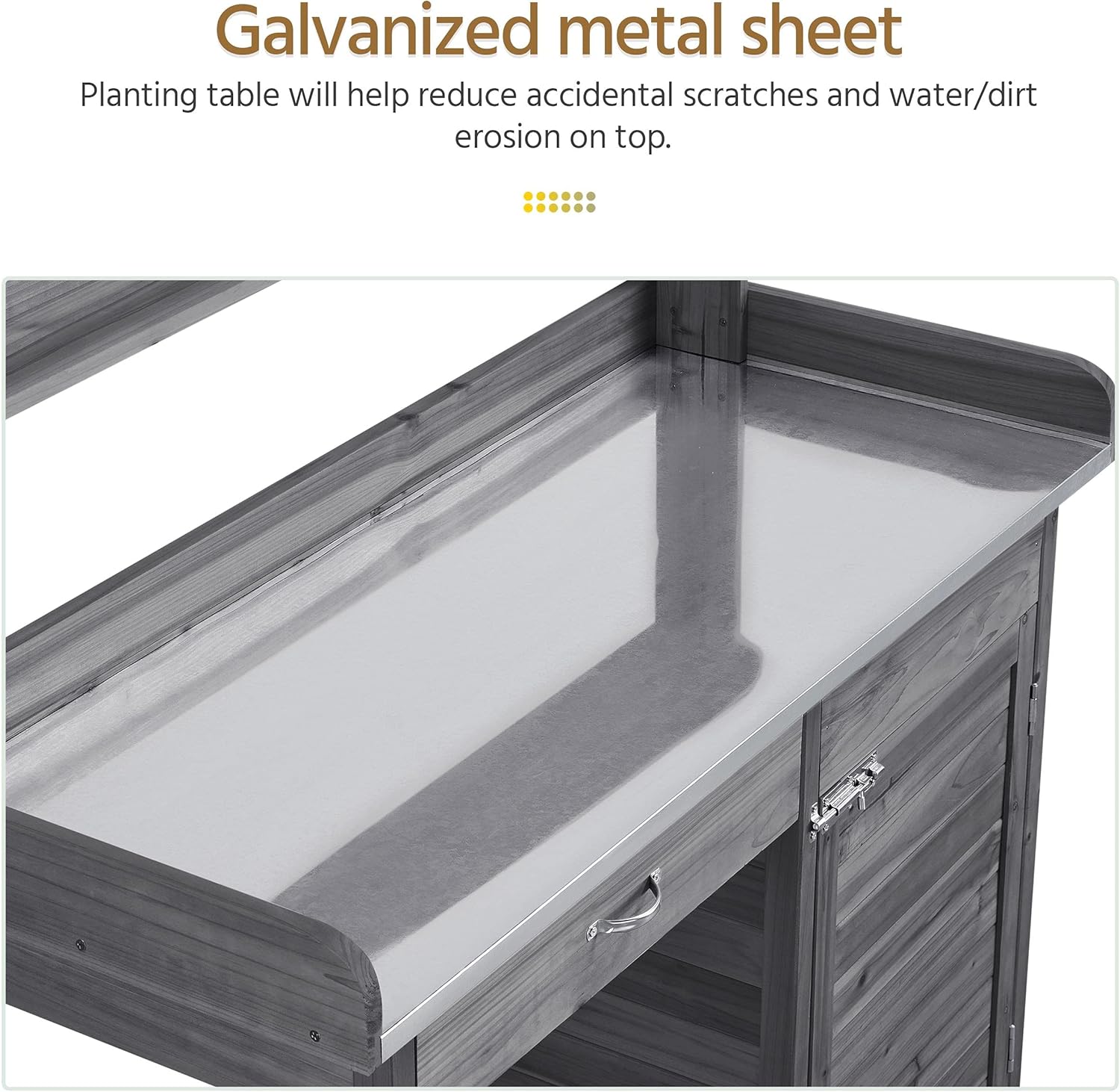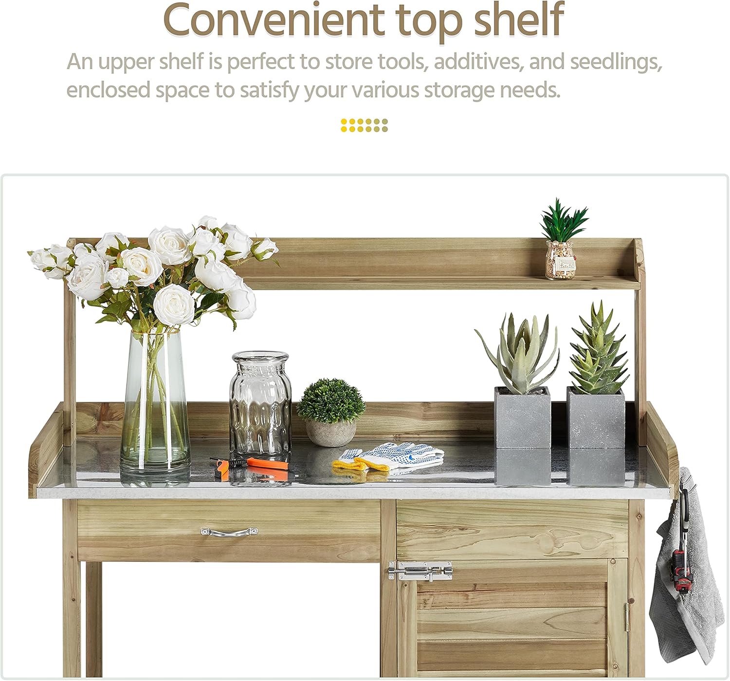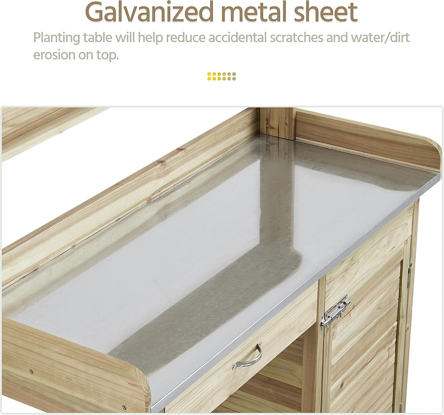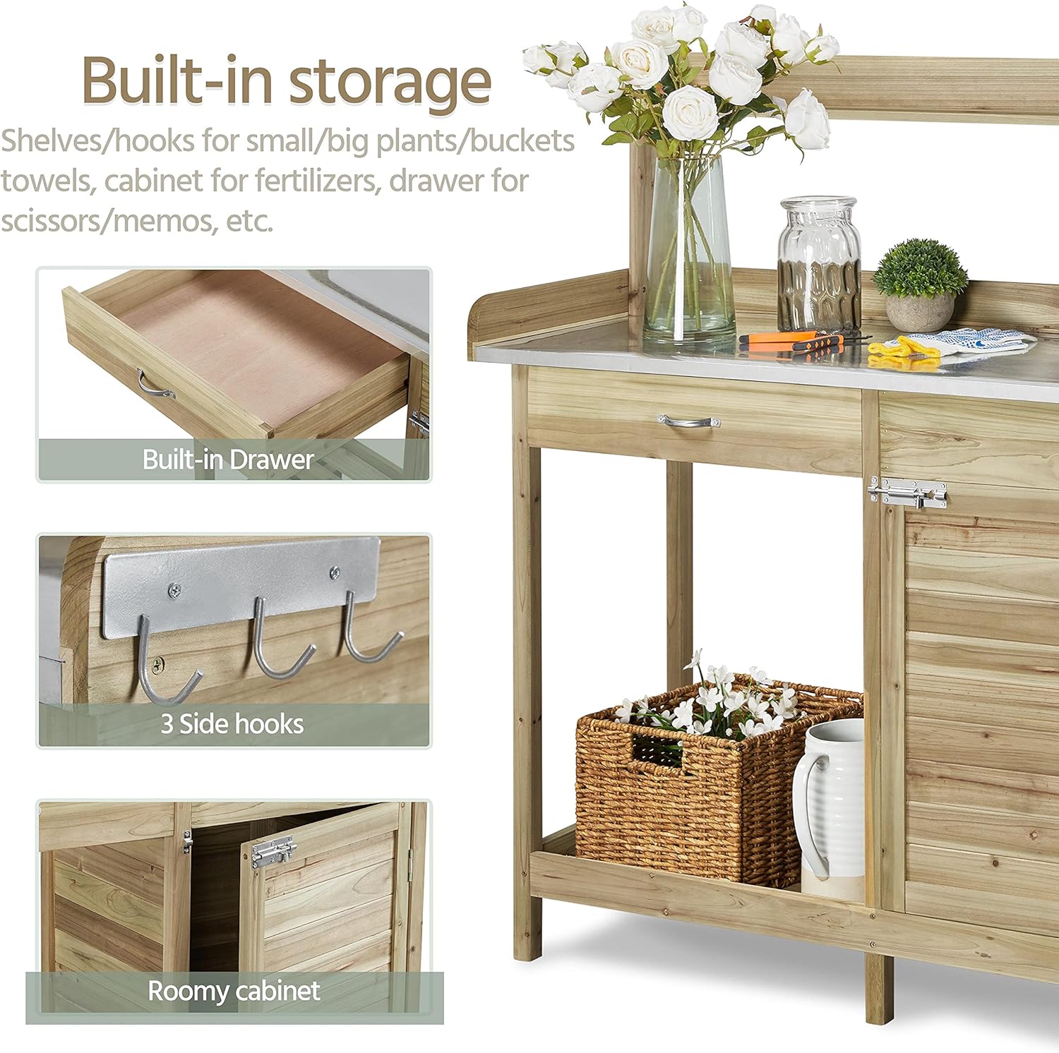 Yaheetech Outdoor Garden Potting Bench Table Work Bench Metal Tabletop W/Cabinet Drawer Open Shelf Natural Wood