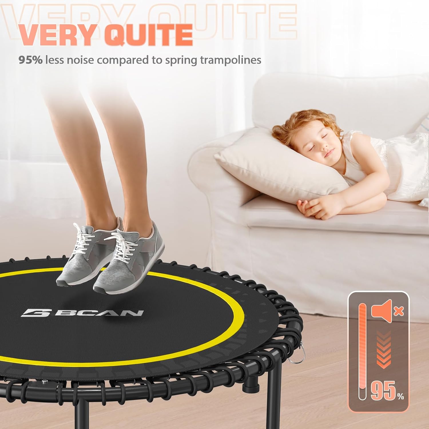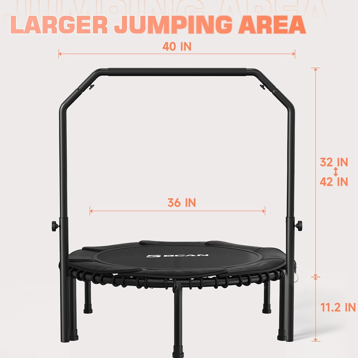 BCAN 450/550 LBS Foldable Mini Trampoline, 40"/48" Fitness Trampoline with Bungees, U Shape Adjustable Foam Handle, Stable & Quiet Exercise Rebounder for Adults Indoor/Outdoor Workout