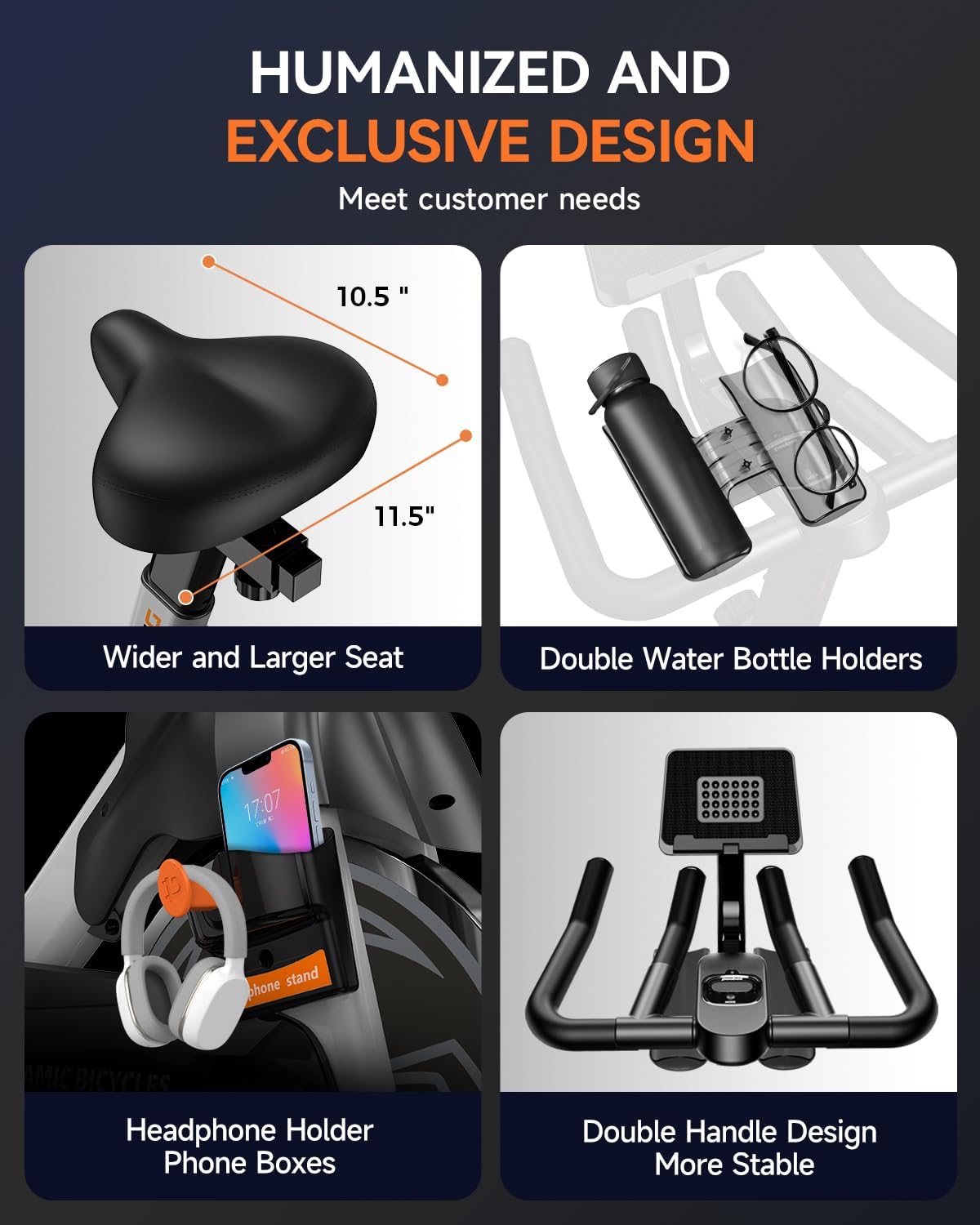 CURSOR FITNESS Exercise Bike, Stationary Bikes for Home, 300 LBS Capacity, Workout Bike with Silent Belt Drive, Indoor Cycling Bike with Extra Comfort Seat/IPad Mount/3 Bottle Holders