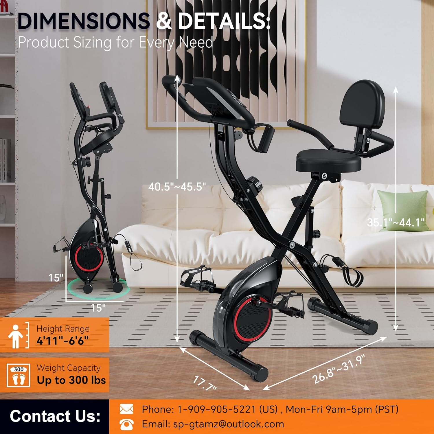 Foldable Exercise Bike Stationary Bikes for Home, 5 IN 1 Indoor Workout Bike, Cycling Bike with 16-Level Quiet Magnetic Resistance, 6.6 LBS Flywheel and 300LBS Capacity, 2025 Designed 817 X-bike