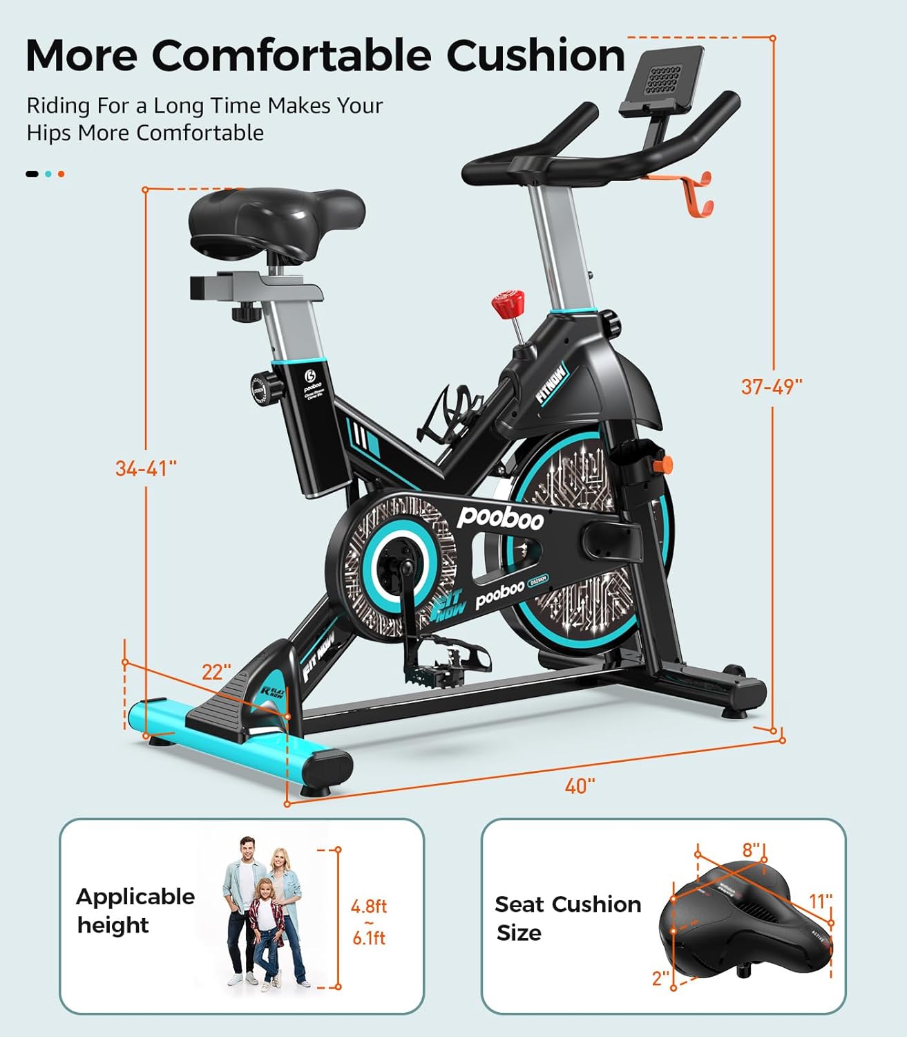 pooboo Exercise Bike, Adjustable Magnetic/Brake Pad Resistance Silent Belt Drive, Indoor Cycling Bike for Home Cardio, Fitness Stationary Bike with 350lbs/300lbs Weight Capacity &Upgraded Version Seat