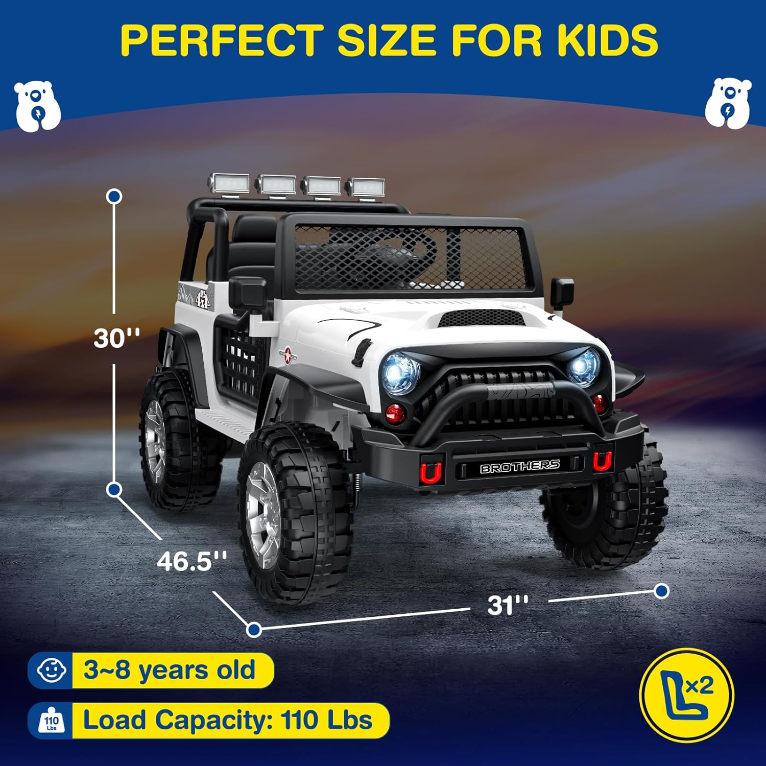 L8 Ride On Car, 2 Seater, 12V Kids Electric Car w/Remote Control, 4-Wheel Suspension, Bluetooth Speaker, Multi Music Modes, 3 Speeds, LED Lights, Xmas & Birthday Gift Ideas for Kids Ages 3+