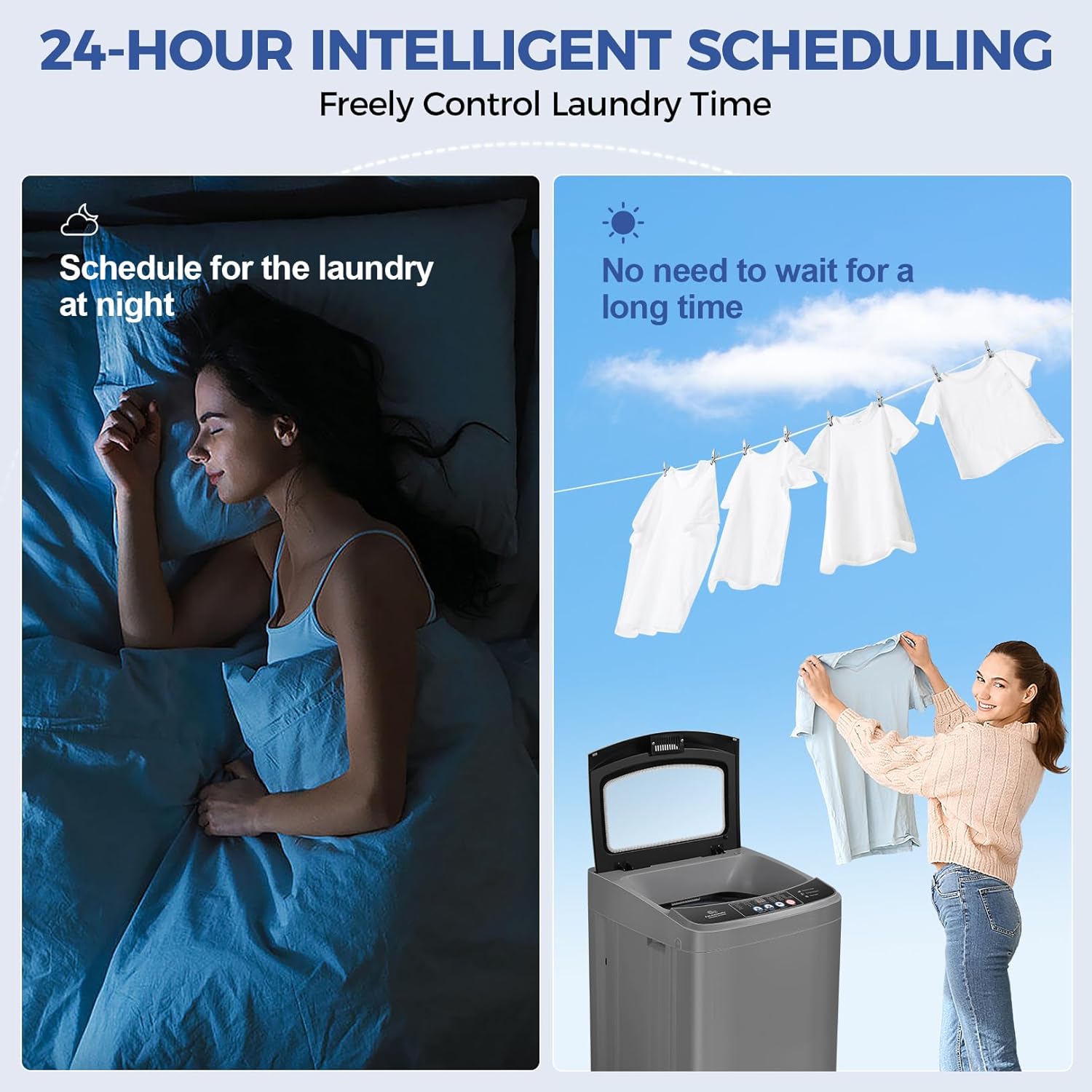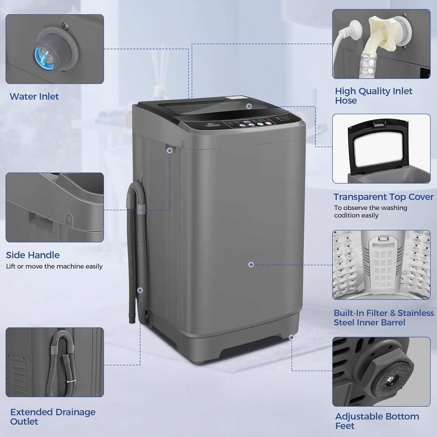 Nictemaw Portable Washing Machine, 20Lbs Capacity Full-Automatic Portable Washer Machine, 2.8Cu.ft Washer and Dryer Combo with Drain Pump, 10 Programs & 8 Water Levels for Apartment, Dorms, RV