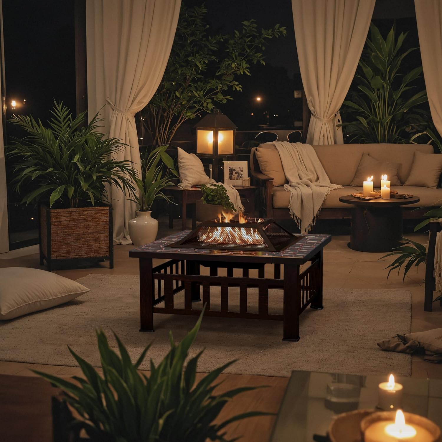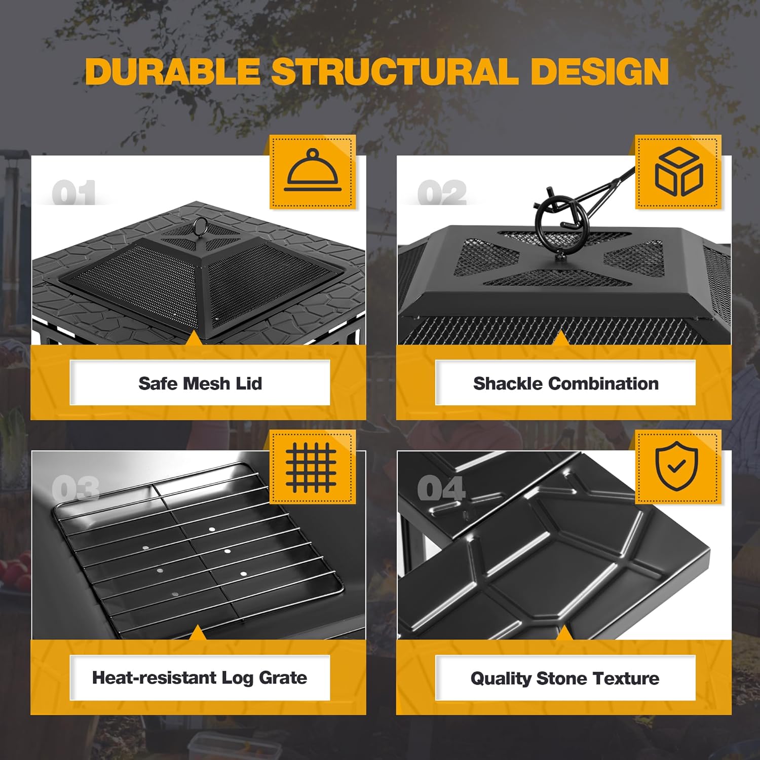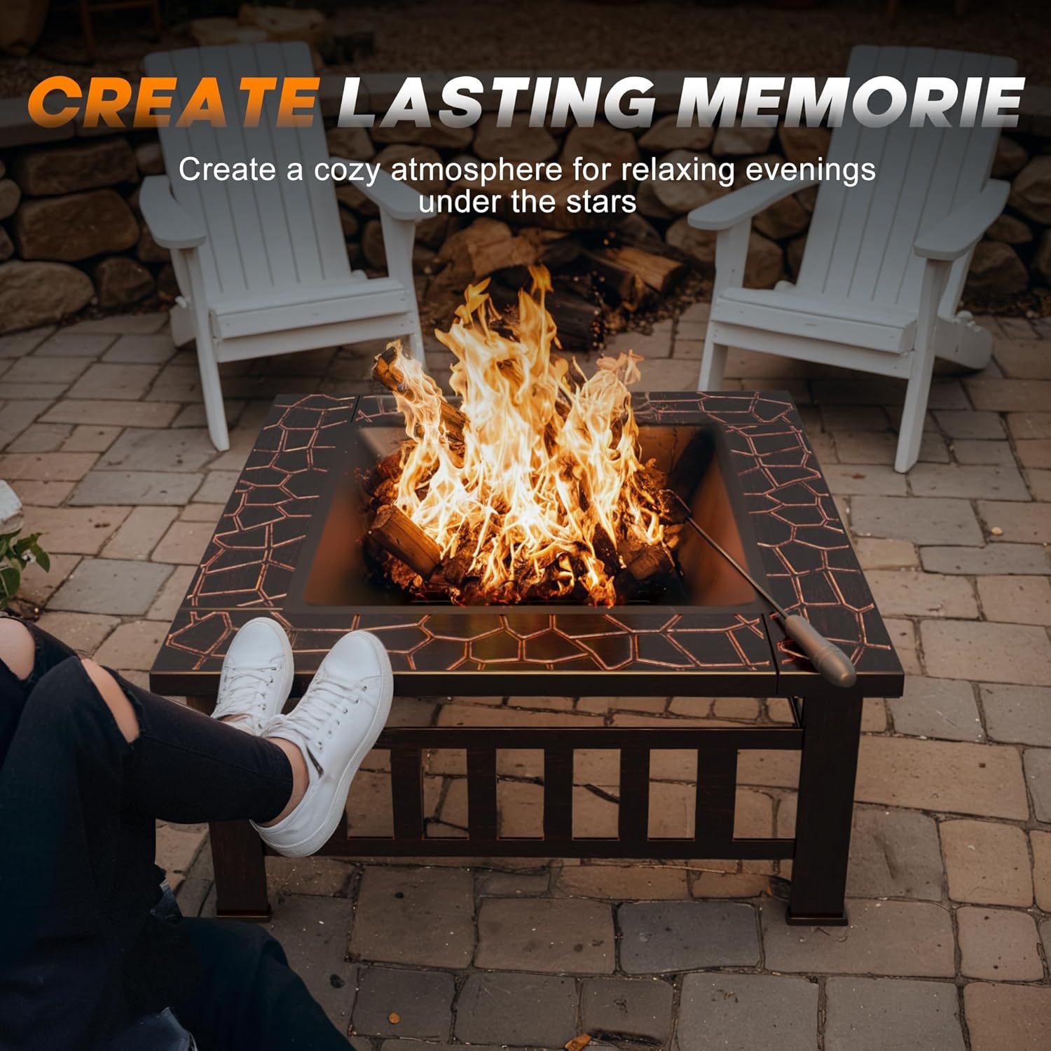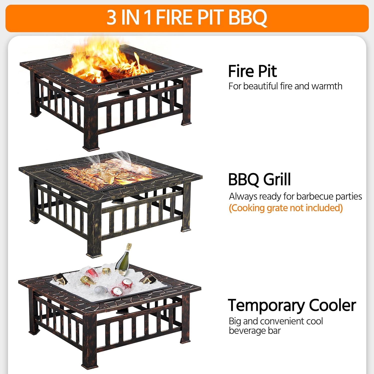 Yaheetech Multifunctional Fire Pit Table 32in Square Metal Firepit Stove Backyard Patio Garden Fireplace for Camping, Outdoor Heating, Bonfire and Picnic