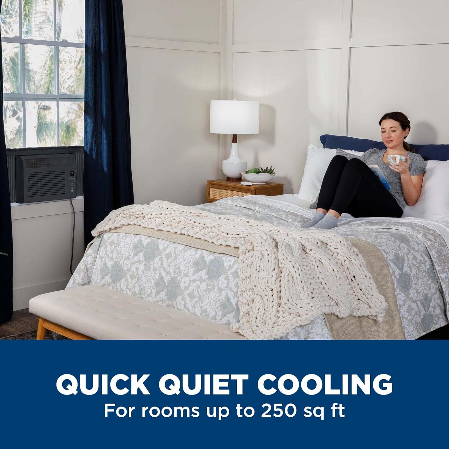 GE Window Air Conditioner Unit, 6,000 BTU for Small Rooms up to 250 sq ft. with Adjustable Fan and Cooling Settings, Perfect for Small Bedroom or Living Room, Easy Install Kit Included, White