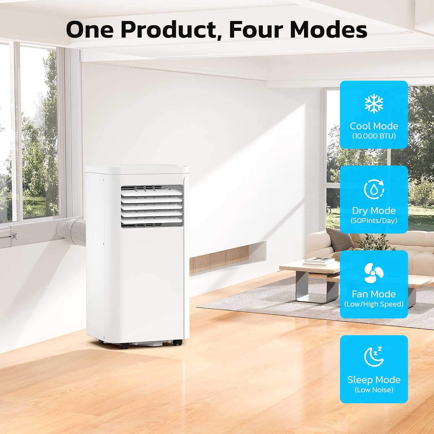 8,000 BTU Portable Air Conditioner - 3-in-1 AC Unit with Remote Control, Ultra-Quiet Cooling for Rooms up to 350 sq. ft., 24H Timer, Sleep Mode