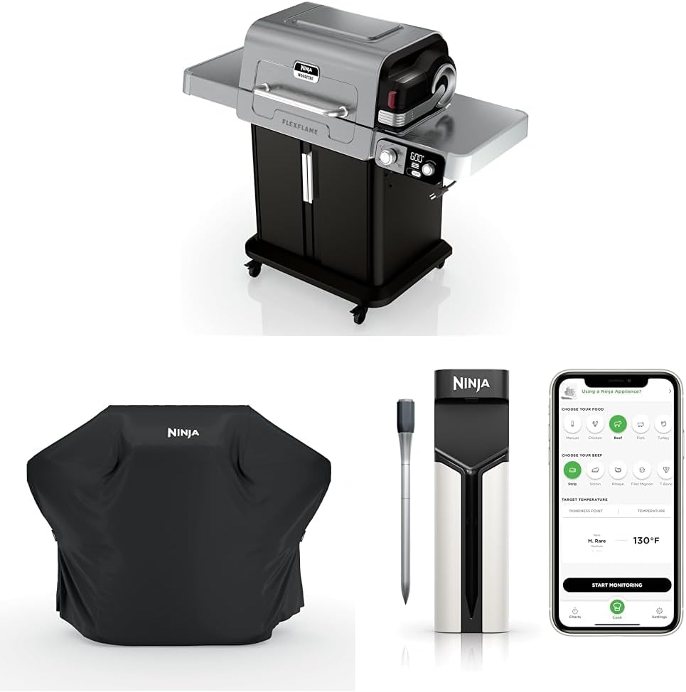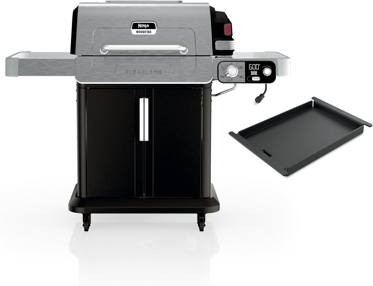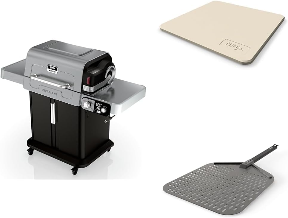 Ninja FlexFlame, Grill and Smoker, Electric and Propane Grill, Roaster, BBQ Grill, 5-in-1 Cooking System, 3 Burner, Digital Control, Outdoor Cooking, Griddle, Pizza Maker, Stainless Steel, PG301