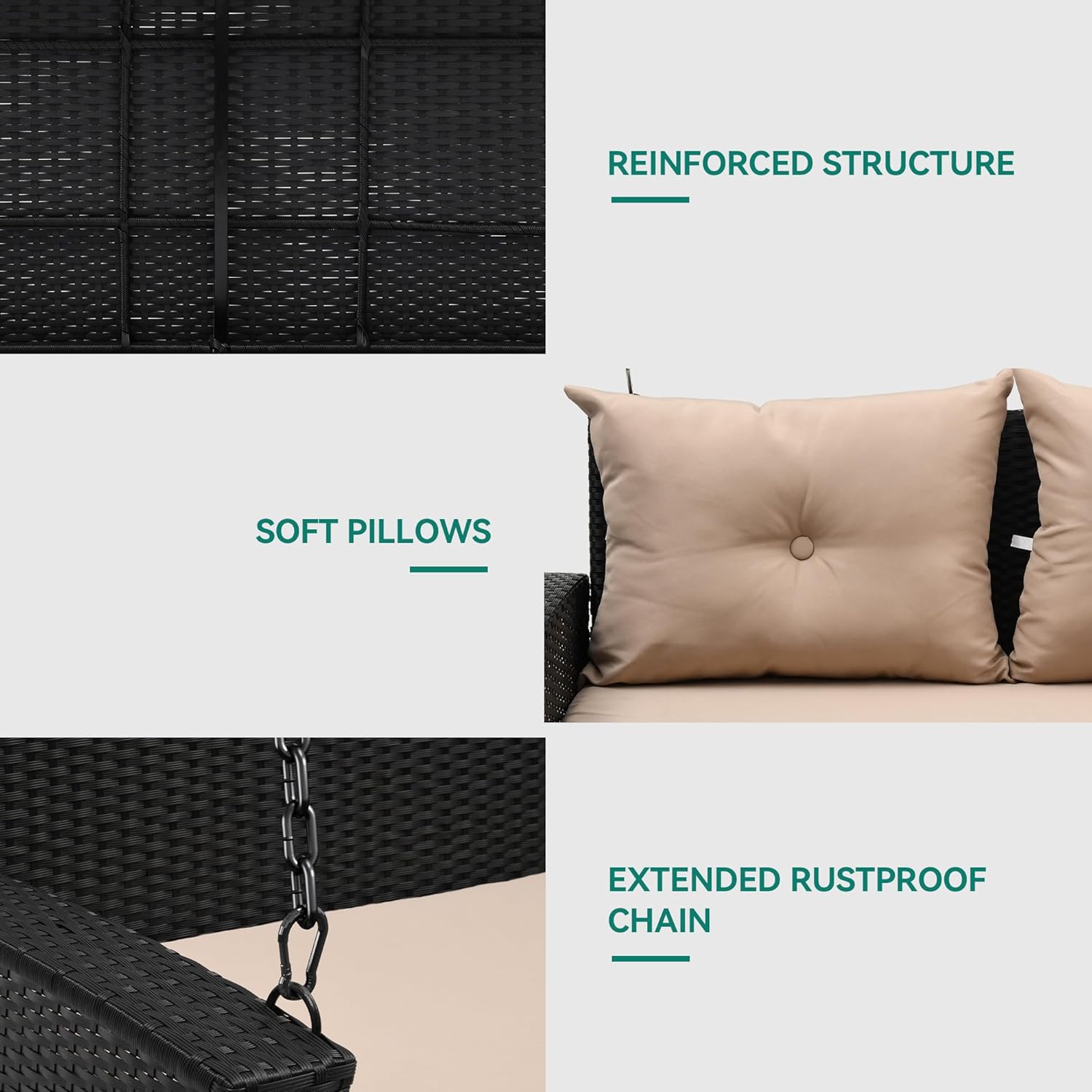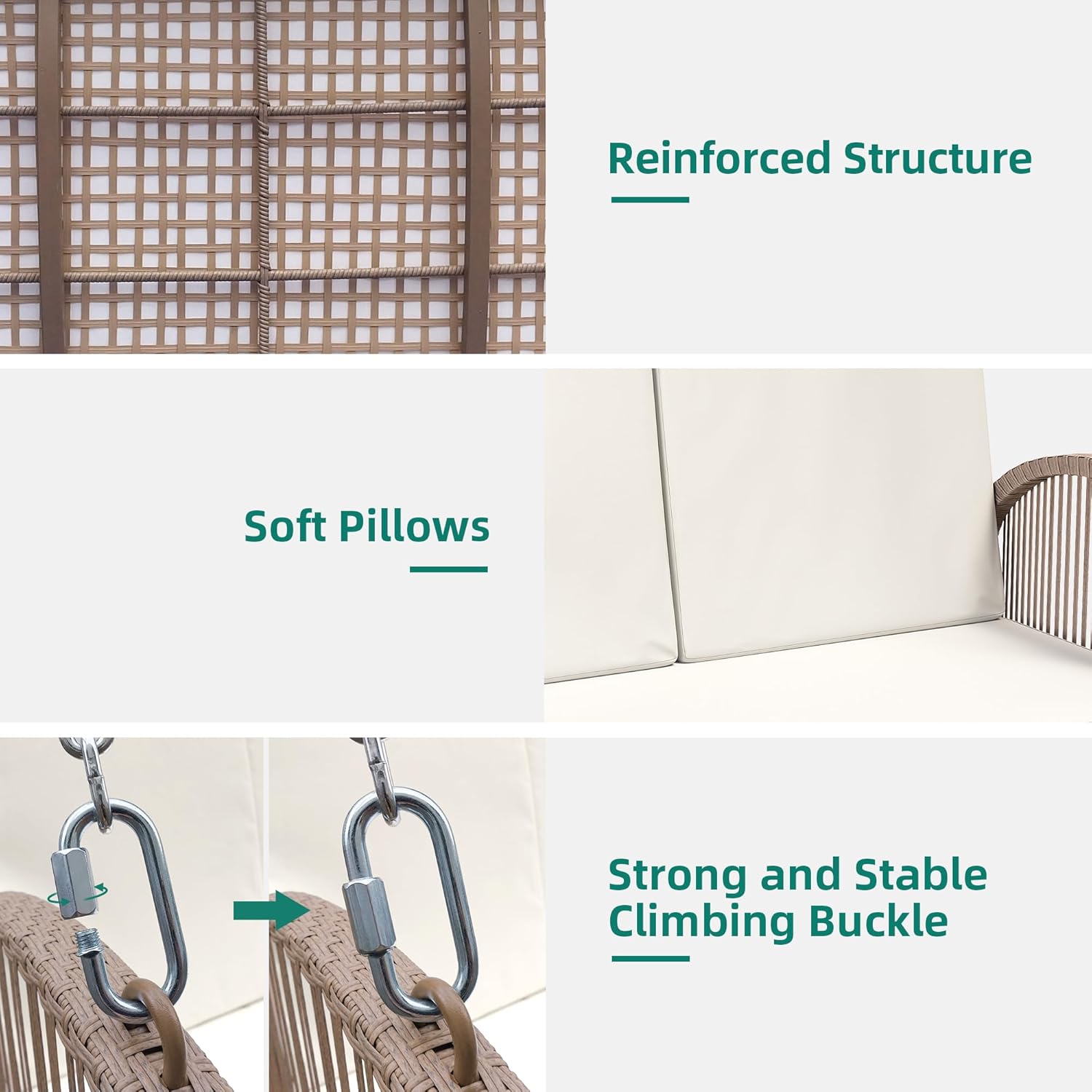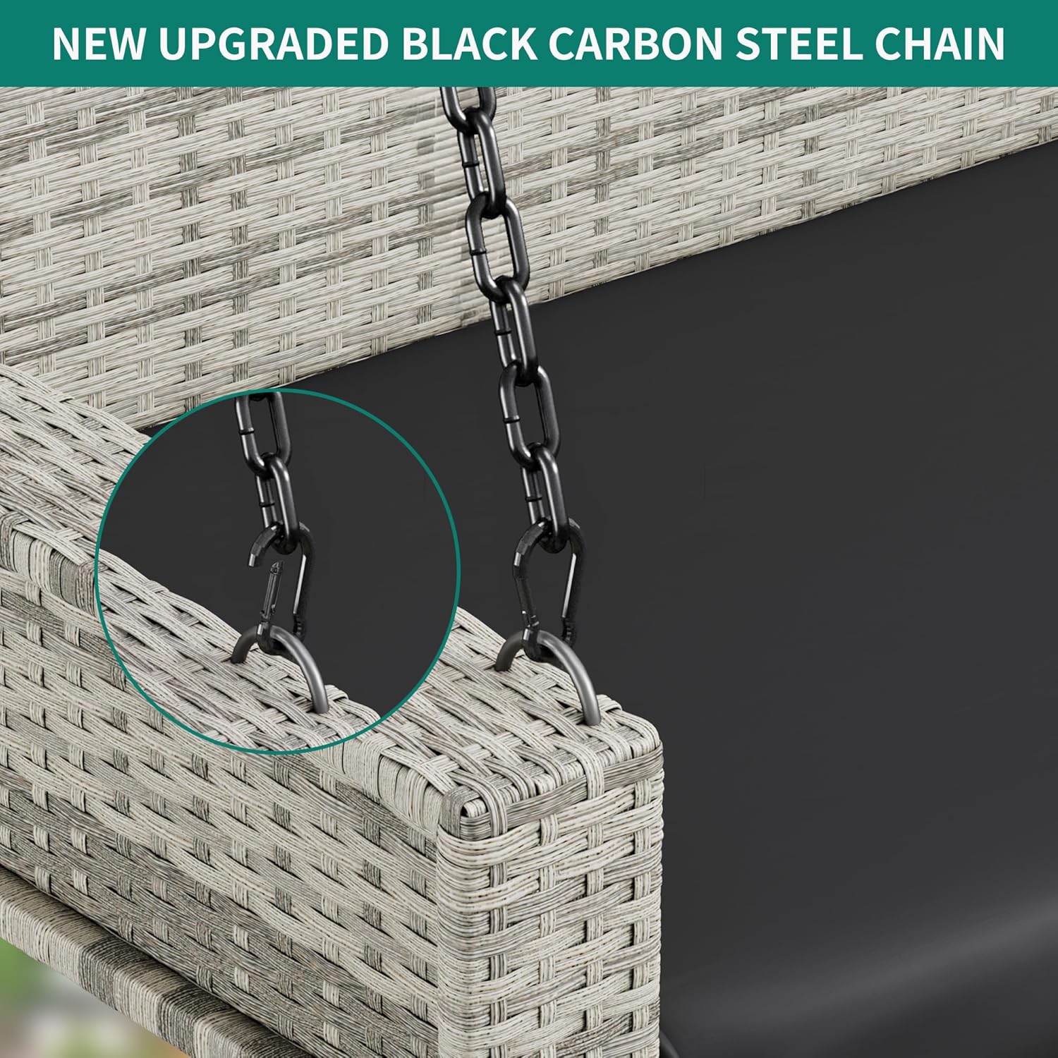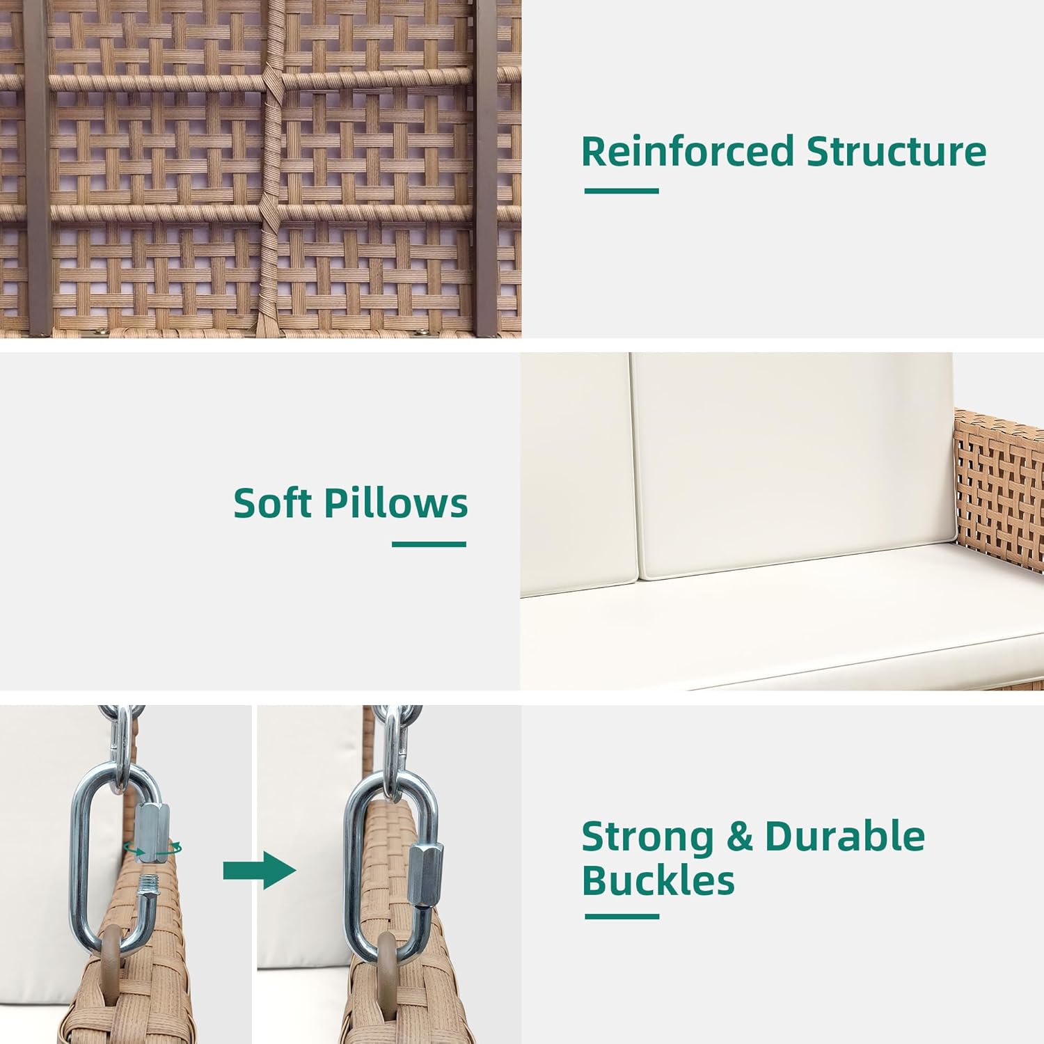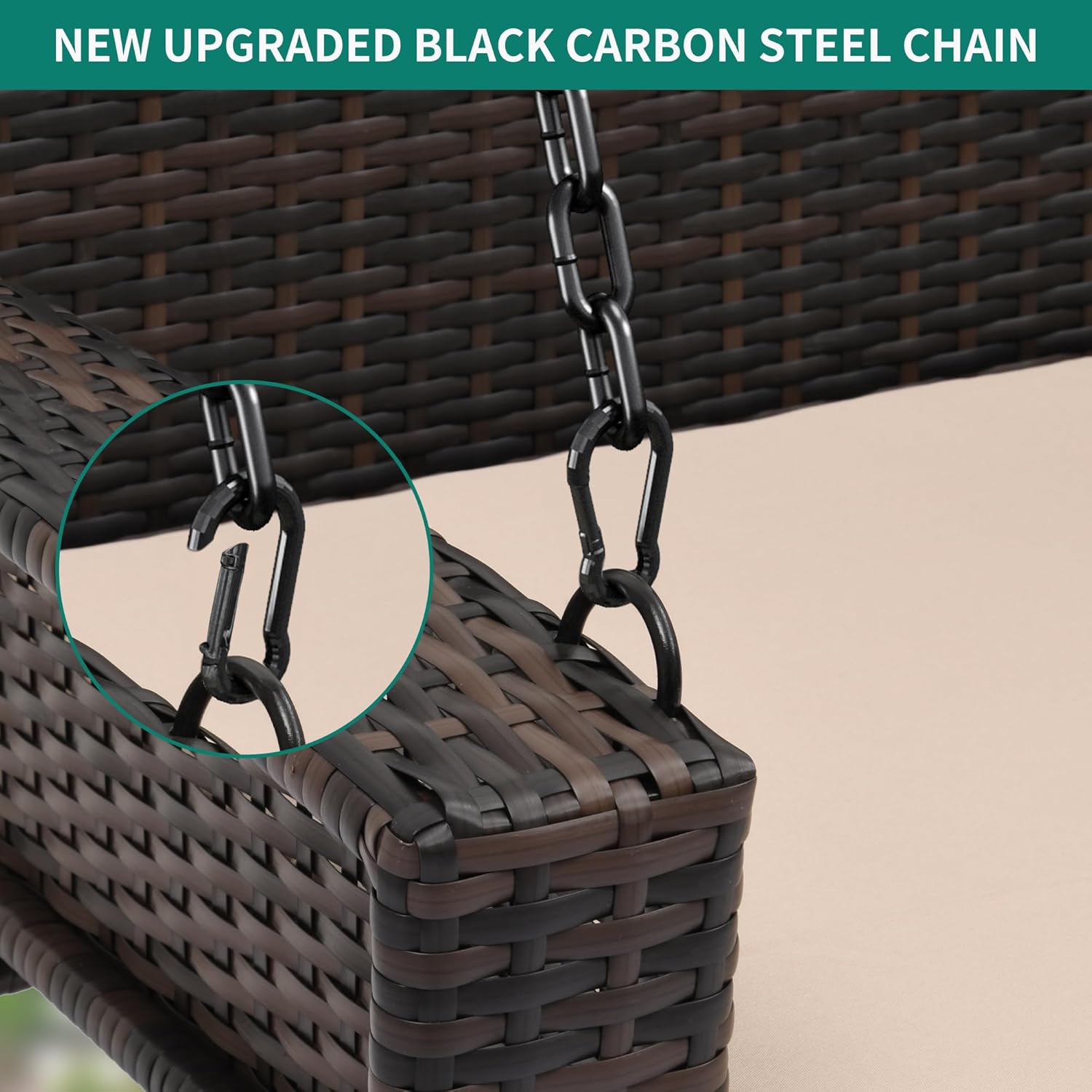 YITAHOME Hanging Porch Swing Chair Sits 3 People, Wicker Outdoor Swing Bench, Patio Lounge Chair, 1 Seating Cushion and 3 Back Cushions, w/Removable Covers, for Garden, Balcony, Backyard, Brown