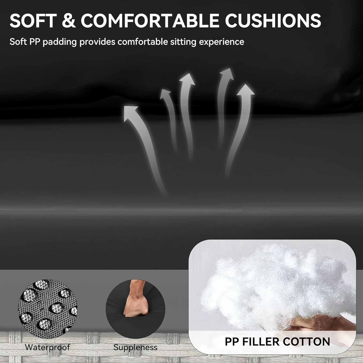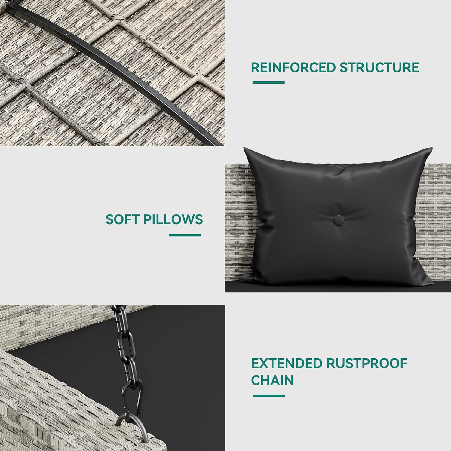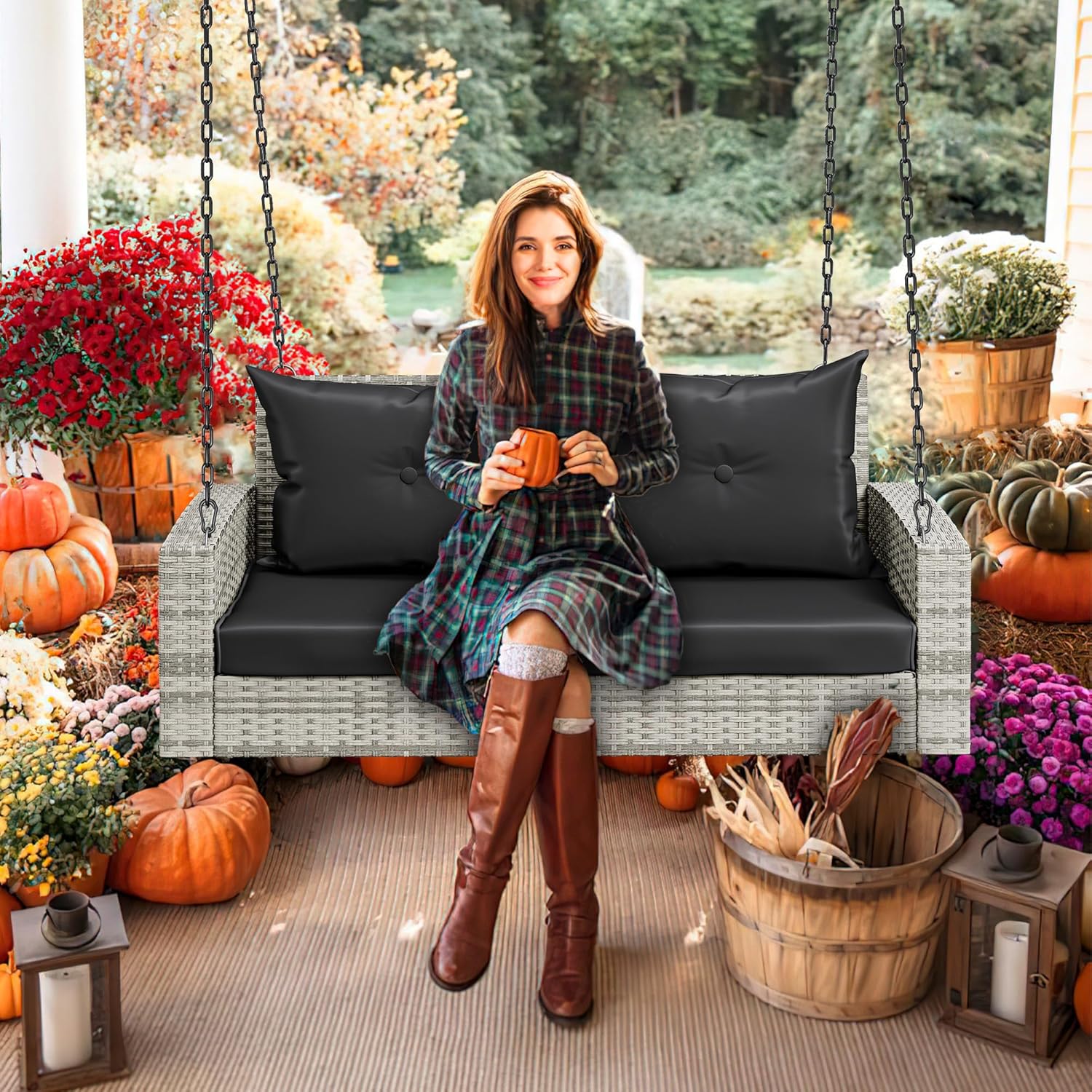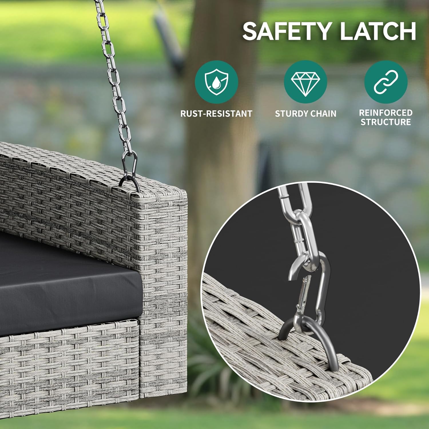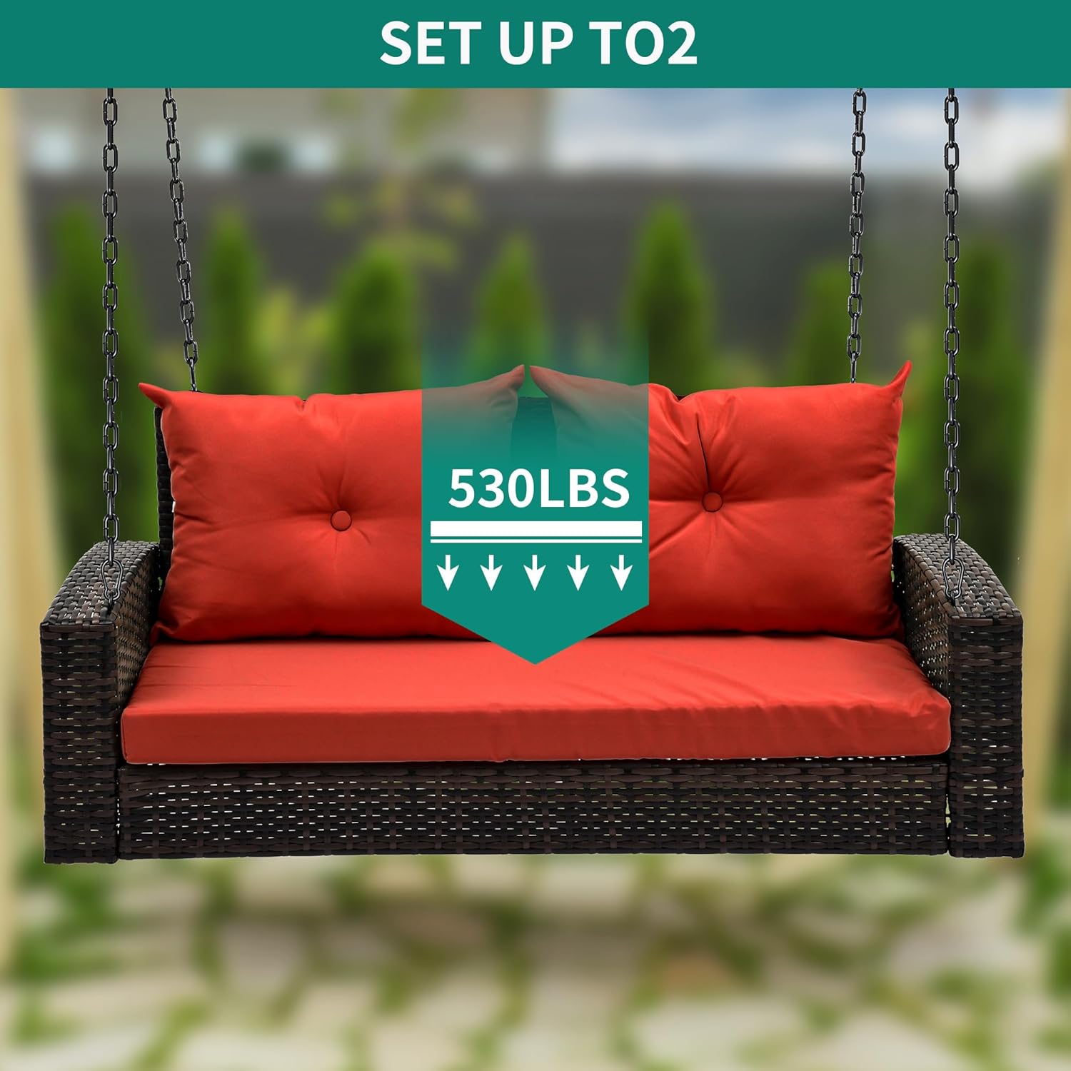 YITAHOME Hanging Porch Swing Chair Sits 3 People, Wicker Outdoor Swing Bench, Patio Lounge Chair, 1 Seating Cushion and 3 Back Cushions, w/Removable Covers, for Garden, Balcony, Backyard, Brown