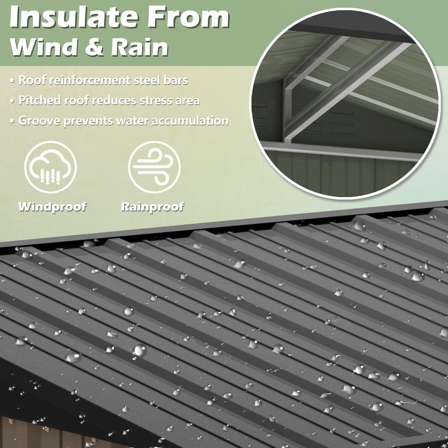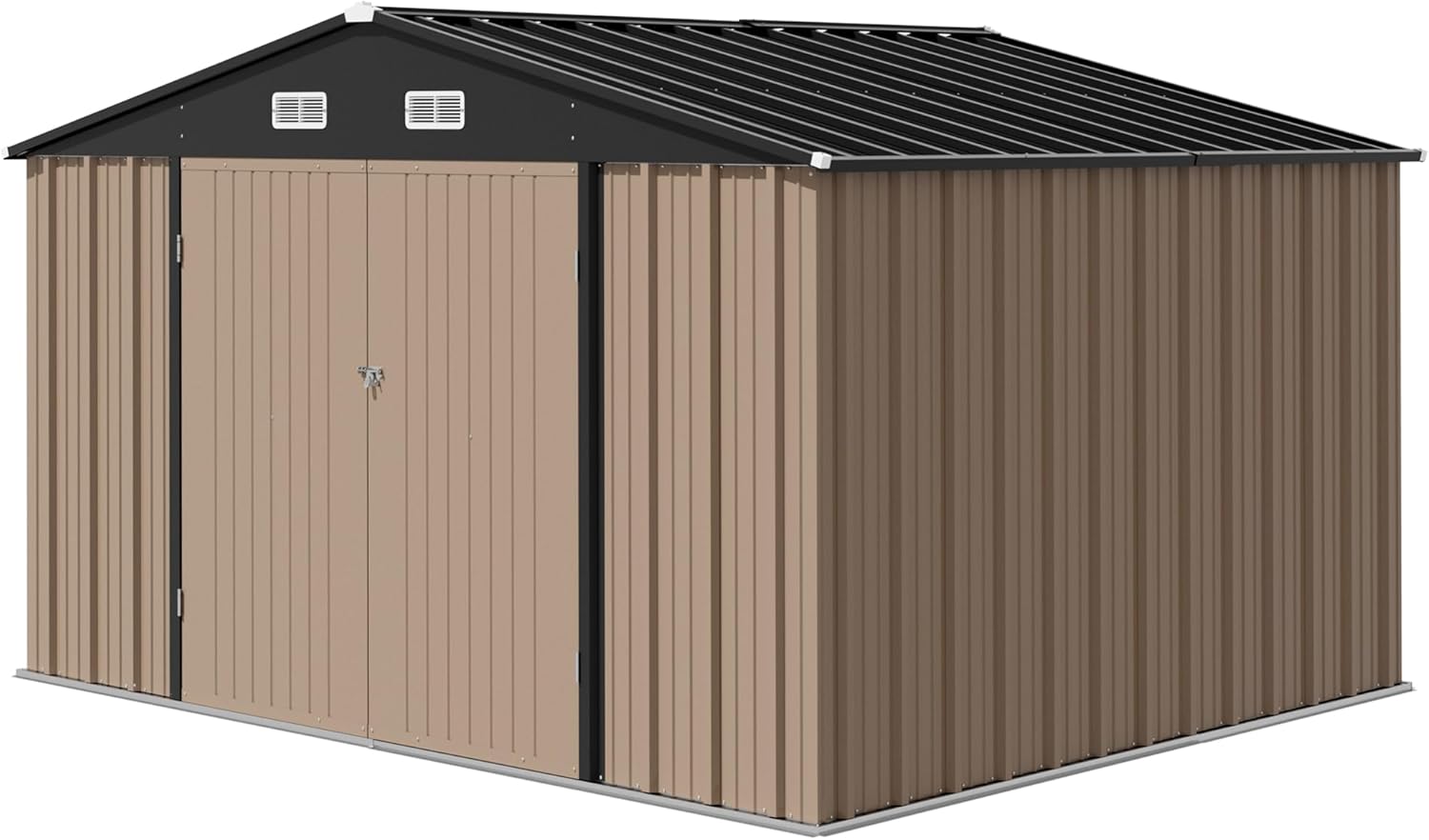 Sheds Outdoor Storage Garden Shed with Metal Frame Structure and Adjustable Shelves Large Capacity Storage Tool Cabinet Box for Backyard Garden Patio Lawn (Brown)