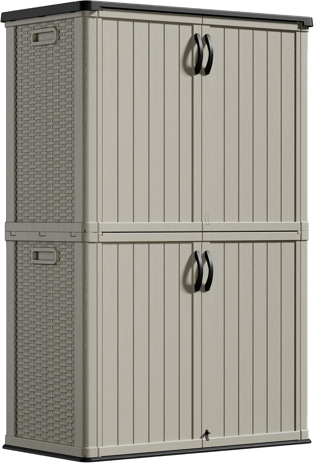 Amopatio 41 Cu Ft Horizontal Outdoor Storage Shed, Resin Trash Can Storage,Resin Shed for Garden Tools, Lawn Mowers, Garbage Cans, Patio Use