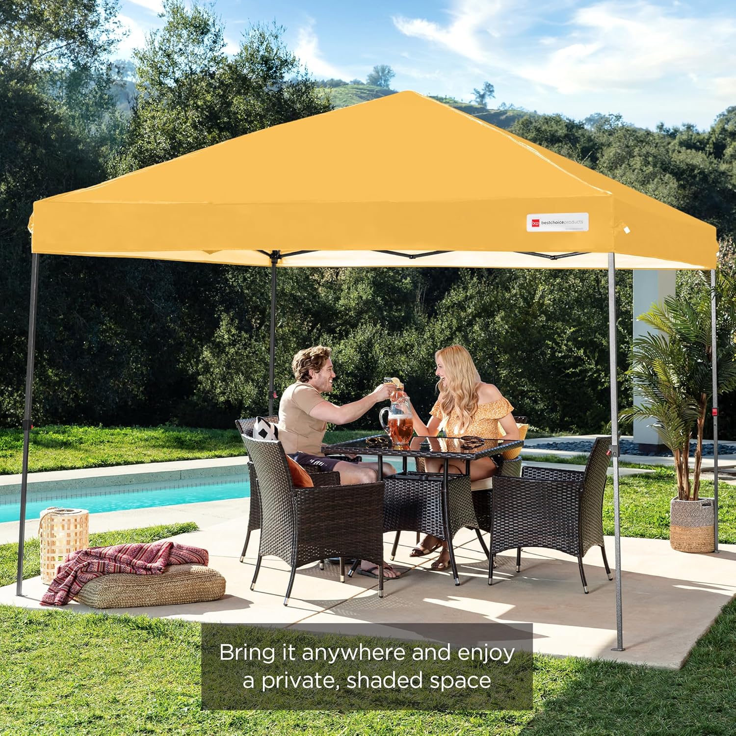 Best Choice Products 10x10ft 1-Person Setup Pop Up Canopy Tent Instant Portable Shelter w/ 1-Button Push Case 4 Weight Bags