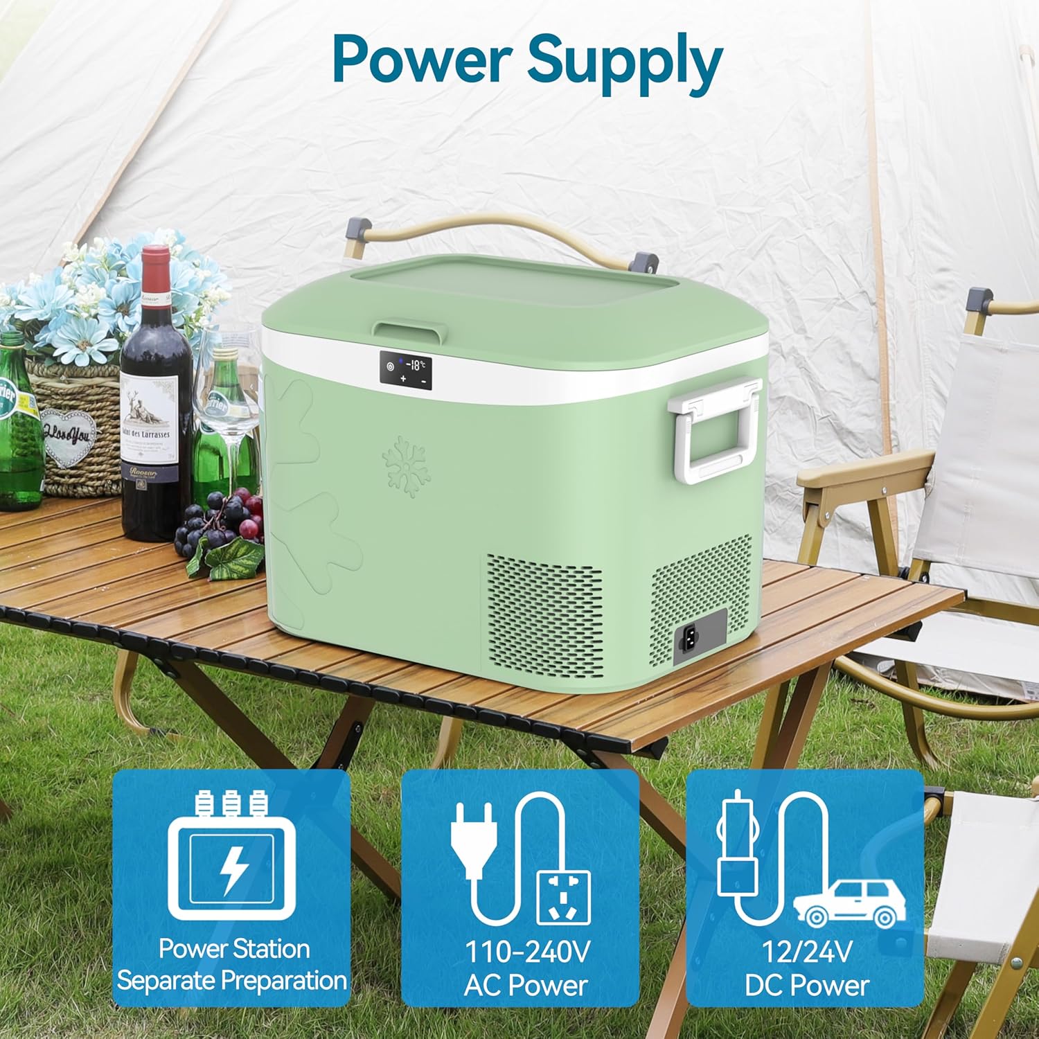Car Fridge Portable 12 Volt Refrigerator 23 Quart (22 Liter) Freezer Compressor Cooler 12V/24V DC 110~240 V AC for Outdoor, Camping, Travel, Home Use -18℃~+15℃ (Green)