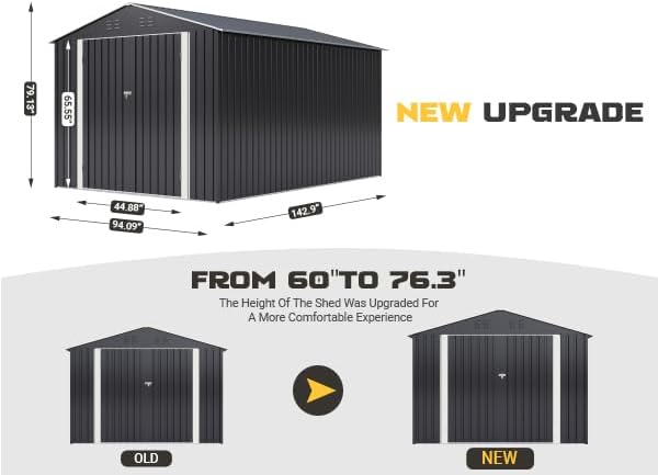 Polar Aurora 8 x 12 FT Outdoor Storage Shed, Metal Garden Shed with Updated Frame Structure, Tool Sheds for Backyard Garden Patio Lawn Black