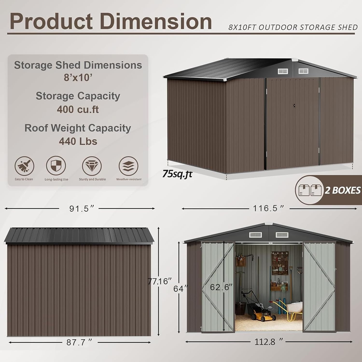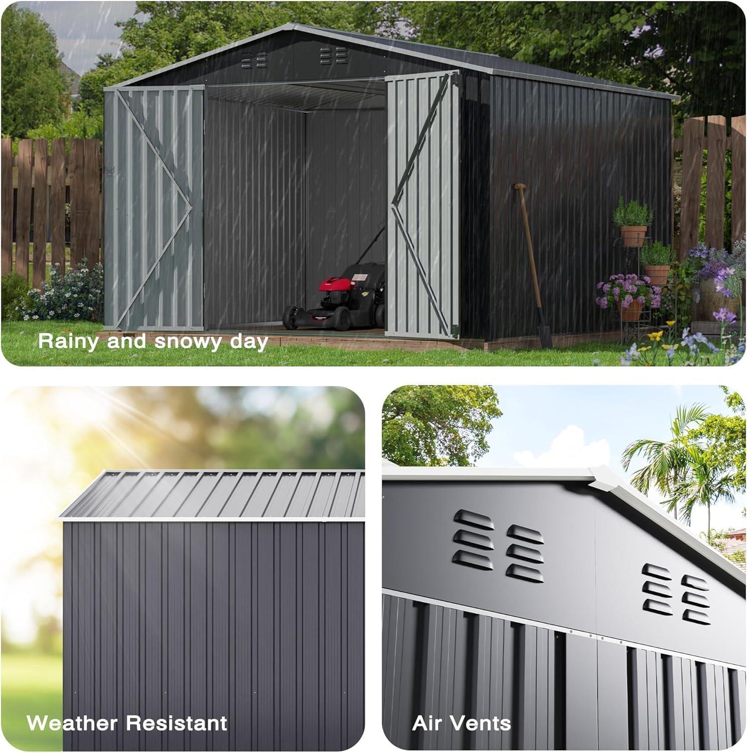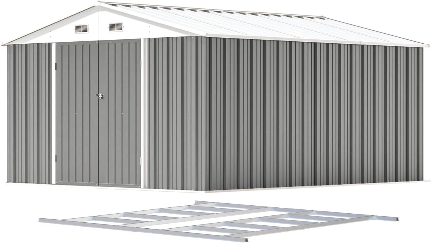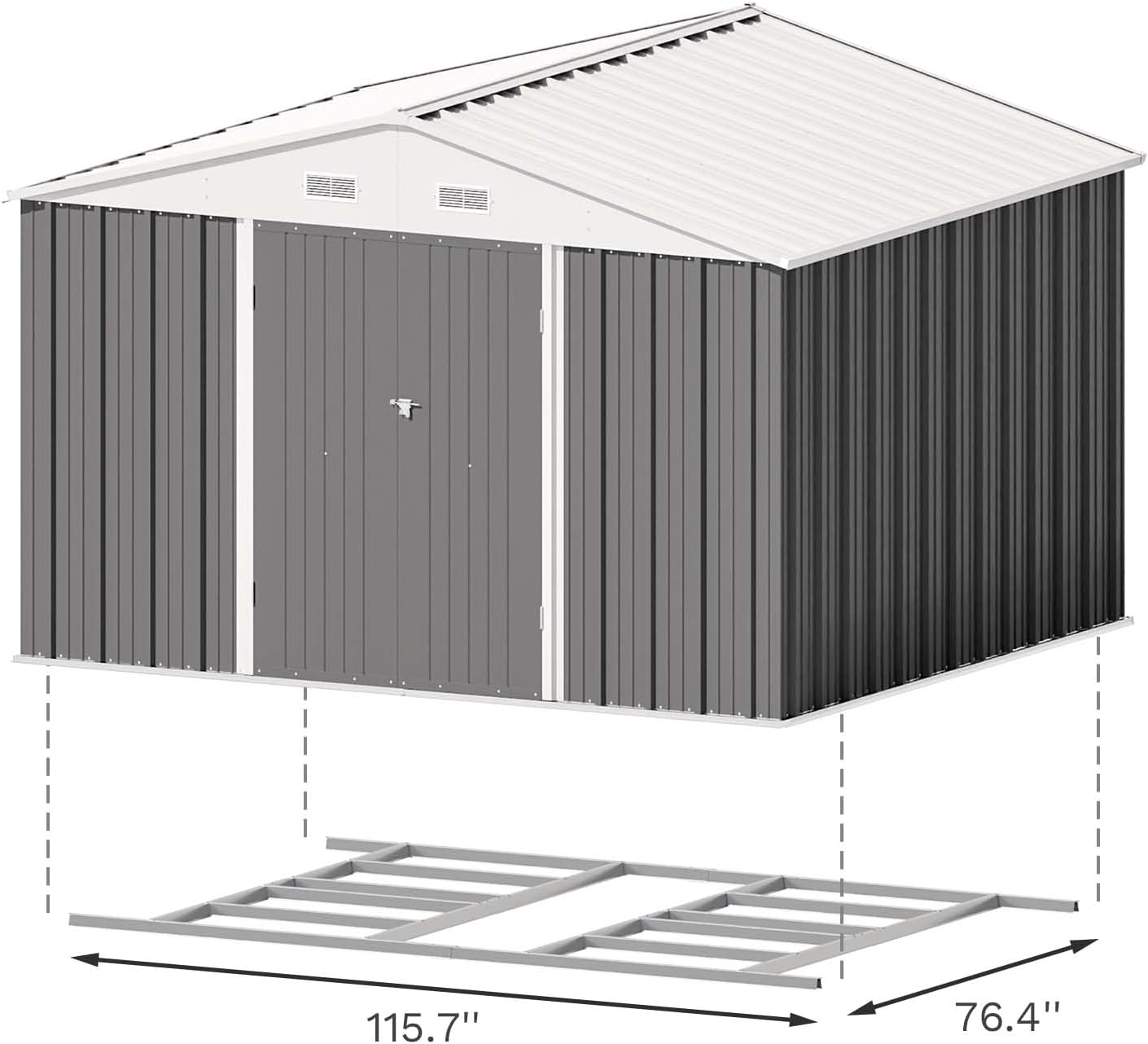 Aoxun 12x10 FT Shed Metal Outdoor Waterproof Storage Shed Steel Utility Garden Tool Shed with Door & Lock Outdoor Storage for Garden Patio Lawn Poolside, Brown