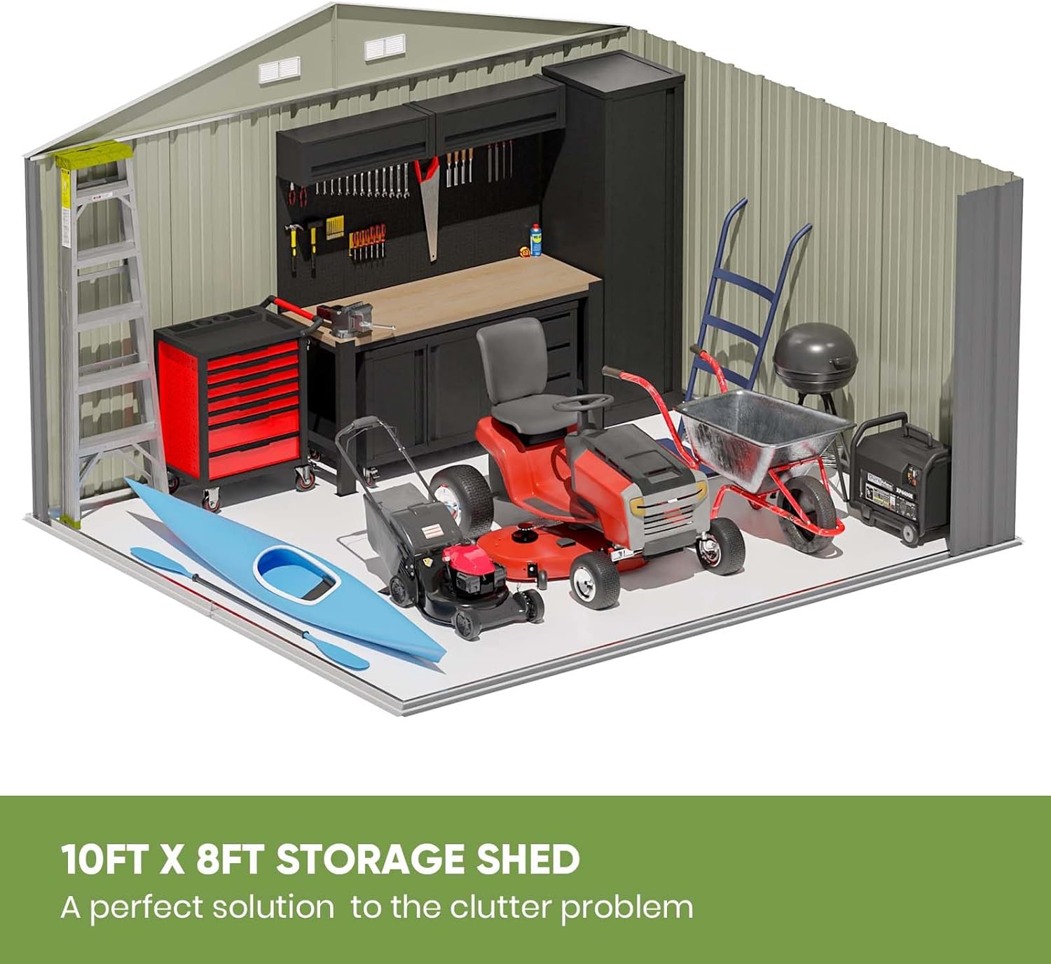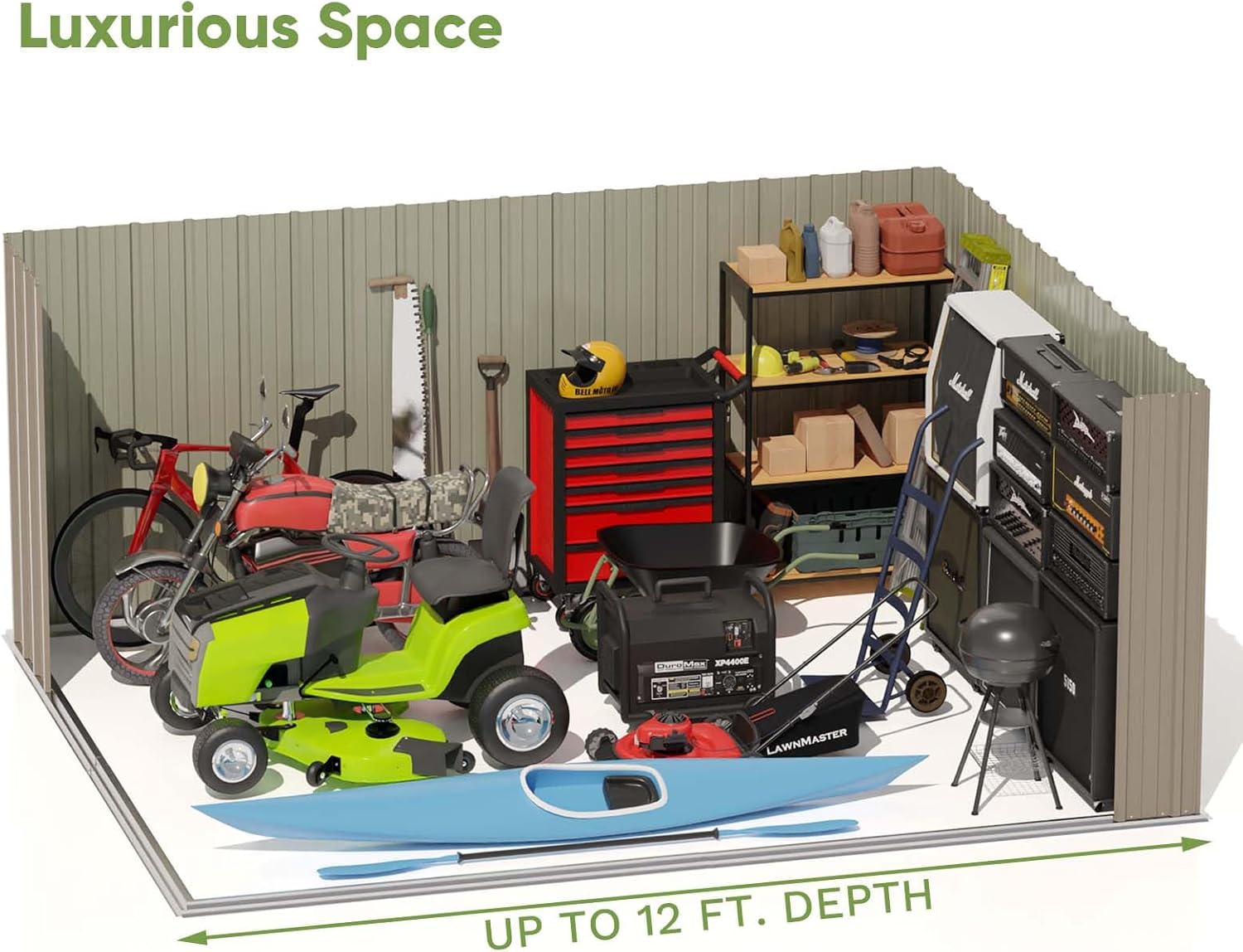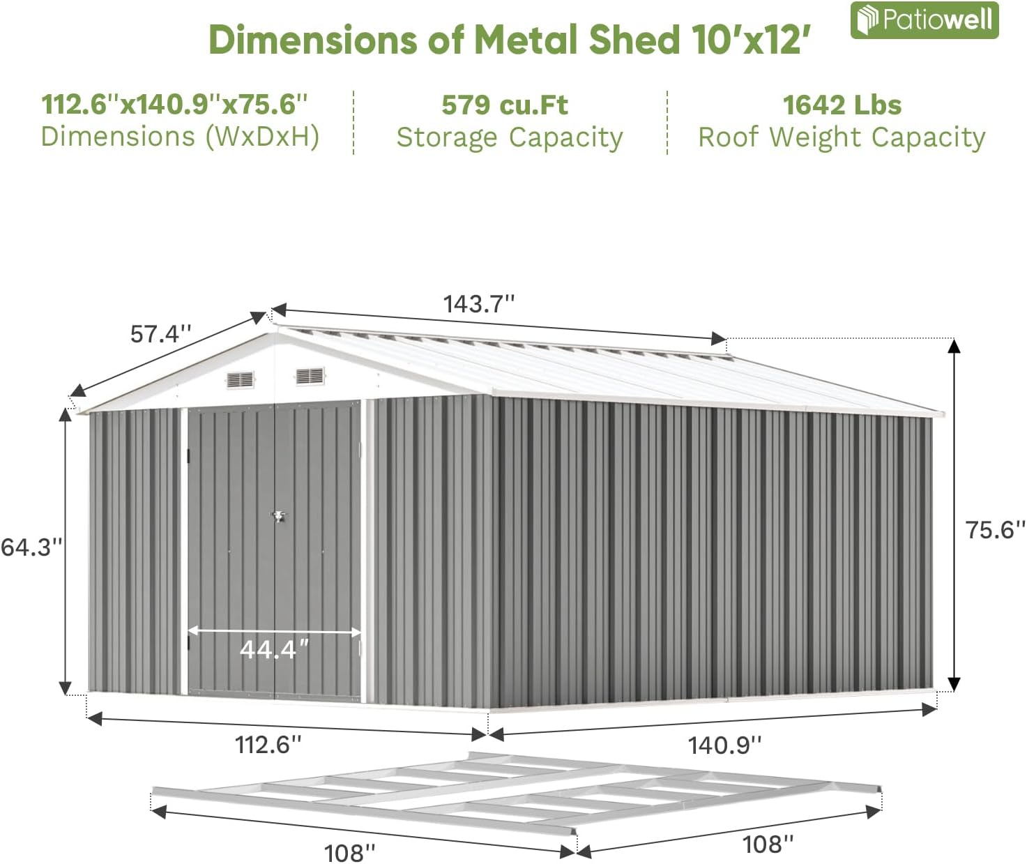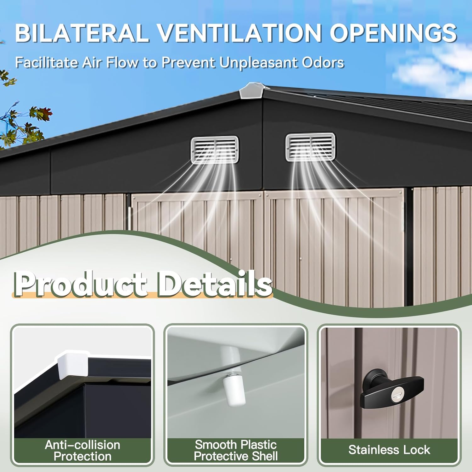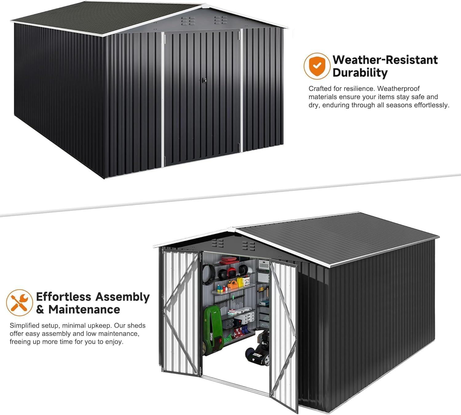 Aoxun 12x10 FT Shed Metal Outdoor Waterproof Storage Shed Steel Utility Garden Tool Shed with Door & Lock Outdoor Storage for Garden Patio Lawn Poolside, Brown