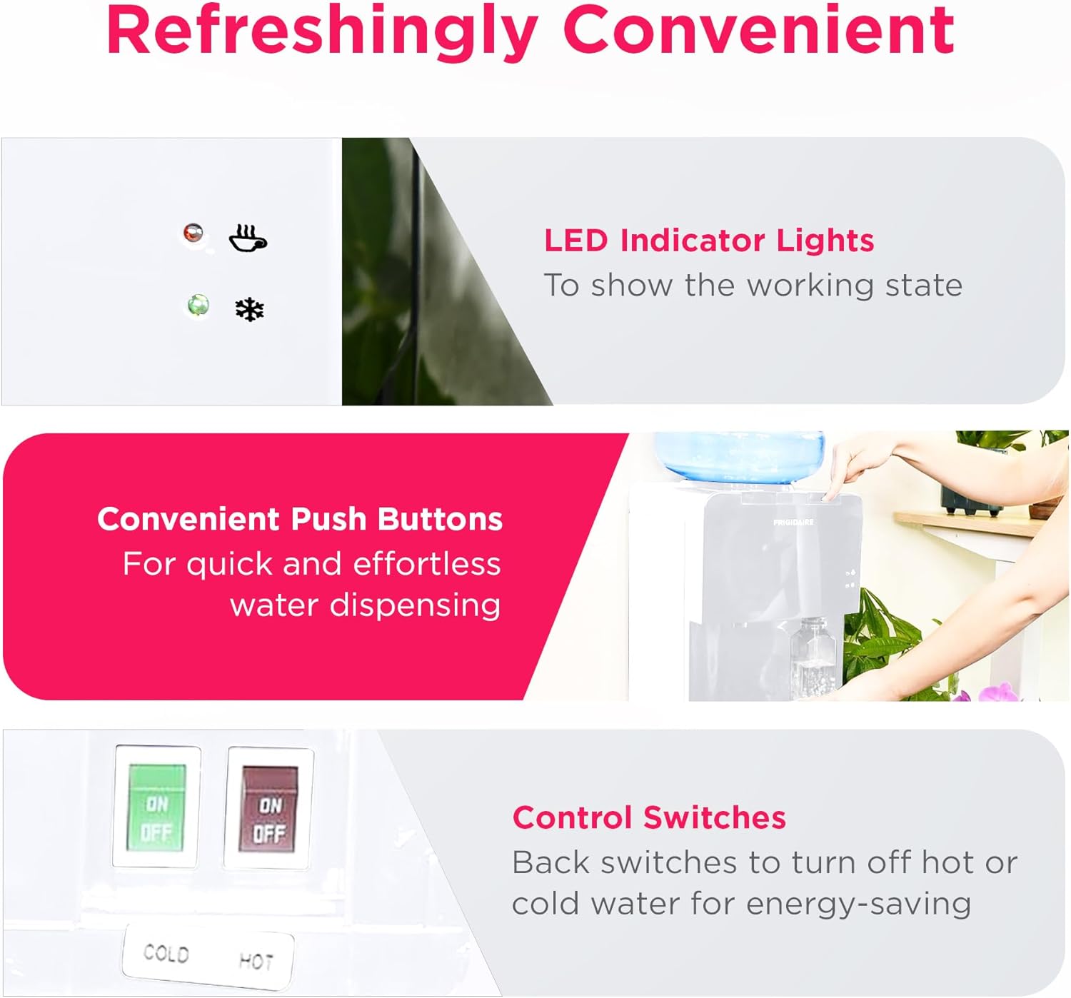 Frigidaire EFWC498 - Top Loading Cooler Dispenser -Hot & Cold Water - Child Safety Lock - Innovative Slim & Sleek Design, Holds 3 or 5 Gallon Bottles - Black