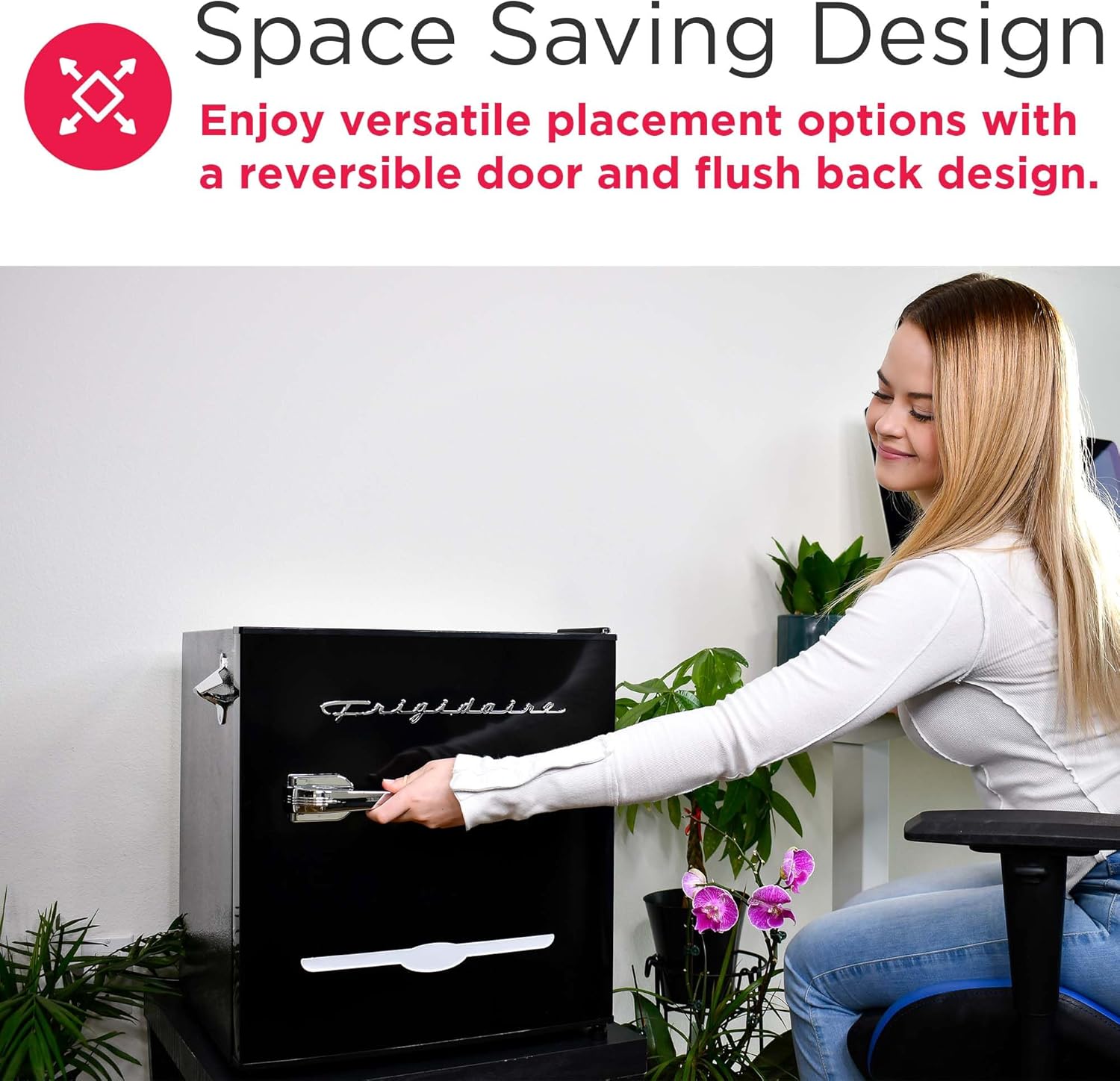 Frigidaire EFR176 Retro Compact Fridge with Chiller Mini Refrigerator with Built-in Bottle Opener for Office, Bedroom, Dorm Room or Cabin, 1.6 cu ft 16" D x 18" W x 18.5" H, Moonlight