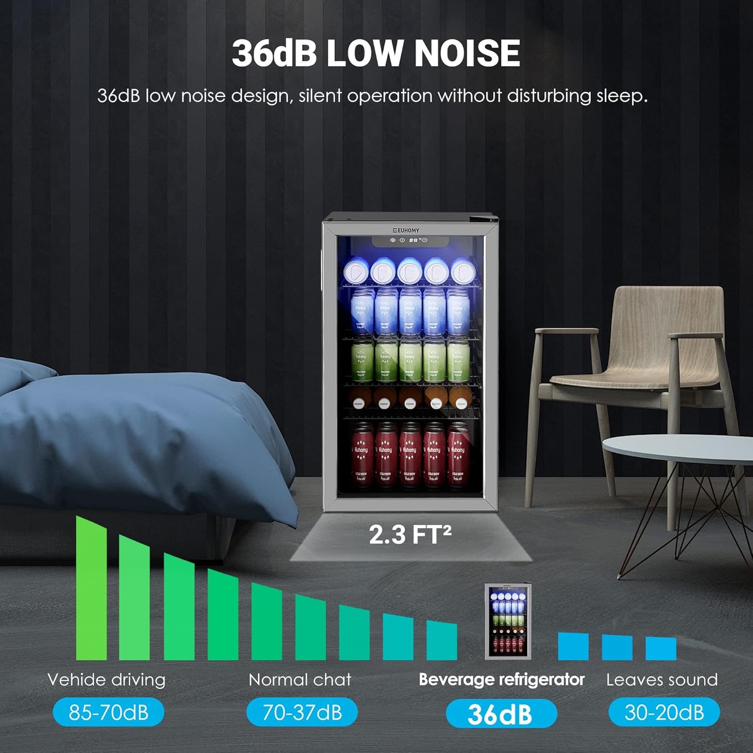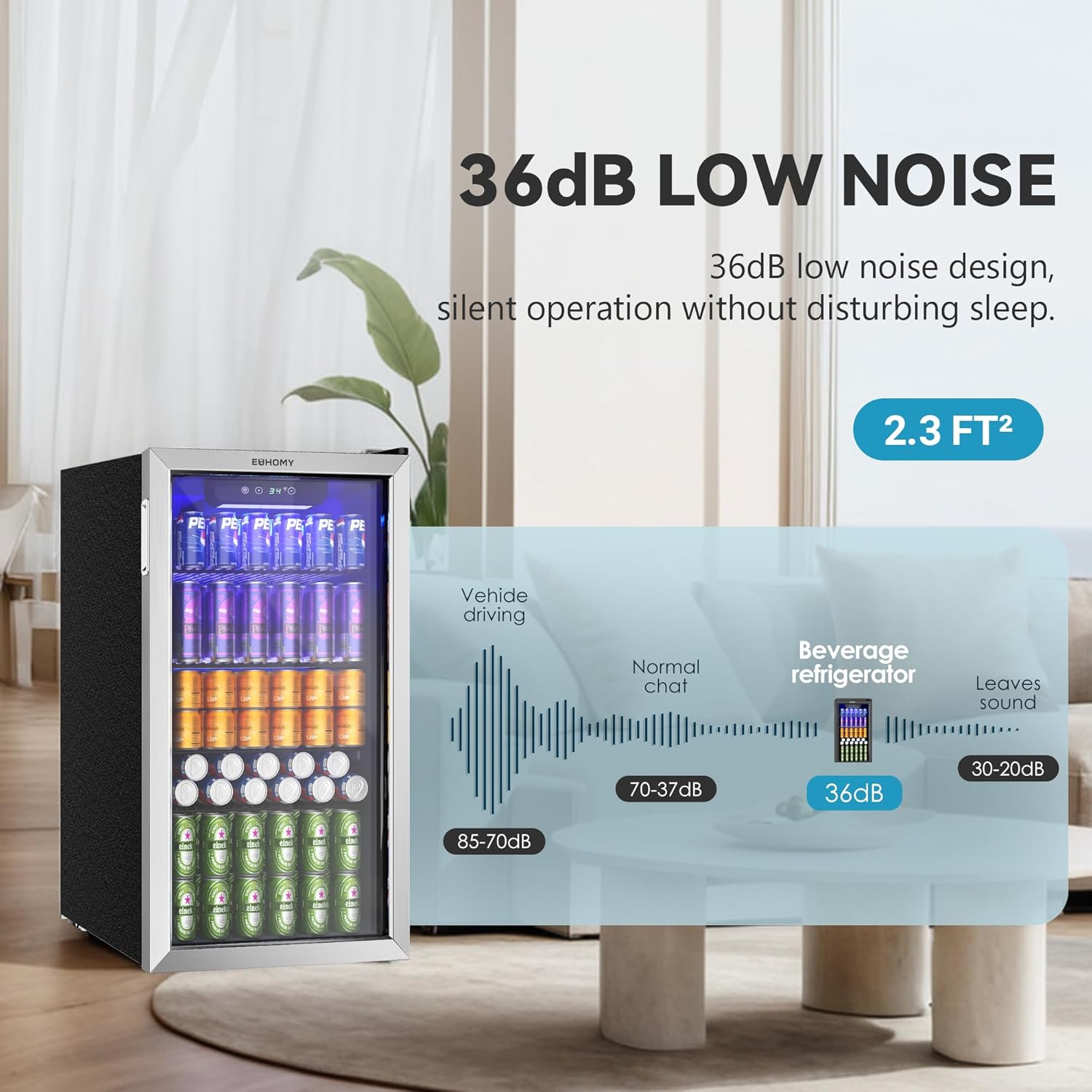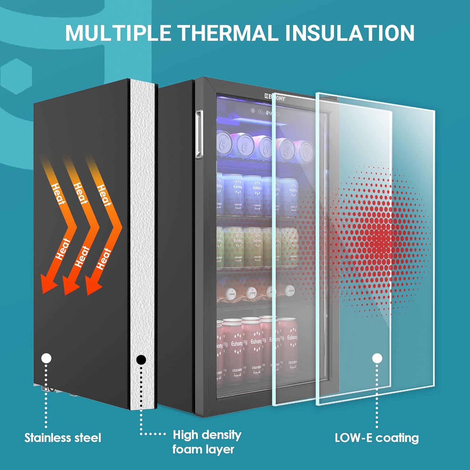 EUHOMY Beverage Refrigerator Cooler, 130 Can Mini Fridge with Glass Door for Soda Beer or Wine, Beverage Cooler for Home, Office, Bar with Adjustable Removable Shelves, Silver