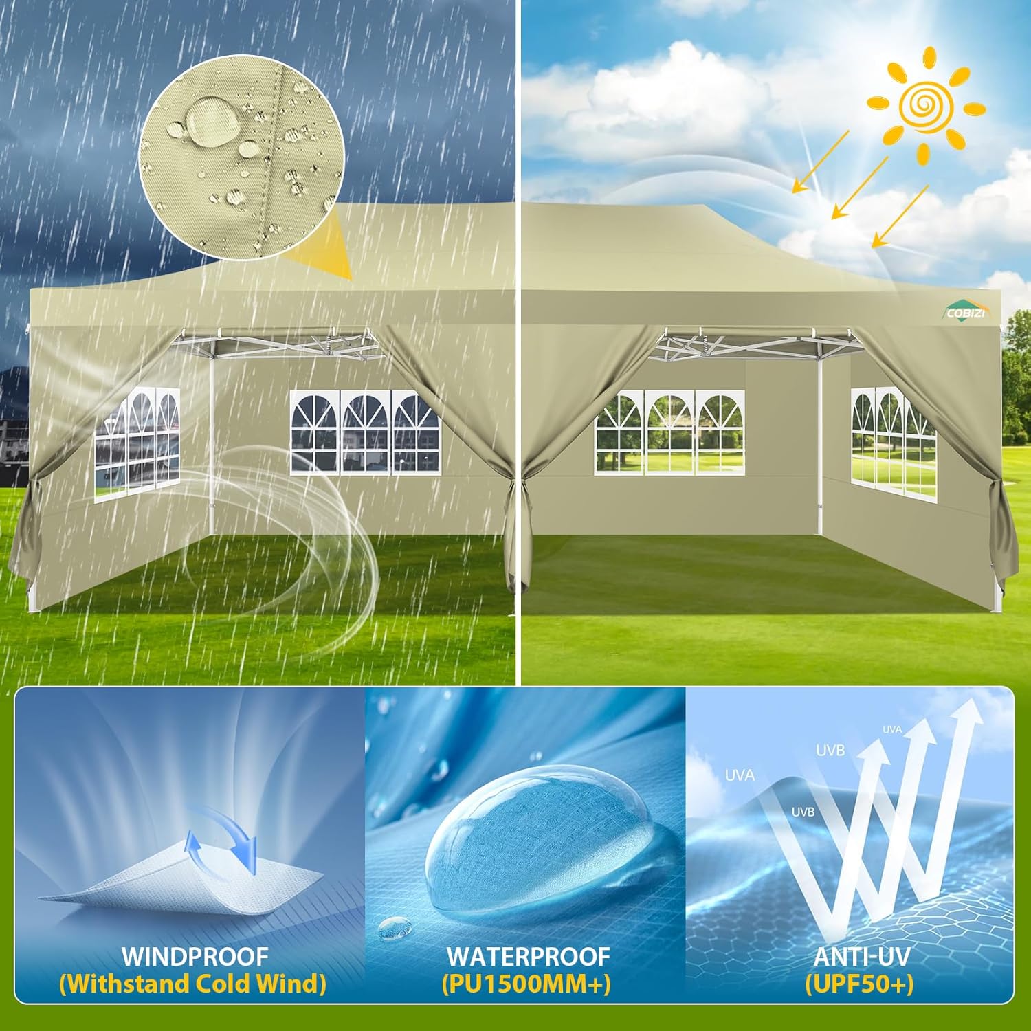 COBIZI 10x20 Heavy Duty Pop up Canopy Tent with 6 sidewalls Easy Up Commercial Outdoor Canopy Wedding Party Tents for Parties All Season Wind & Waterproof Gazebo with Roller Bag,Black(Frame Thickened)