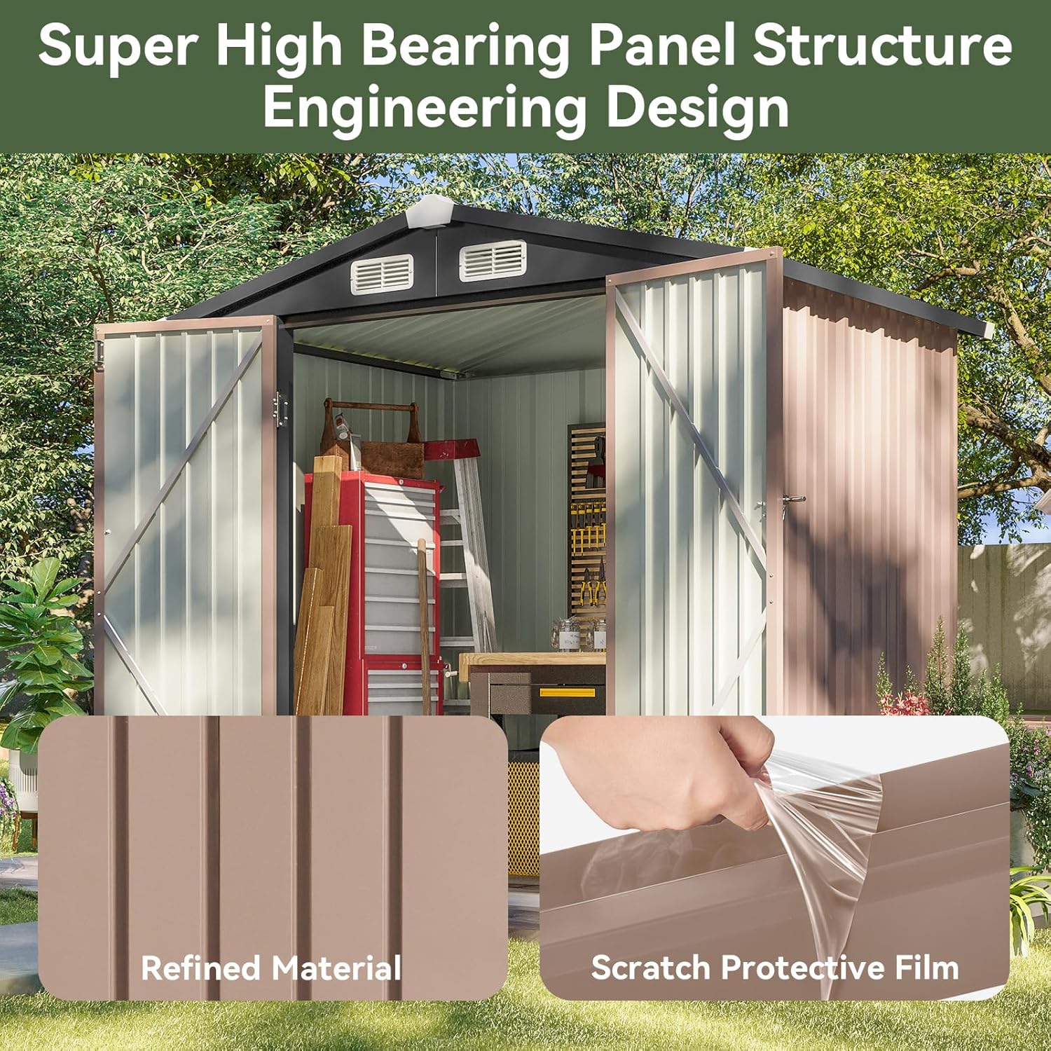 Aoxun 6.2x4 FT Shed Outdoor Storage Shed Metal Garden Shed with Lockable Doors & Slooping Roof Tool Shed Bike Shed for Backyard, Patio, Poolside (Brown)