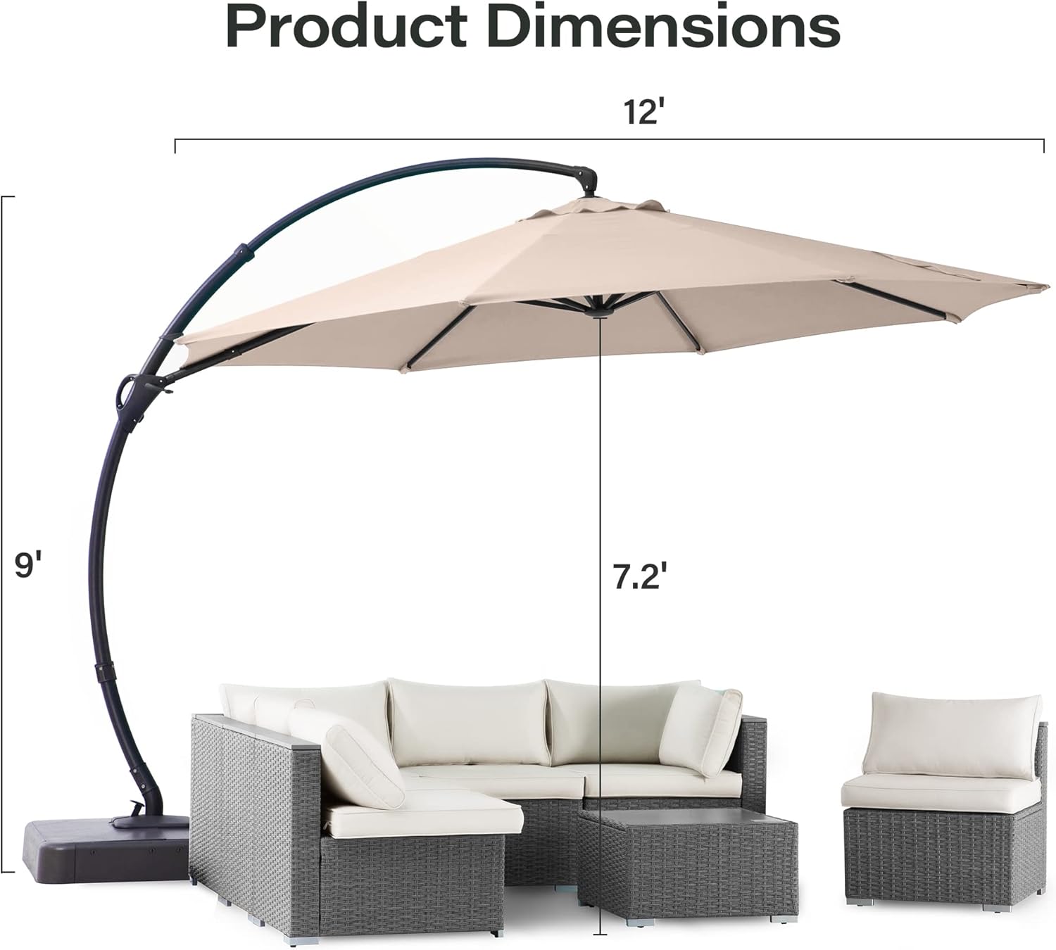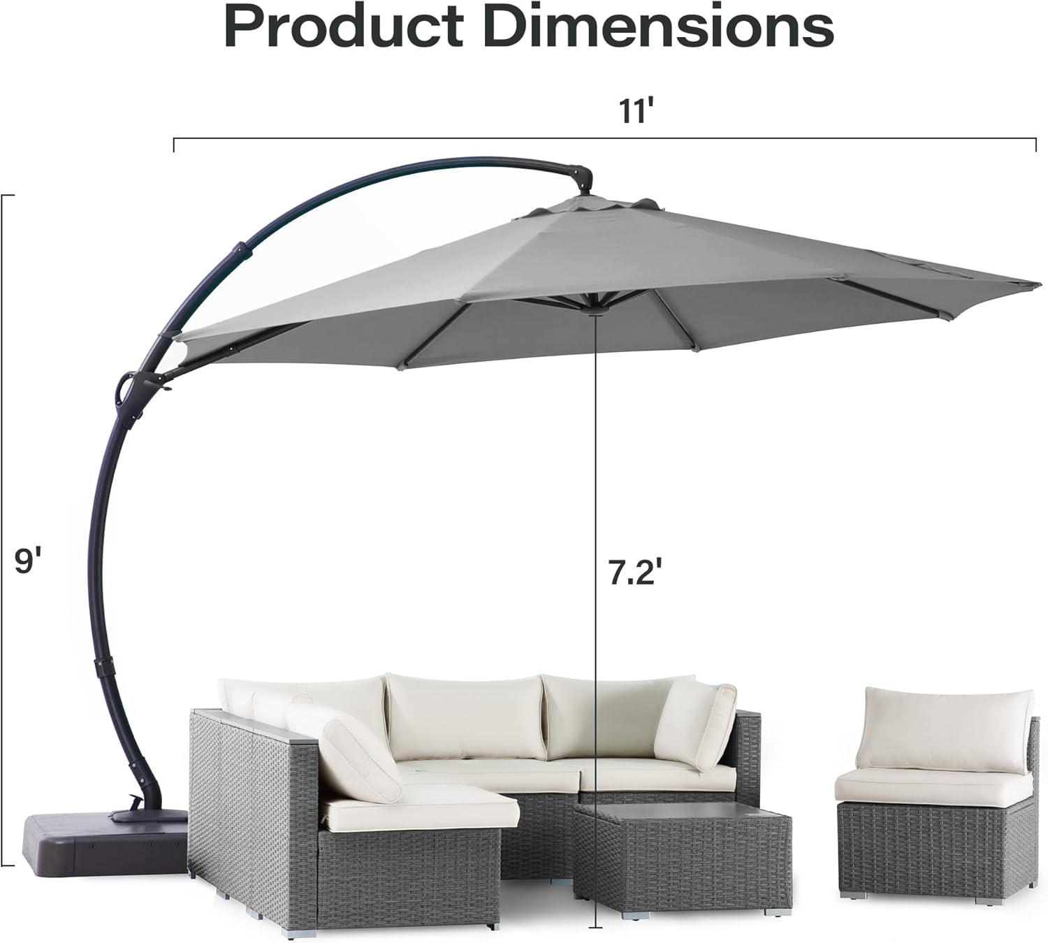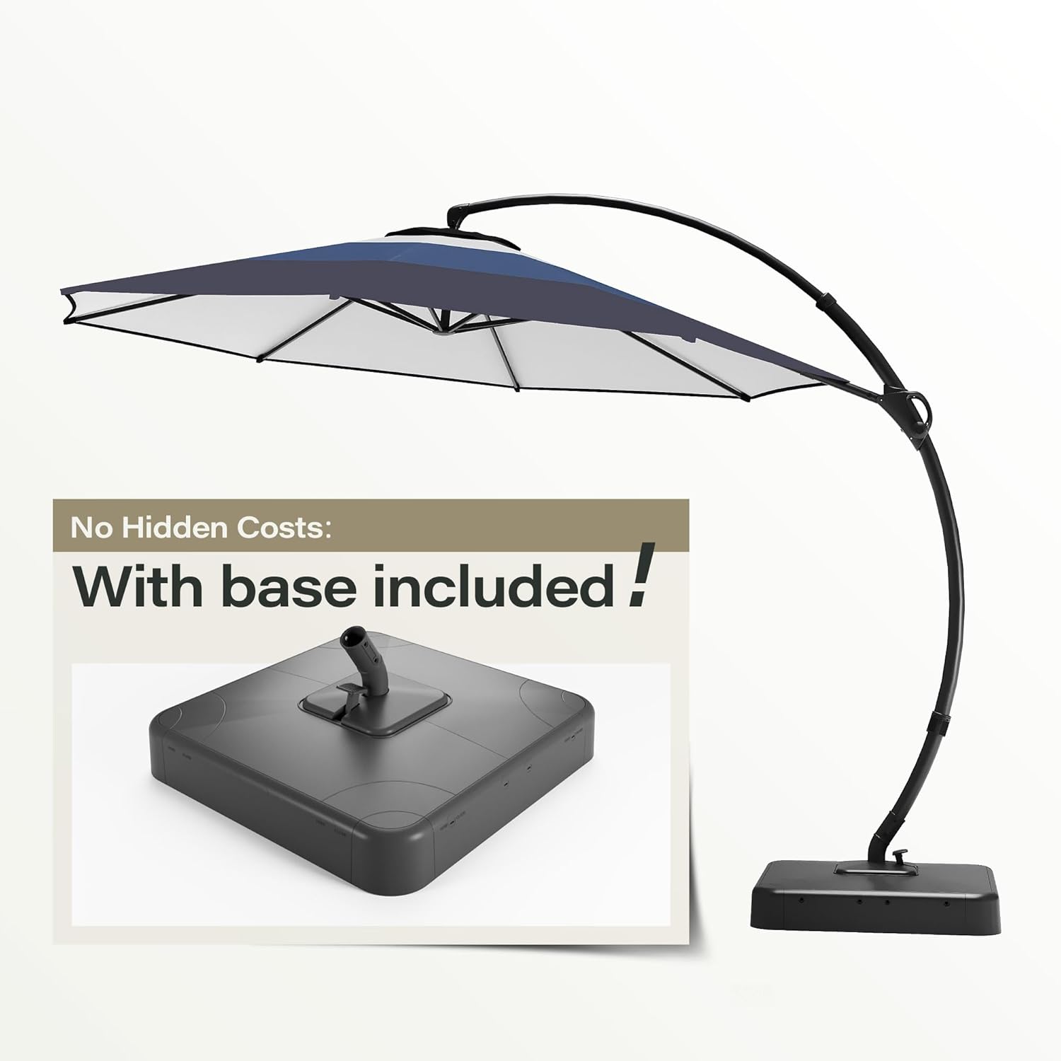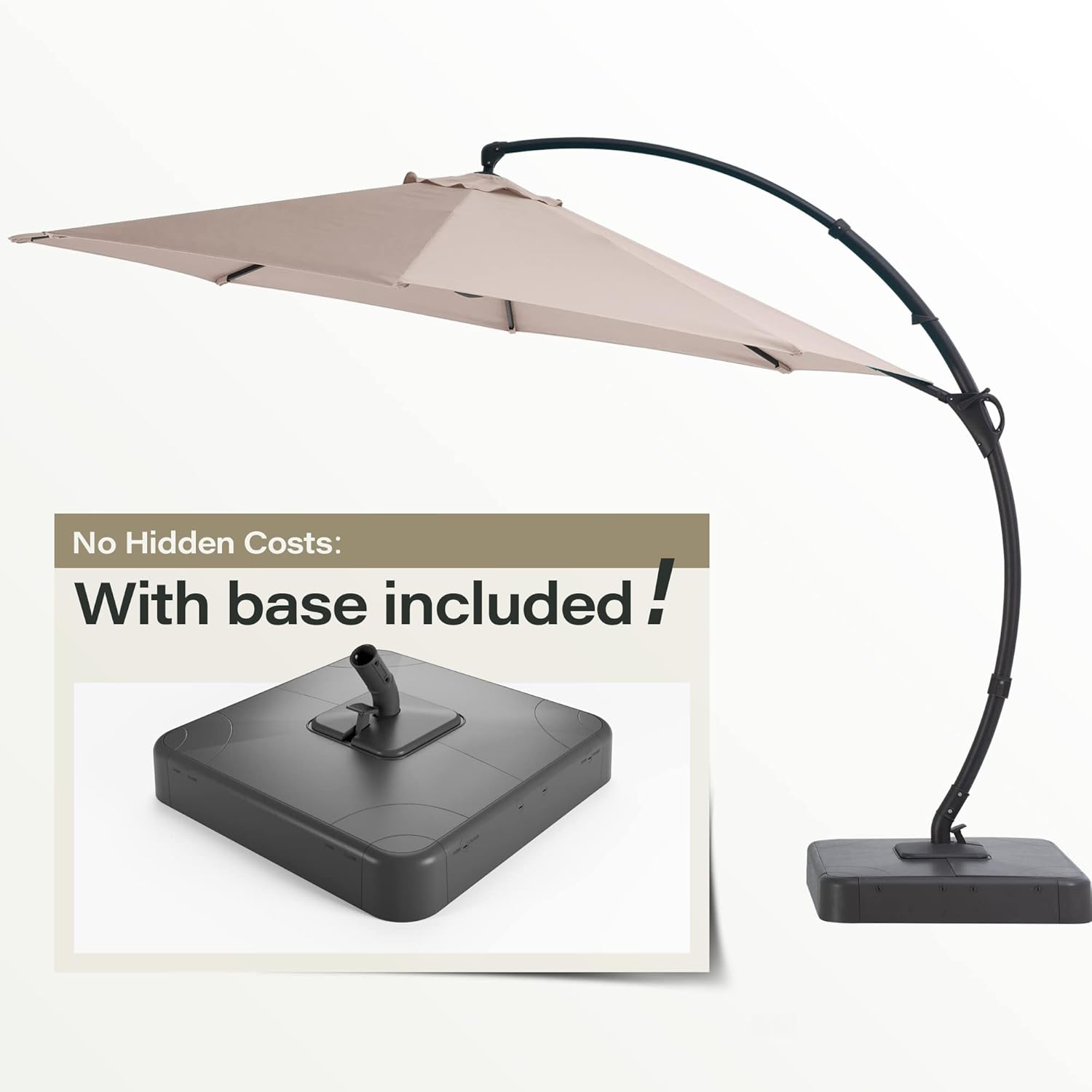 LAUSAINT HOME Outdoor Patio Umbrella with Base included, 11 FT Deluxe Curvy Cantilever Umbrella Heavy Duty Offset Hanging Umbrella with 360° Rotation for Market, Pool, Garden, Backyard, Deck (Beige)
