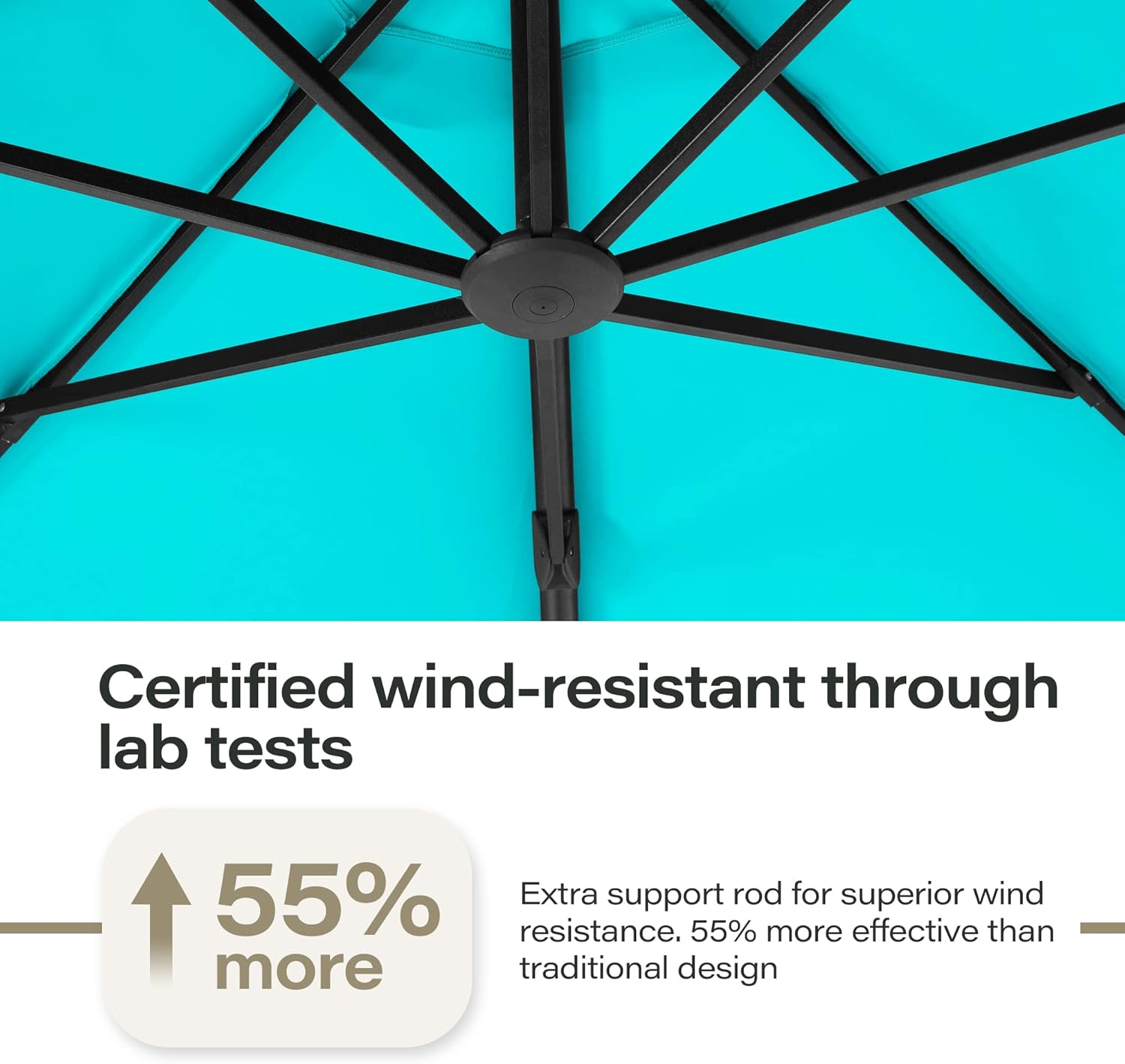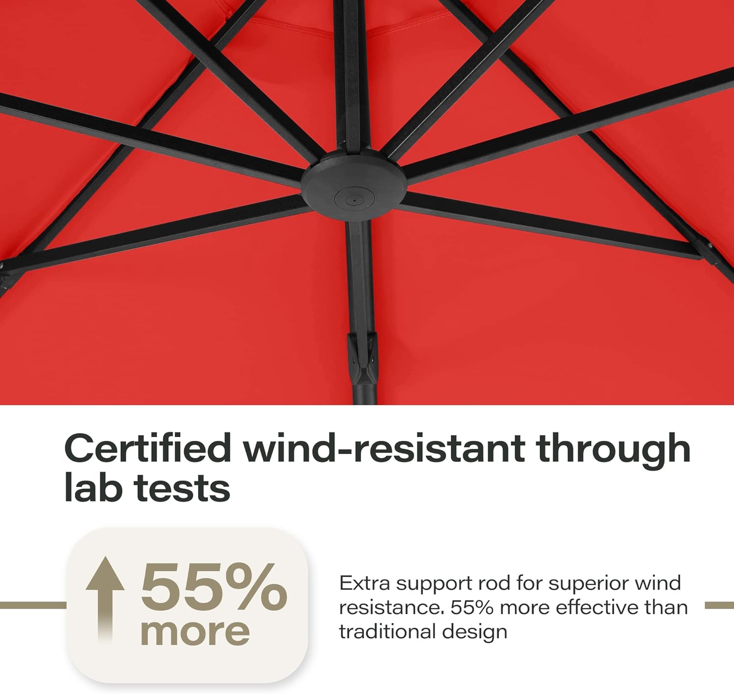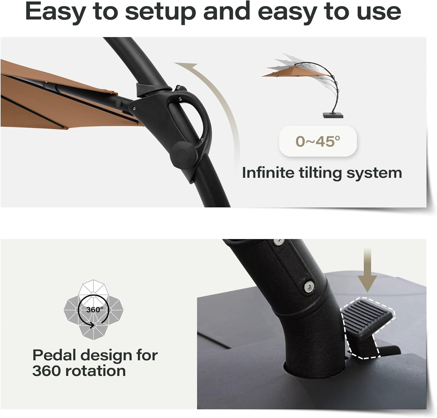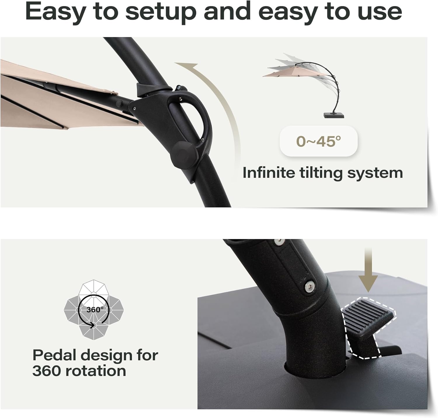 LAUSAINT HOME Outdoor Patio Umbrella with Base included, 11 FT Deluxe Curvy Cantilever Umbrella Heavy Duty Offset Hanging Umbrella with 360° Rotation for Market, Pool, Garden, Backyard, Deck (Beige)